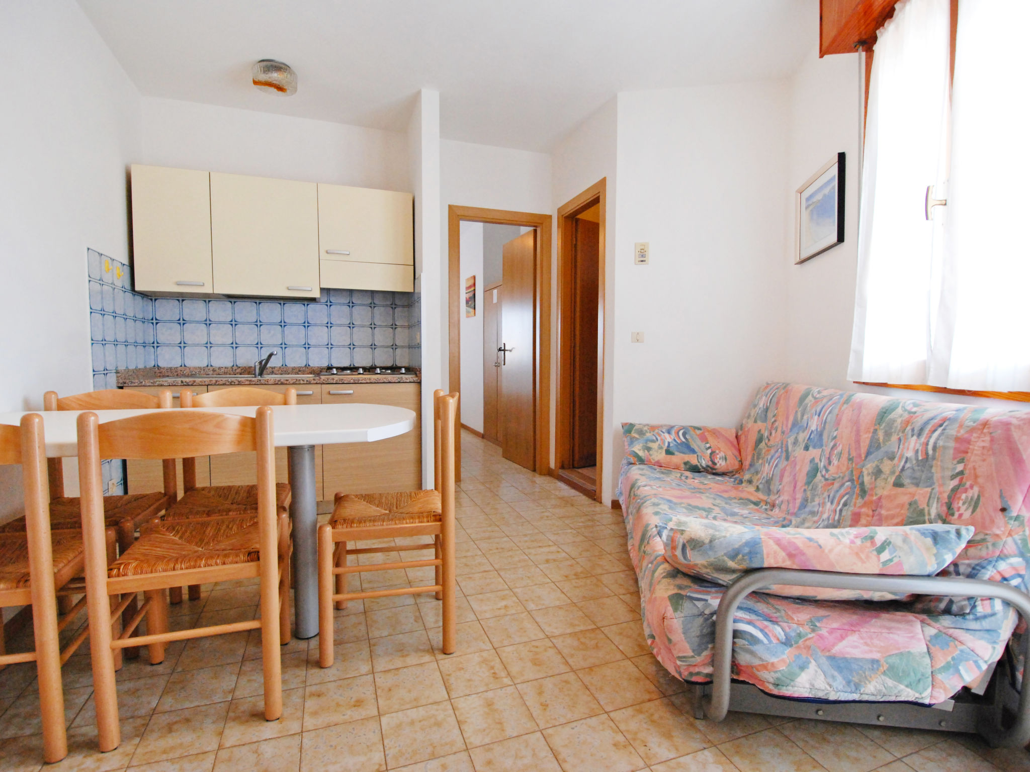 Residenz "Moschettieri". Im Ortszentrum von Bibione, 650 m vom Meer, 650 m vom Strand. Öffentliche Parkplätze auf der Strasse. Supermarkt, Restaurant, Bar 500 m, Café 200 m, Sandstrand 400 m, Thermalbad 300 m. Bitte beachten: Das Foto ist nur ein Hausbeispiel. In diesem Haus sind weitere Ferienwohnungen mietbar.