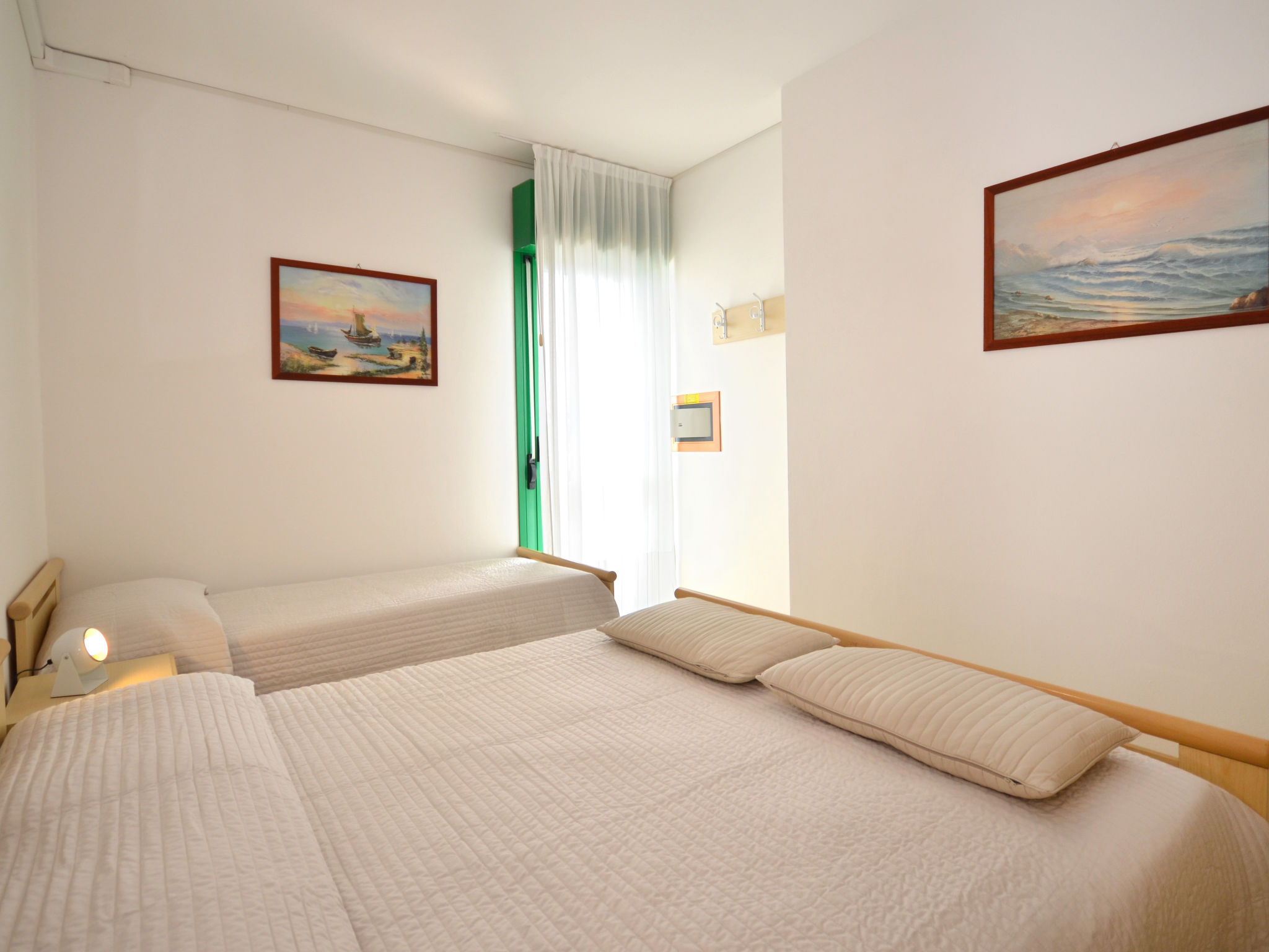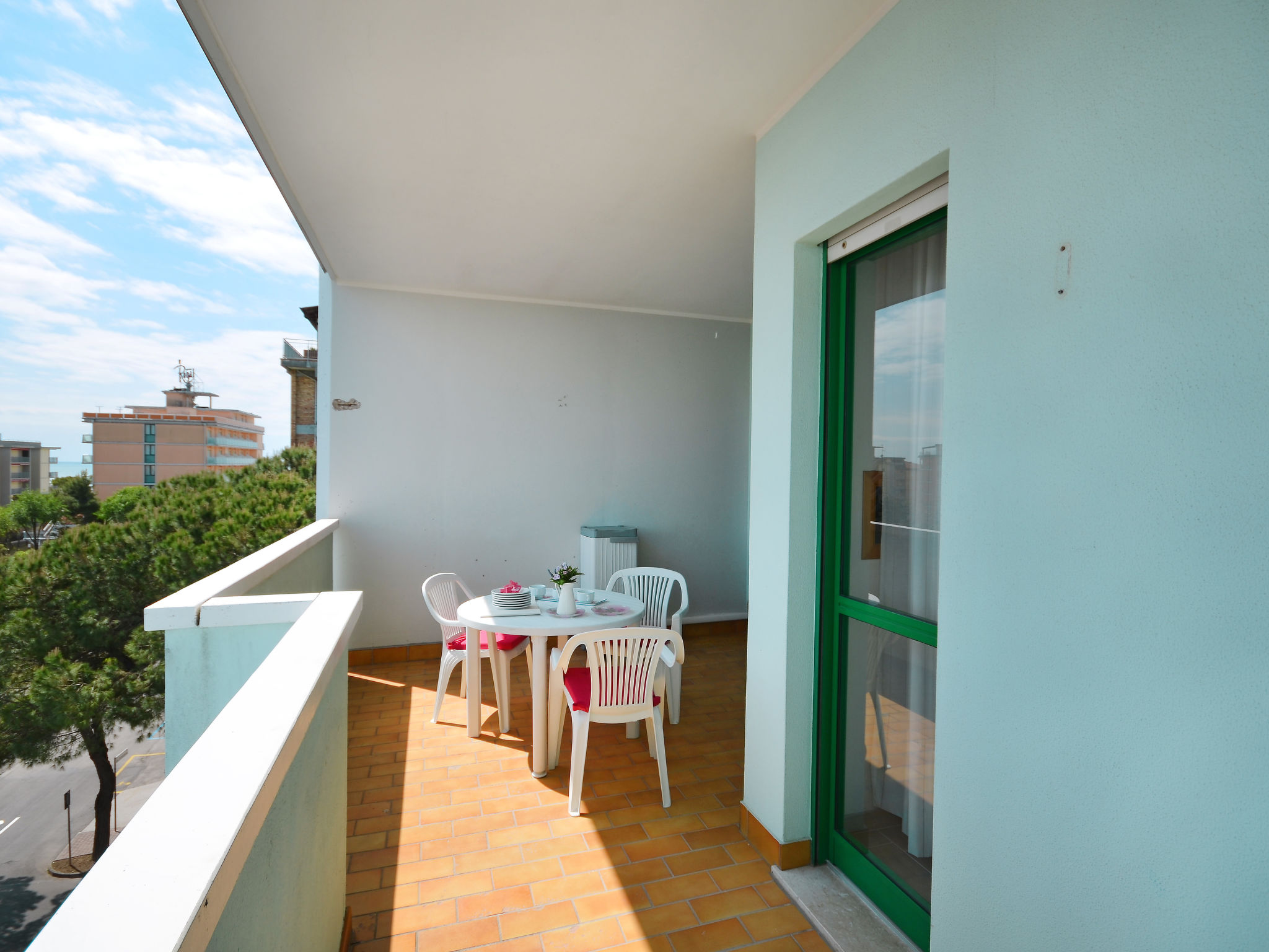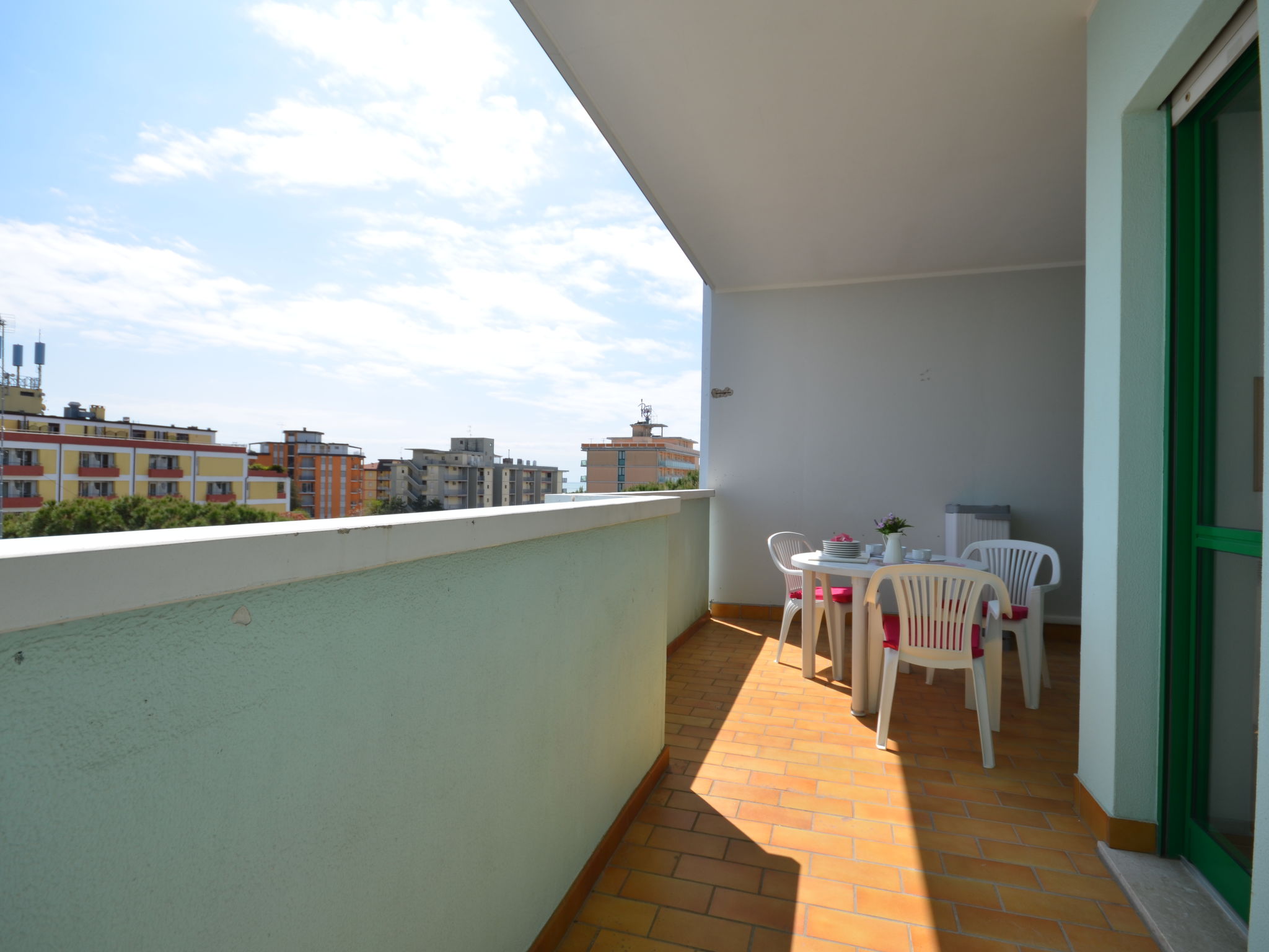 Die sechsgeschossige Residenz ACQUAVERDE mit insgesamt 36 Wohnungen liegt in Bibione-Spiaggia, auf einem komplett abgeschlossenen Grundstück, ca. 200 m vom Strand entfernt. Zur Viale Aurora mit den wichtigsten Geschäften und Einrichtungen ca. 100 m. Nächster Supermarkt ca. 150 m. Pro Wohnung 1 überdachter Parkplatz. Pool (13 x 4,60 m, 15.05.-15.09.) mit Kinderbecken (2,5 x 2,5 m) zur gemeinsamen Nutzung. In der Residenz Aufzug. Unsere Wohnungen haben jeweils überdachten Balkon mit Mobiliar. Freundliche, feriengerechte Einrichtung. Fliesenböden. Sat-TV (deutsche Programme). Safe. Klimaanlage mit Kühl-/Heizfunktion (nicht in allen Räumen). Hinweis: Gruppen werden nicht akzeptiert. Strandservice: Von ca. Ende April bis ca. Ende September sind jeweils 1 Liegestuhl, 1 Sonnenliege und 1 Sonnenschirm pro Wohnung im Mietpreis enthalten. Europacard: Unsere Gäste erhalten u.a. pro Person/Aufenthalt 1 Einladung zu einer Spaghetti-Party im Freien (ca. Anfang Juni bis ca. Mitte September). Fahrradverleih: € 16/Person/Woche (Kaution € 50/Rad). Residenz "Acquaverde", auf 6 Stockwerken. 36 Wohnungen in der Residenz. Im Ortsteil Spiaggia, 100 m vom Zentrum von Bibione-Spiaggia, 13 km vom Zentrum von Lignano, 100 km vom Zentrum von Venezia, 200 m vom Meer. Zur Mitbenutzung: Grundstück (eingezäunt), Schwimmbad (13 x 5 m, saisonale Verfügbarkeit: 15.Mai.-15.Sep.). Kinderbecken. Im Hause: Fahrstuhl, Fahrradverleih. Einkaufsgeschäft 100 m, Supermarkt 150 m, Bahnstation "Latisana" 21 km, Sandstrand "beach service included" 200 m. Der Besitzer akzeptiert keine Gruppen.