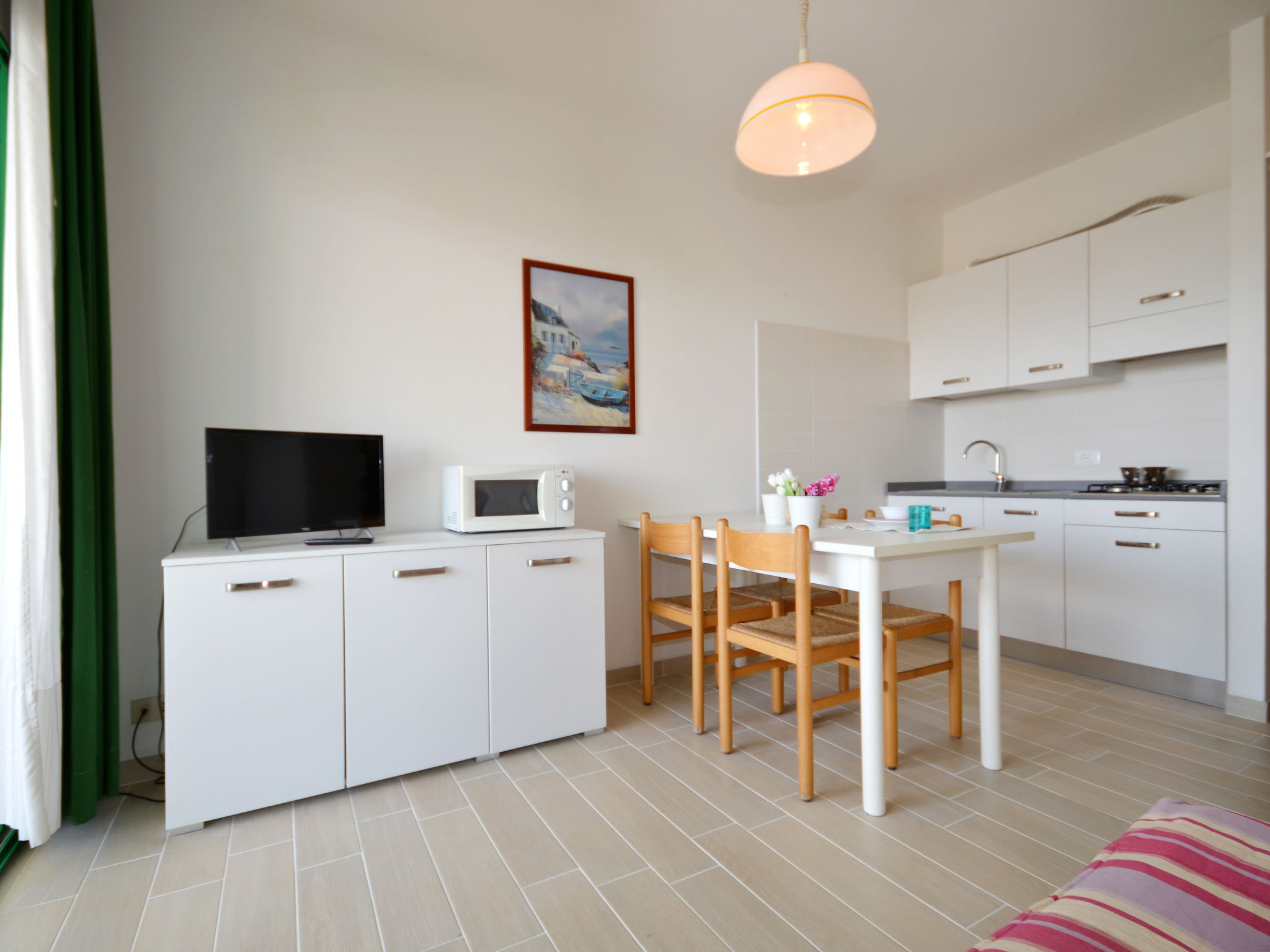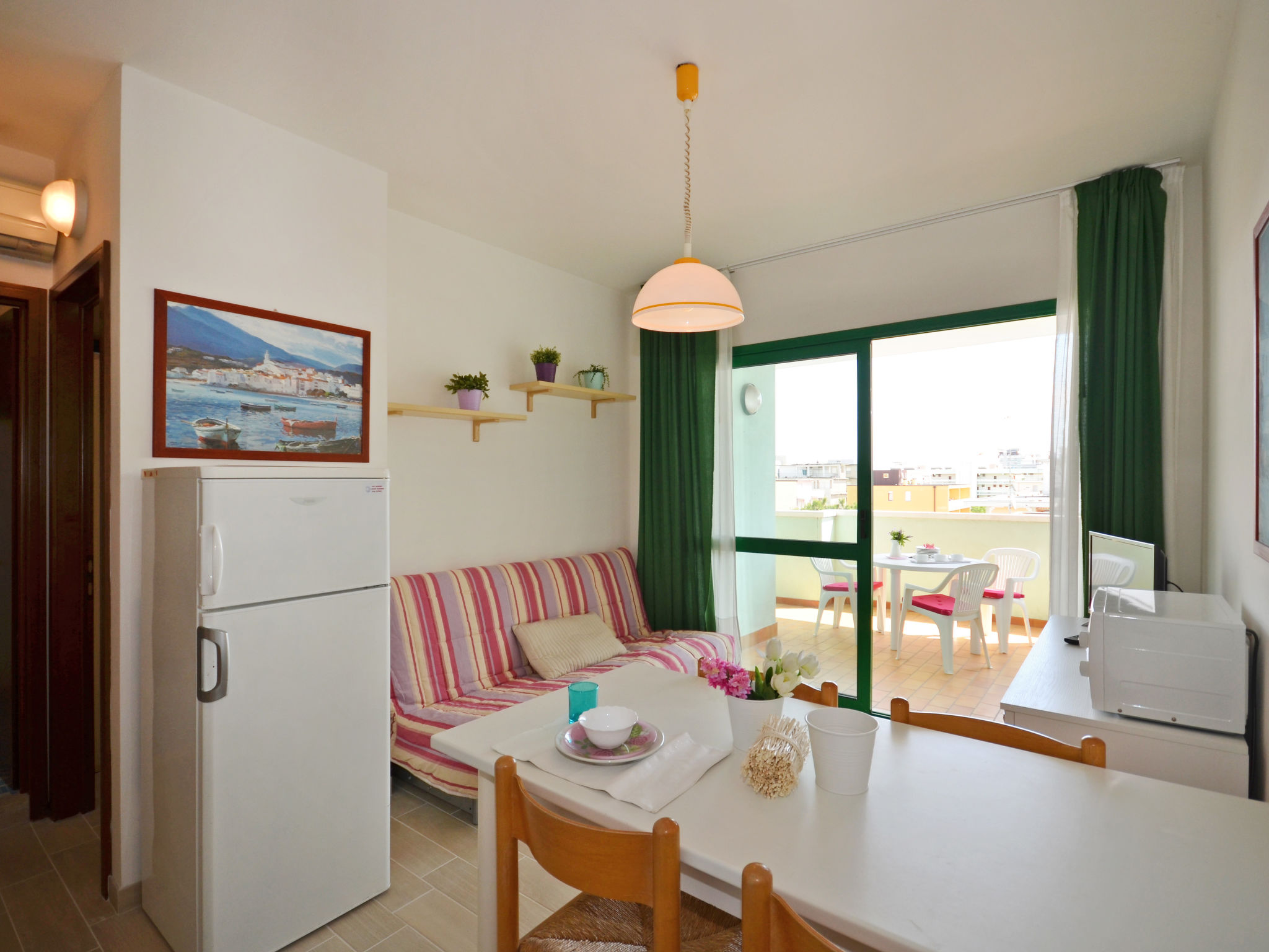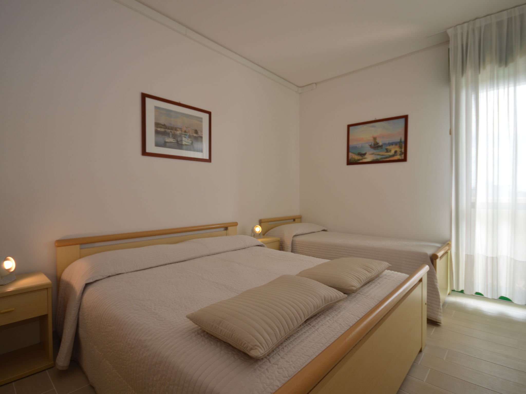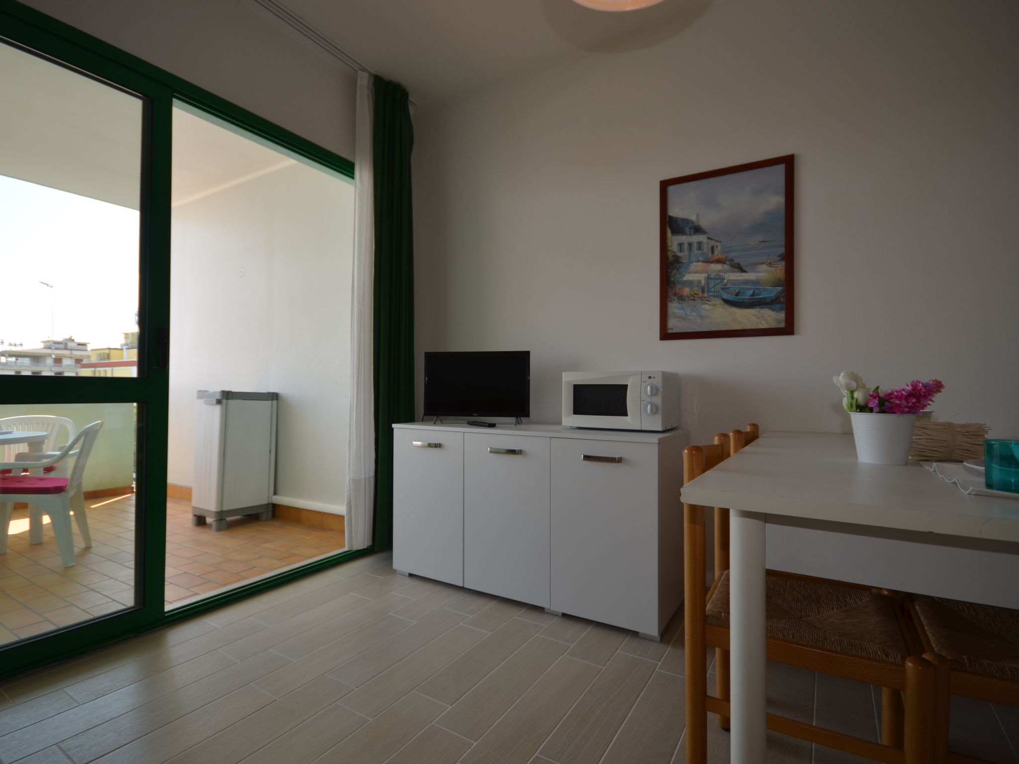 Die sechsgeschossige Residenz ACQUAVERDE mit insgesamt 36 Wohnungen liegt in Bibione-Spiaggia, auf einem komplett abgeschlossenen Grundstück, ca. 200 m vom Strand entfernt. Zur Viale Aurora mit den wichtigsten Geschäften und Einrichtungen ca. 100 m. Nächster Supermarkt ca. 150 m. Pro Wohnung 1 überdachter Parkplatz. Pool (13 x 4,60 m, 15.05.-15.09.) mit Kinderbecken (2,5 x 2,5 m) zur gemeinsamen Nutzung. In der Residenz Aufzug. Unsere Wohnungen haben jeweils überdachten Balkon mit Mobiliar. Freundliche, feriengerechte Einrichtung. Fliesenböden. Sat-TV (deutsche Programme). Safe. Klimaanlage mit Kühl-/Heizfunktion (nicht in allen Räumen). Hinweis: Gruppen werden nicht akzeptiert. Strandservice: Von ca. Ende April bis ca. Ende September sind jeweils 1 Liegestuhl, 1 Sonnenliege und 1 Sonnenschirm pro Wohnung im Mietpreis enthalten. Europacard: Unsere Gäste erhalten u.a. pro Person/Aufenthalt 1 Einladung zu einer Spaghetti-Party im Freien (ca. Anfang Juni bis ca. Mitte September). Fahrradverleih: € 16/Person/Woche (Kaution € 50/Rad). Residenz "Acquaverde", auf 6 Stockwerken. 36 Wohnungen in der Residenz. Im Ortsteil Spiaggia, 100 m vom Zentrum von Bibione-Spiaggia, 13 km vom Zentrum von Lignano, 100 km vom Zentrum von Venezia, 200 m vom Meer. Zur Mitbenutzung: Grundstück (eingezäunt), Schwimmbad (13 x 5 m, saisonale Verfügbarkeit: 15.Mai.-15.Sep.). Kinderbecken. Im Hause: Fahrstuhl, Fahrradverleih. Einkaufsgeschäft 100 m, Supermarkt 150 m, Bahnstation "Latisana" 21 km, Sandstrand "beach service included" 200 m. Der Besitzer akzeptiert keine Gruppen.