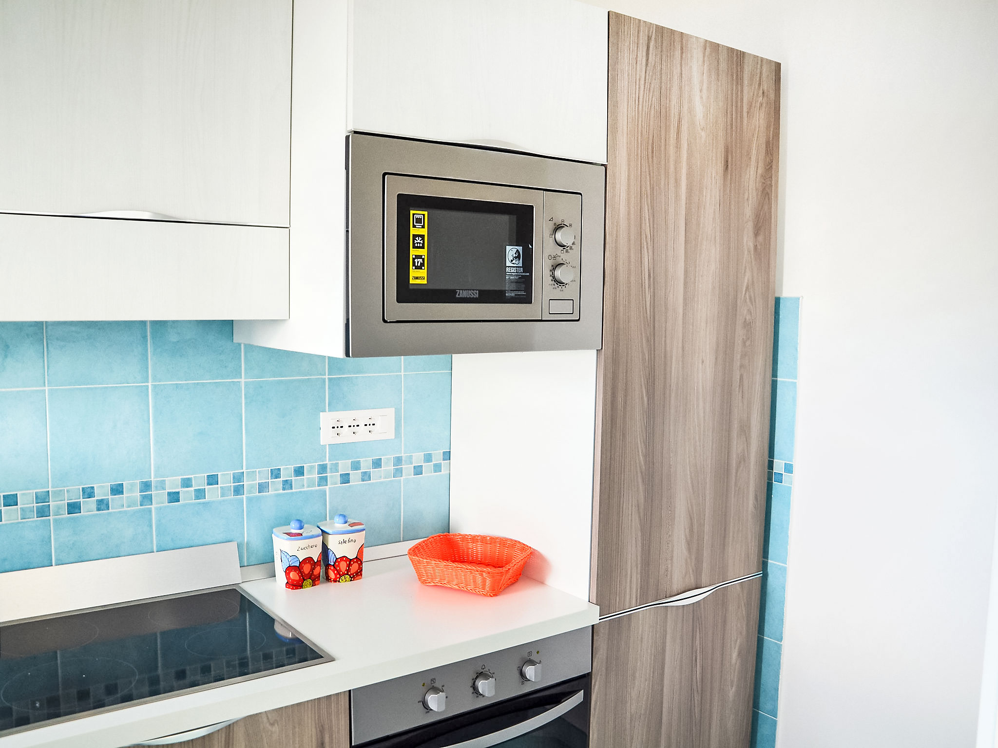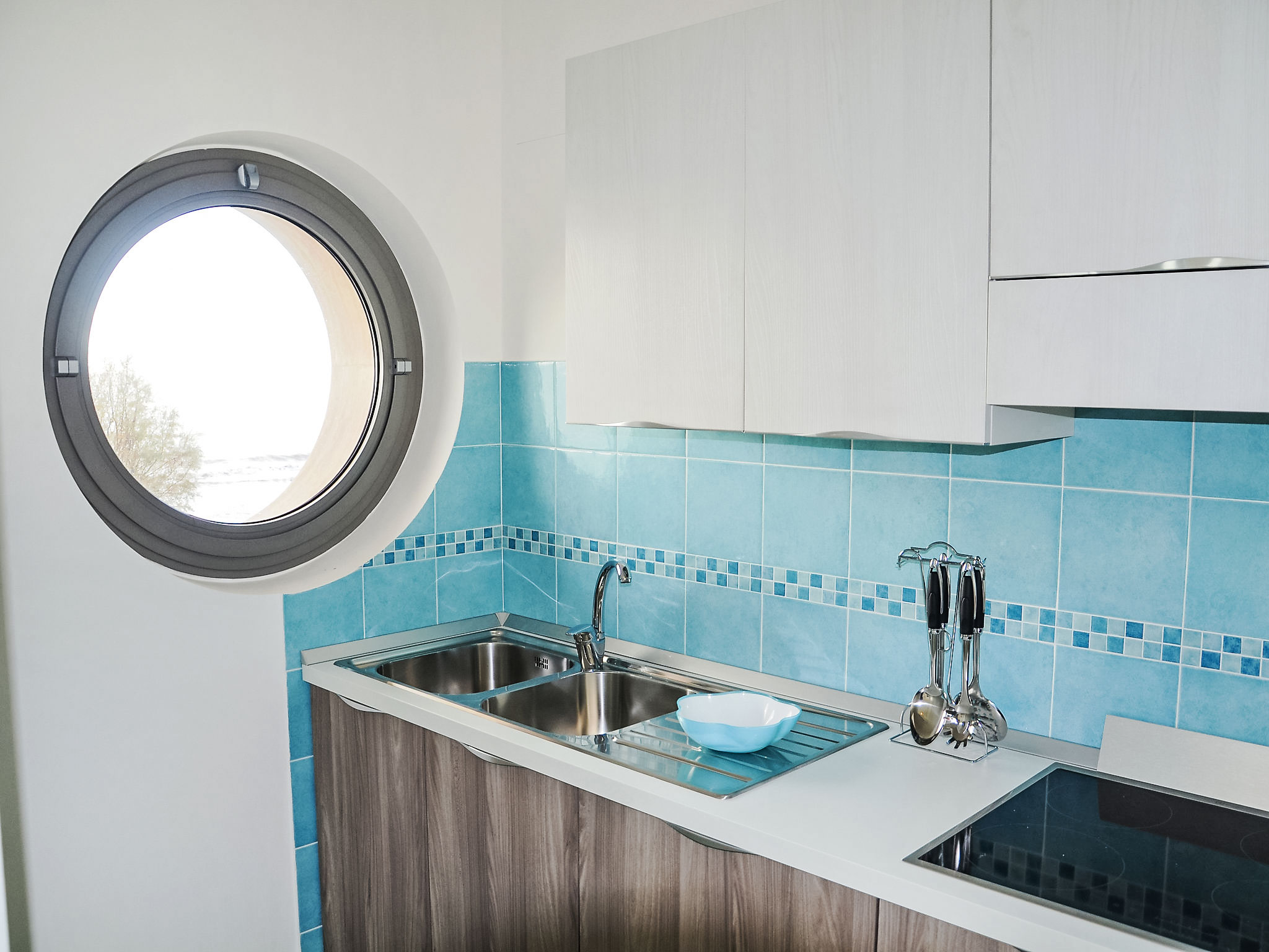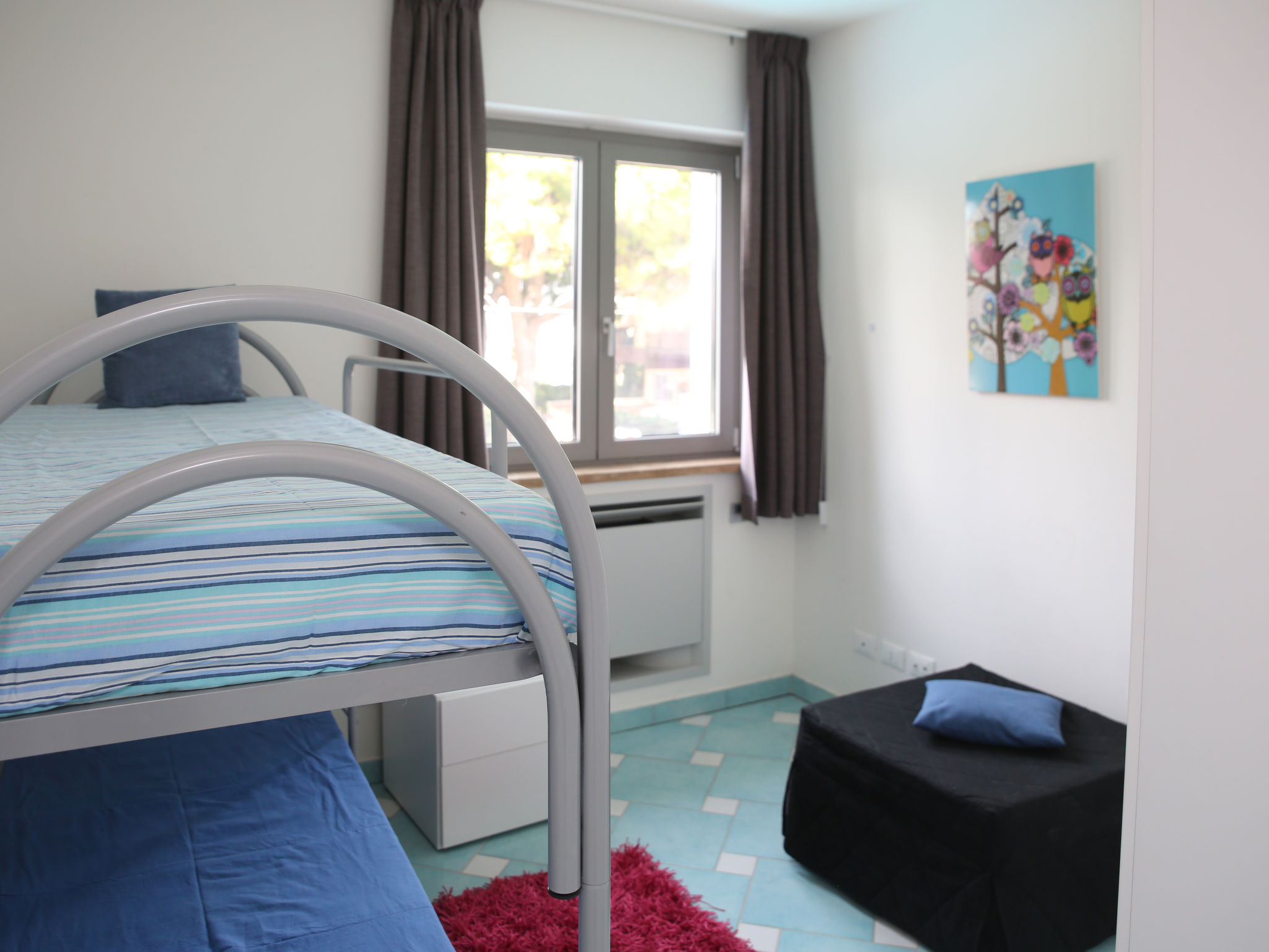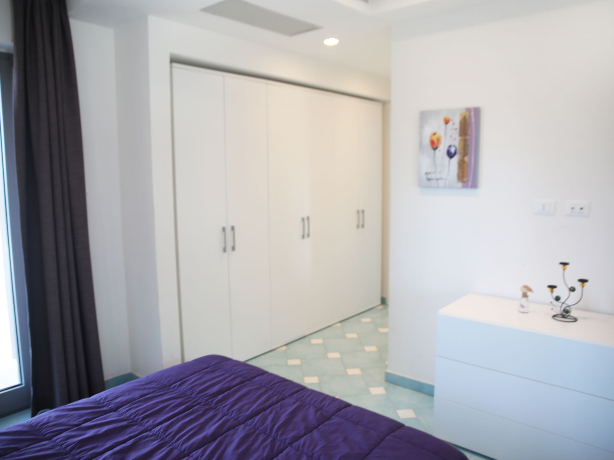 "Appartamento 3", 3-Zimmer-Wohnung 63 m2 im 1. Stock. Sehr komfortabel und modern eingerichtet: Wohn-/Esszimmer mit 1 Doppeldiwanbett und TV (Flachbildschirm). Ausgang zum Balkon. 1 Doppelzimmer mit Dusche/Bidet/WC. 1 Zimmer mit 1 x 2 Etagenbetten. Offene Küche (Backofen, Geschirrspüler, 4 Induktionskochplatten, Mikrowelle, Tiefkühler). Dusche/Bidet/WC. Heizung, Klimaanlage. Balkonmöbel. Sehr schöne Sicht auf das Meer. Zur Verfügung: Waschmaschine, Safe, Haartrockner. Internet (Wireless LAN, gratis). 1 kleines Haustier/Hund erlaubt.