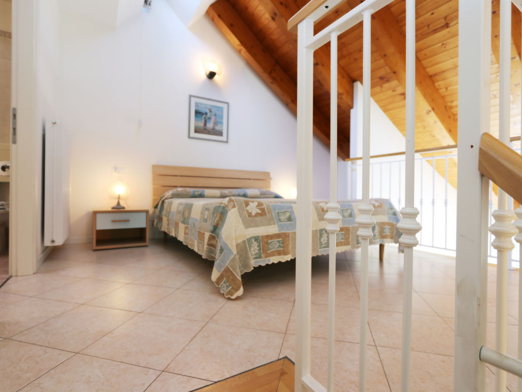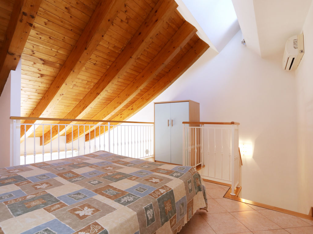 2½-Zimmer-Wohnung, 1. oder 2. Etage, 2 Ebenen, ca. 60 m². Untere Ebene: Wohn-/Schlafraum mit Doppelbettcouch, Essplatz, Küchenzeile (4 Flammen, Mikrowelle, Kühl-/Gefrierkombination, Kaffeemaschine). Doppelzimmer. Dusche/WC. Vom Wohn-/Schlafraum Treppe zur oberen Ebene: offene Galerie mit Doppelbett. Dusche/WC.