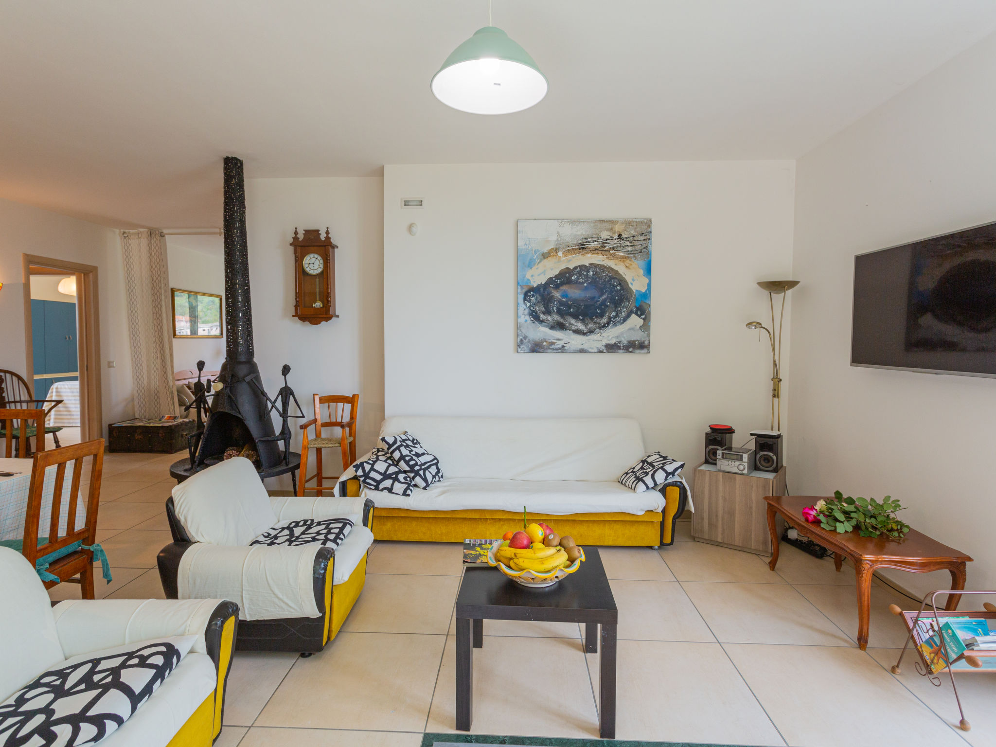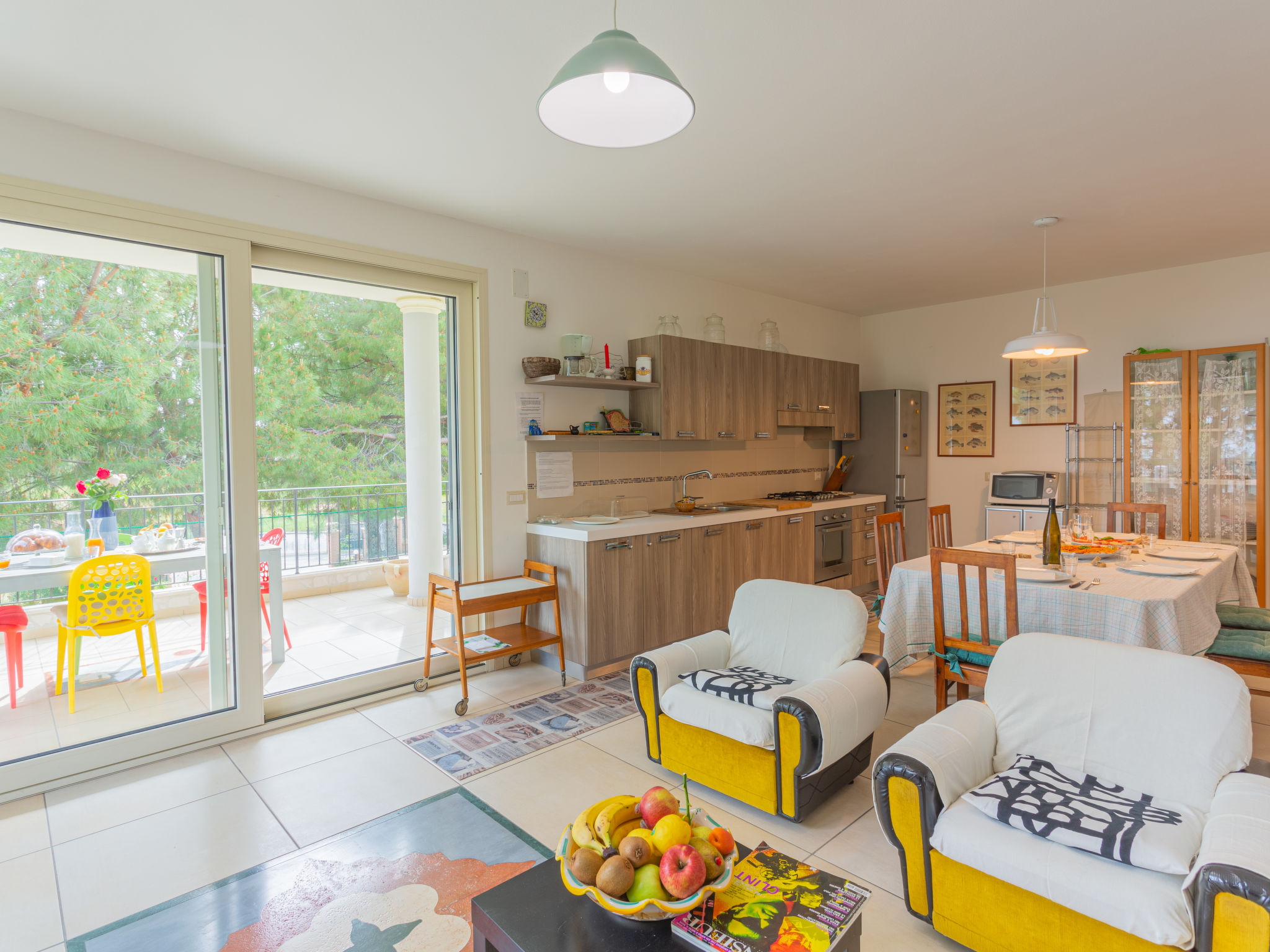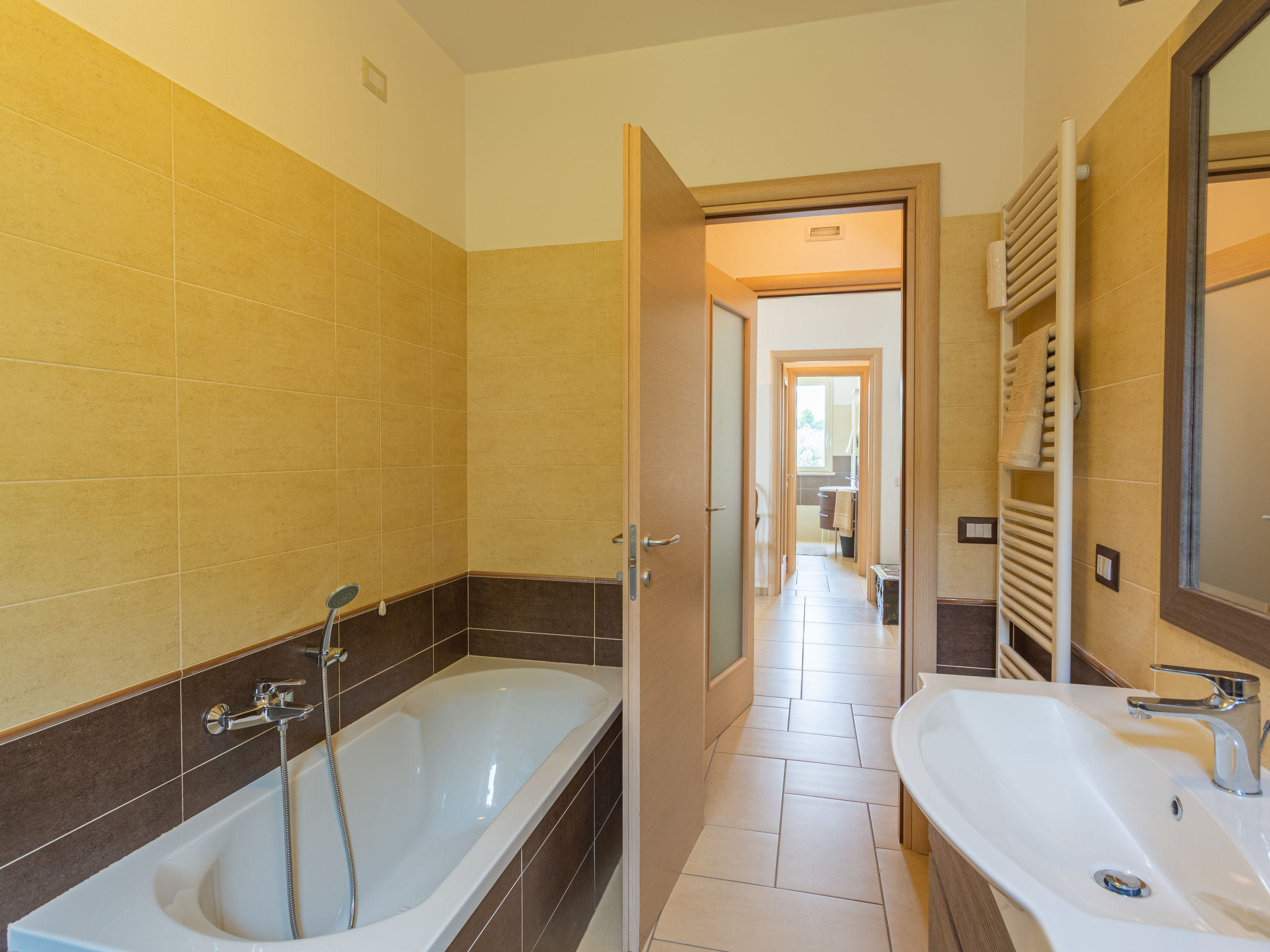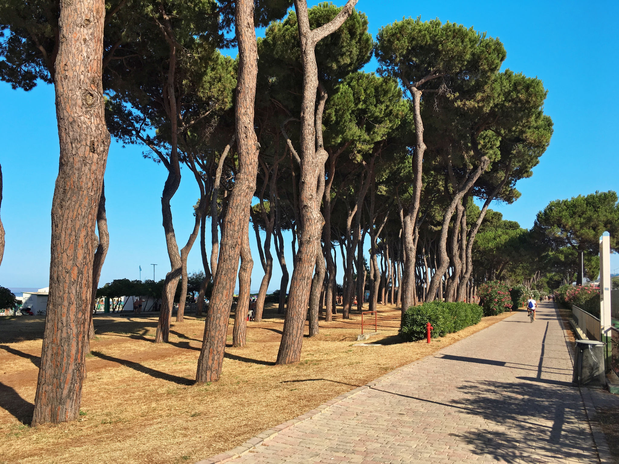 "Michela (PIT232)", 5-Zimmer-Haus 190 m2 auf 2 Stockwerken, Südostlage. Teilweise abgeschrägt, zweckmässig eingerichtet: Obergeschoss: grosses Wohn-/Schlafzimmer mit Vorhang mit 1 Doppeldiwanbett, Esstisch, Sat-TV und Radio. Ausgang zum Balkon. 2 Zimmer, jedes Zimmer mit 1 Doppelbett. Ausgang zum Balkon. Offene Küche (Backofen, Geschirrspüler, 5 Flammen, Toaster, Tiefkühler, elektrische Kaffeemaschine). Bad/WC, Dusche/WC. G-Heizung. Dachgeschoss: abgeschrägtes Wohn-/Schlafzimmer mit 2 Schlafmöglichkeiten, Esstisch, Sat-TV, Radio und Klimaanlage. Ausgang zur Terrasse. 1 abgeschrägtes Zimmer mit 1 franz. Bett (160 cm, Länge 190 cm), Klimaanlage. Ausgang zur Terrasse. Abgeschrägte, offene Küche (Backofen, Geschirrspüler, 4 Flammen, Toaster, elektrische Kaffeemaschine) mit Deckenhöhe 80 - 220 cm, Klimaanlage. Ausgang zur Terrasse. Bad/WC. G-Heizung. Grosser Balkon 20 m2, Terrasse 15 m2, Gartensitzplatz. Terrassenmöbel, Balkonmöbel, Gartengrill (mobil). Schöne Sicht auf das Meer und die Landschaft. Zur Verfügung: Waschmaschine, Babybett. Internet (Wireless LAN, gratis). 1 Haustier/Hund erlaubt. Keine interne Verbindung zwischen den Etagen.