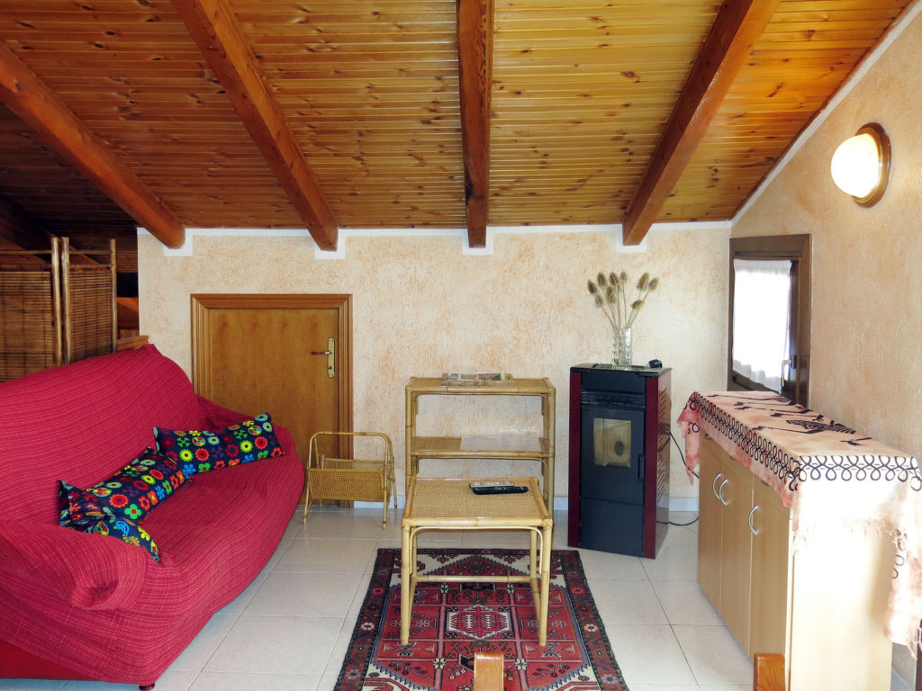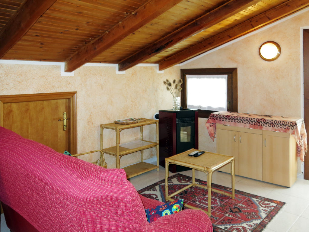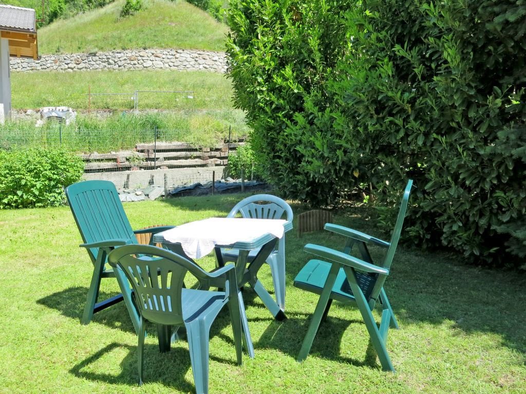 "Della Forsythia (VPE100)", 3-Zimmer-Wohnung 80 m2, im Dachgeschoss. Teilweise abgeschrägt, zweckmässig und rustikal eingerichtet: kleines Wohnzimmer mit Sat-TV und Heizofen. Ausgang zum Balkon. 1 Zimmer mit 1 franz. Bett (160 cm). 1 Zimmer mit 1 Bett. Offene Küche (1 Kochplatte, Backofen, 3 Flammen, Mikrowelle, Tiefkühler, elektrische Kaffeemaschine) mit Esstisch. Ausgang zum Balkon. Dusche/WC. E-Heizung. Kleiner Balkon, Gartensitzplatz. Balkonmöbel, Liegestühle (2). Herrliche Panoramasicht auf die Berge und das Tal. Zur Verfügung: Waschmaschine. Internet (Wireless LAN, gratis). Parkplatz (1 Auto) beim Haus.