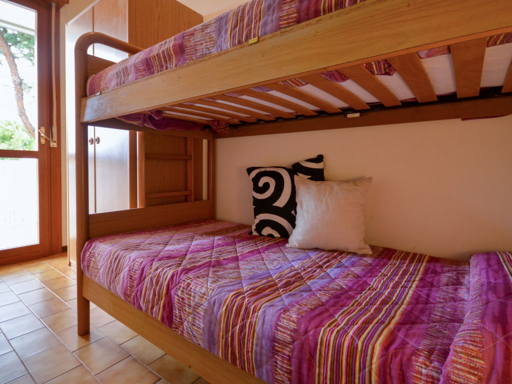 3-Zimmer-Wohnung, 1. oder 2. Etage, ca. 45 m². Wohn-/Schlafraum mit Bettcouch, Essplatz, Küchenzeile (4 Flammen, Mikrowelle, Kühlschrank, Kaffeemaschine). Doppelzimmer. Schlafzimmer mit Etagenbett. Dusche/WC.