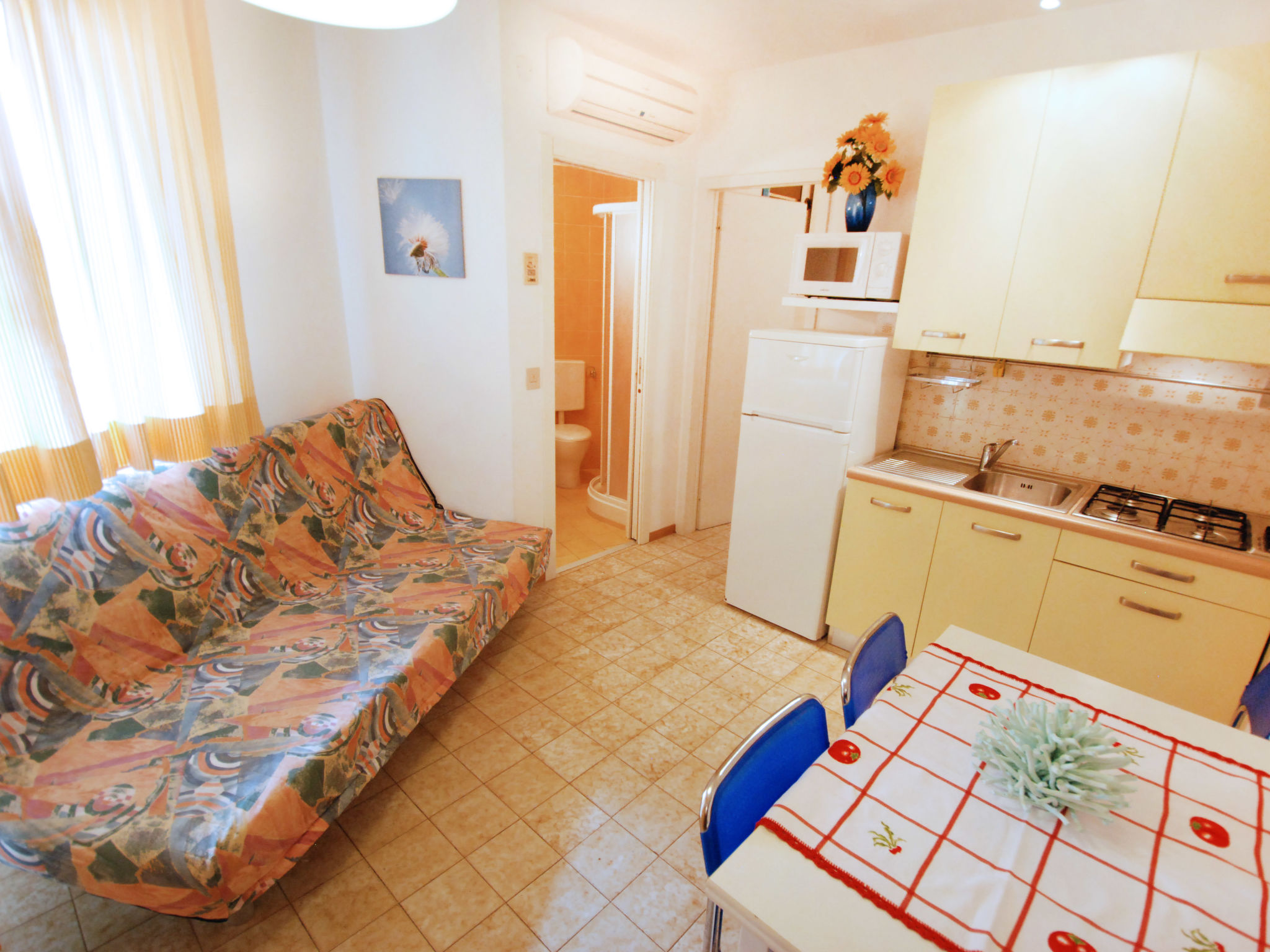 Residenz "Moschettieri". Im Ortszentrum von Bibione, 650 m vom Meer, 650 m vom Strand. Öffentliche Parkplätze auf der Strasse. Supermarkt, Restaurant, Bar 500 m, Café 200 m, Sandstrand 400 m, Thermalbad 300 m. Bitte beachten: Das Foto ist nur ein Hausbeispiel. In diesem Haus sind weitere Ferienwohnungen mietbar.