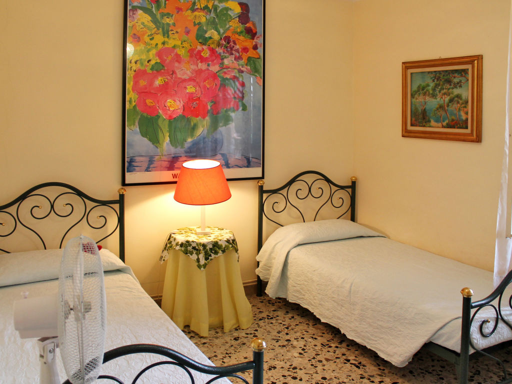 3-Zimmer-Wohnung 75 m2 im 1. Stock. Komfortabel eingerichtet: Wohn-/Schlafzimmer mit 1 Diwanbett, Esstisch und TV. Ausgang zum Balkon. 1 Doppelzimmer. 1 Zimmer mit 2 Betten. Kleine, offene Küche (Backofen, Geschirrspüler, 4 Flammen). Dusche/Bidet/WC. G-Heizung, Klimaanlage. Balkon. Balkonmöbel. Zur Verfügung: Waschmaschine. Internet (Wireless LAN, gratis). Parkplatz (1 Auto). Bitte beachten: Nichtraucher-Unterkunft. Es werden keine zusätzlichen Gebühren vor Ort fällig, ausgenommen der örtlichen Kurtaxe. CIR: M0230060393