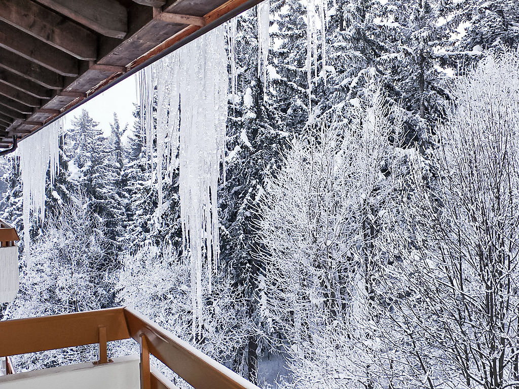 2-Zimmer-Wohnung 49 m2 im 2. Stock, Nordwestlage. Zweckmässig eingerichtet: Wohn-/Esszimmer mit 1 Doppeldiwanbett (140 cm, Länge 180 cm), Kabel-TV (Flachbildschirm), DVD. 1 Zimmer mit 2 Betten (Länge 190 cm). Kochnische (4 Kochplatten, Backofen, Geschirrspüler, Toaster, Wasserkocher, Mikrowelle, elektrische Kaffeemaschine, Kapseln für die Kaffeemaschine (NESPRESSO) extra, Racletteofen). Bad/Bidet/WC. Balkon, Westlage. Balkonmöbel. Sicht auf den Wald. Zur Verfügung: Haartrockner. Internet (Wireless LAN, gratis). Bitte beachten: Nichtraucher-Unterkunft.