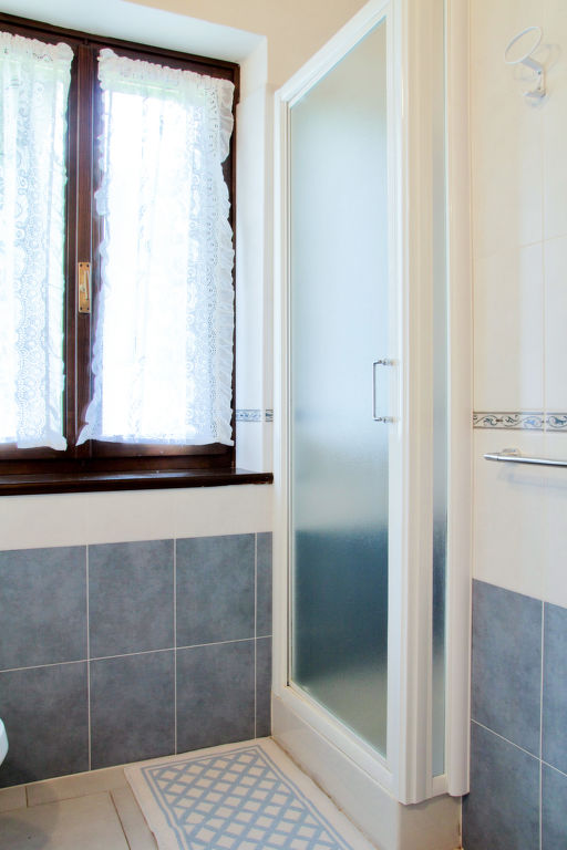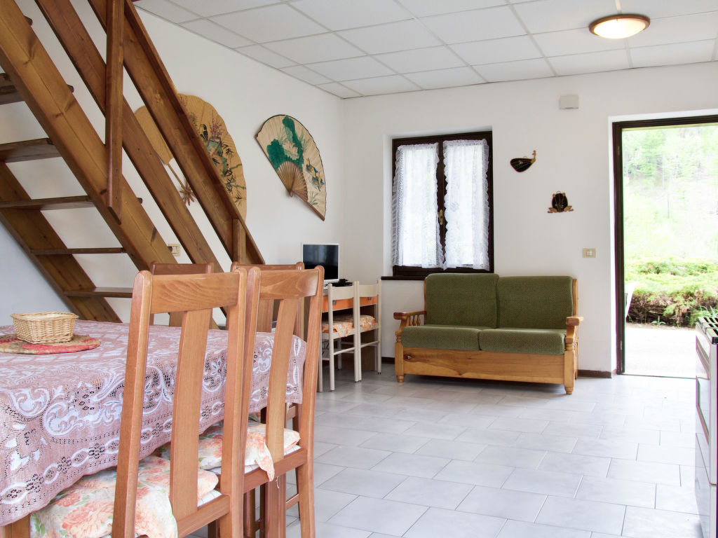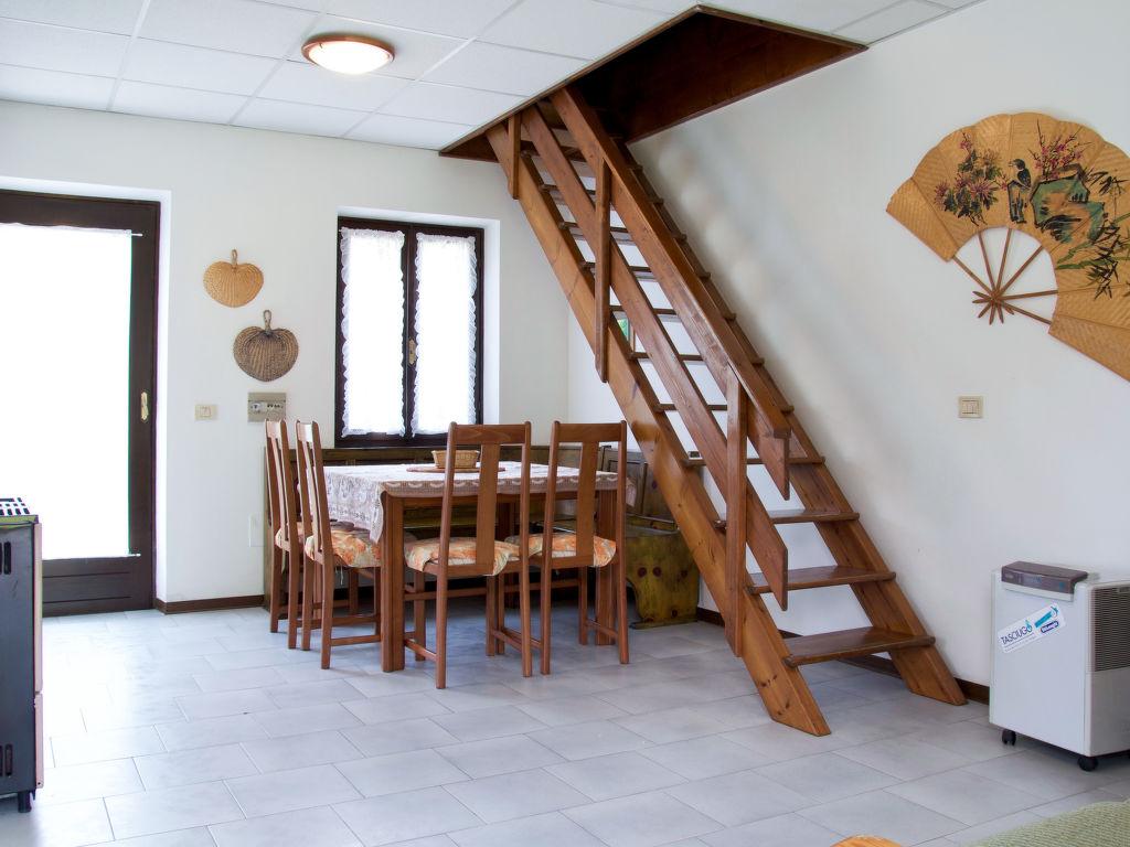 3-Zimmer-Wohnung, 2 Ebenen, Erdgeschoss, ca. 70 m². Untere Ebene: Wohn-/Schlafraum mit Doppelbettcouch, Essplatz und Terrassenausgang. Kleine Küche (4 Flammen, Backofen, Mikrowelle, Kühlschrank, Kaffeemaschine). Vom Wohnraum Treppe in die obere Ebene: Doppelzimmer, Balkonausgang. Zweibettzimmer (Betten zusammenstellbar). Dusche/WC. CIPAT:022229-AT-052029