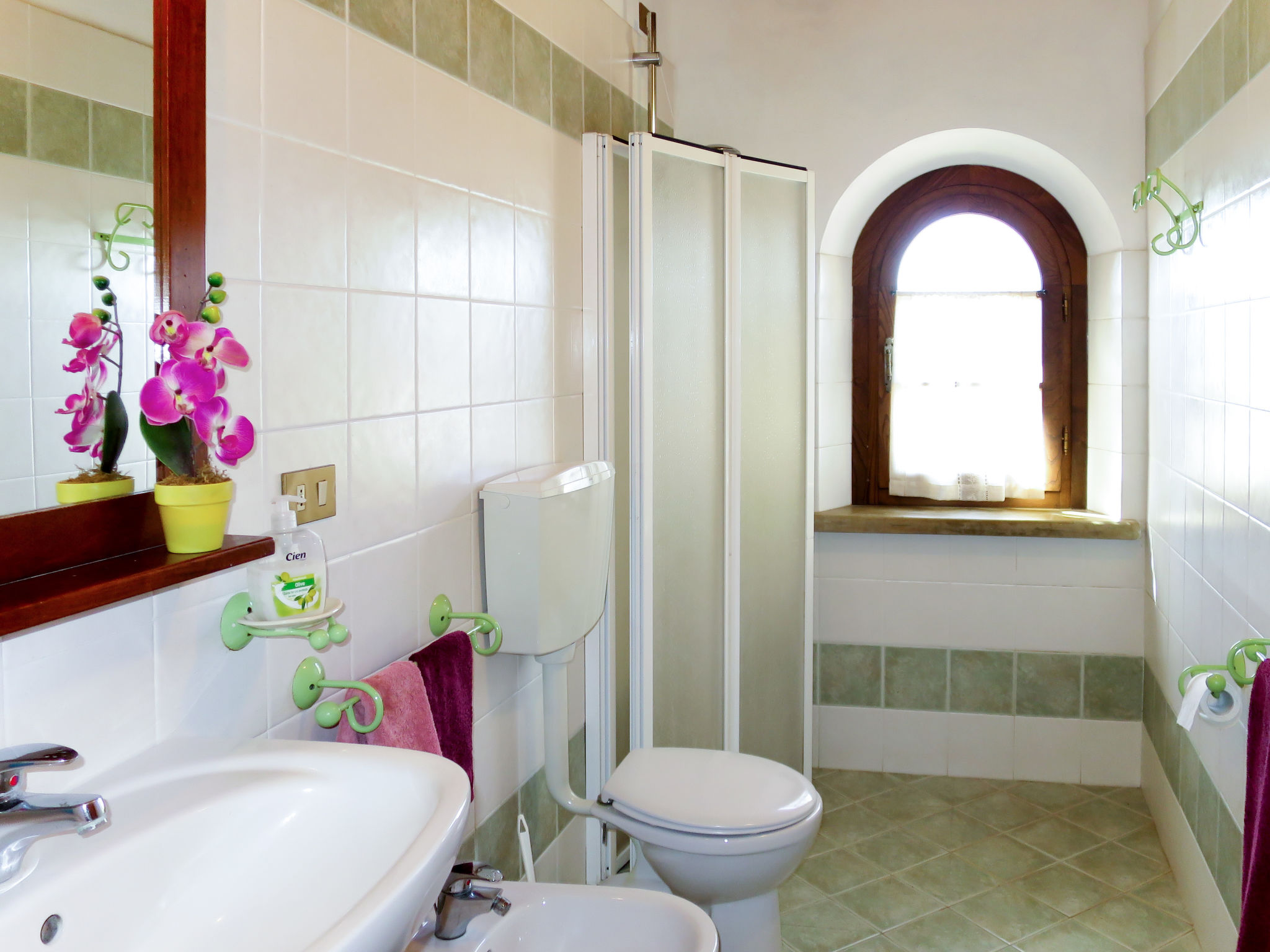 Agriturismo "La Ghiraia". 2 Häuser in der Residenz. 5 Wohnungen in der Residenz. 100 m vom Zentrum von Pastina, 35 km vom Zentrum von Pisa, 20 km vom Zentrum von Cecina, am Hang, 15 km vom Meer, im Grünen. Zur Mitbenutzung: Grundstück, Terrassengarten mit Pflanzen und Bäumen, Schwimmbad (13 x 6 m, saisonale Verfügbarkeit: 15.Mai.-01.Okt.). Kinderbecken, Terrasse, Gartenmöbel, Kinderspielplatz. Im Hause: Tischfussball, Waschmaschine (zur Mitbenutzung, extra). Halbpension möglich auf Anfrage (extra). Parkplatz auf dem Grundstück. Einkaufsgeschäft 100 m, Sandstrand 15 km. Ab Hof Verkauf von bäuerlichen Produkten. Bitte beachten: Der Besitzer wohnt auf dem gleichen Grundstück.