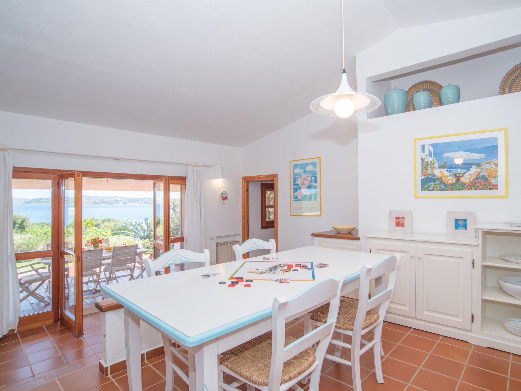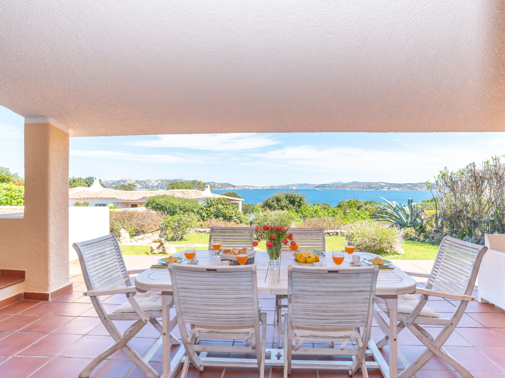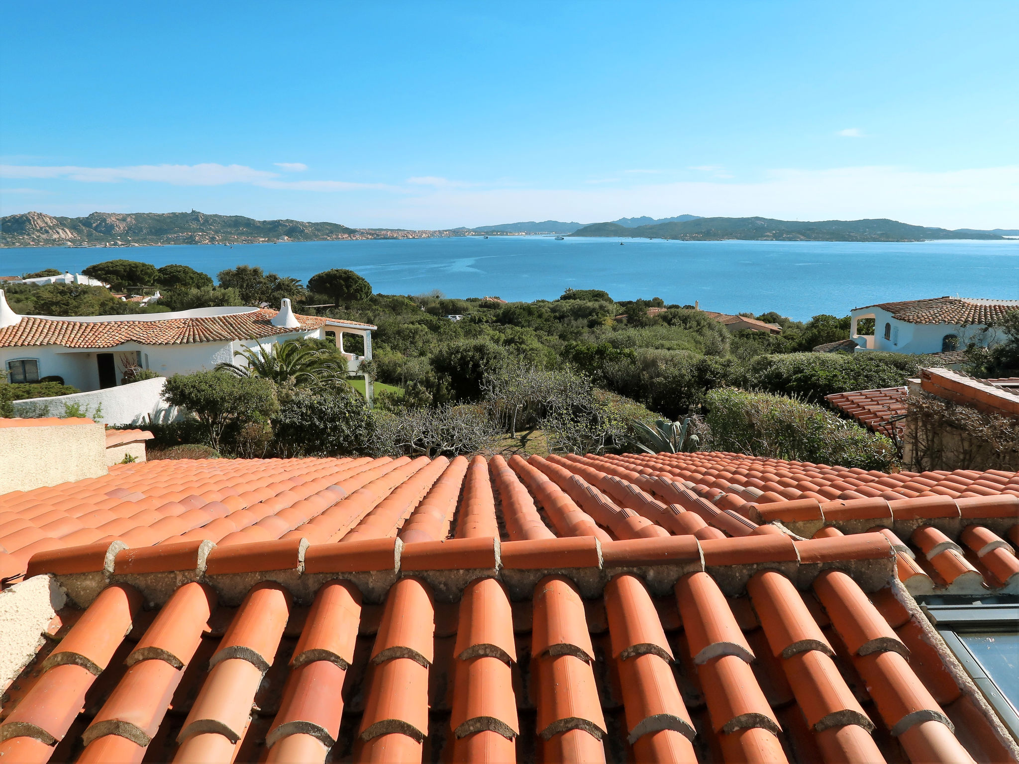 "Mare Blu", 5-Zimmer-Haus 160 m2 auf 2 Stockwerken. Hell, schön eingerichtet: Wohn-/Esszimmer mit offenem Kamin (nur Deko), Esstisch und Sat-TV. Ausgang zur Terrasse. 2 Zimmer, jedes Zimmer mit 1 Doppelbett und Dusche/WC. Küche (Mini-Backofen, Geschirrspüler, 4 Flammen, Toaster, Wasserkocher, Mikrowelle, Tiefkühler). Ausgang zur Terrasse. Sep. WC. Unteres Geschoss: 1 Zimmer mit 1 Doppelbett. 1 Zimmer mit 2 Betten. Dusche/WC. G-Heizung. Grosse Terrasse überdacht, kleine Terrasse. Terrassenmöbel, Gartengrill, Liegestühle (4). Herrliche Sicht auf das Meer und La Maddalena. Zur Verfügung: Waschmaschine, Bügeleisen, Babybett. Bitte beachten: Nichtraucher-Haus. 1 kleines Haustier/Hund erlaubt. Eigener Eingang. IUN: Q2304
