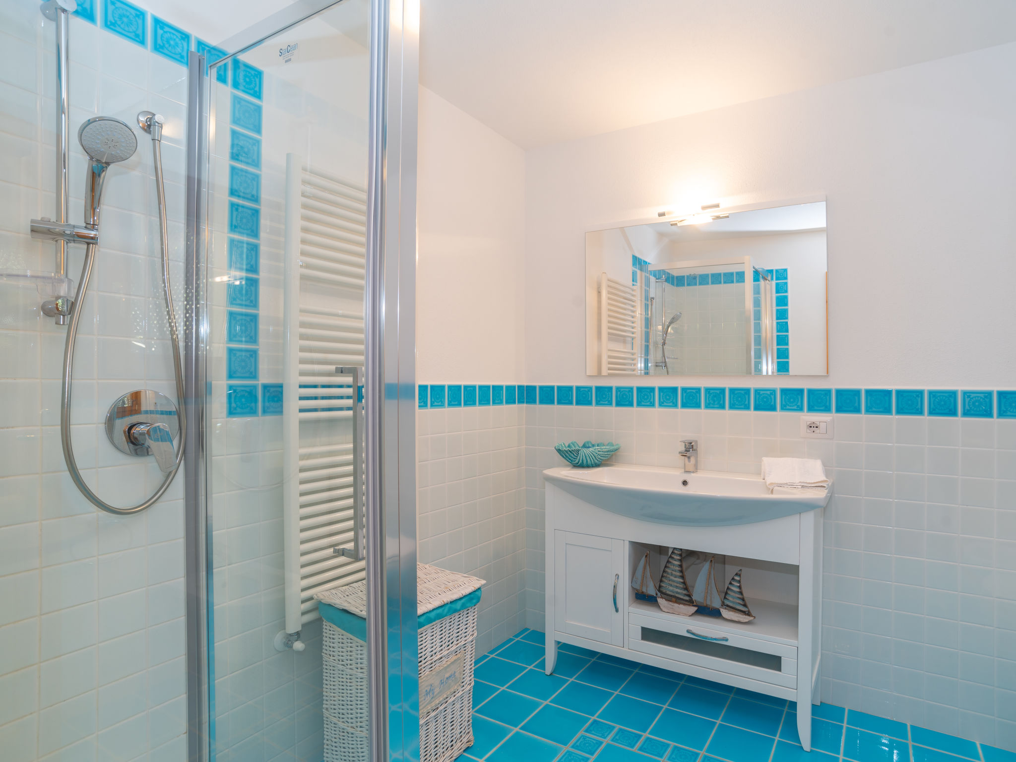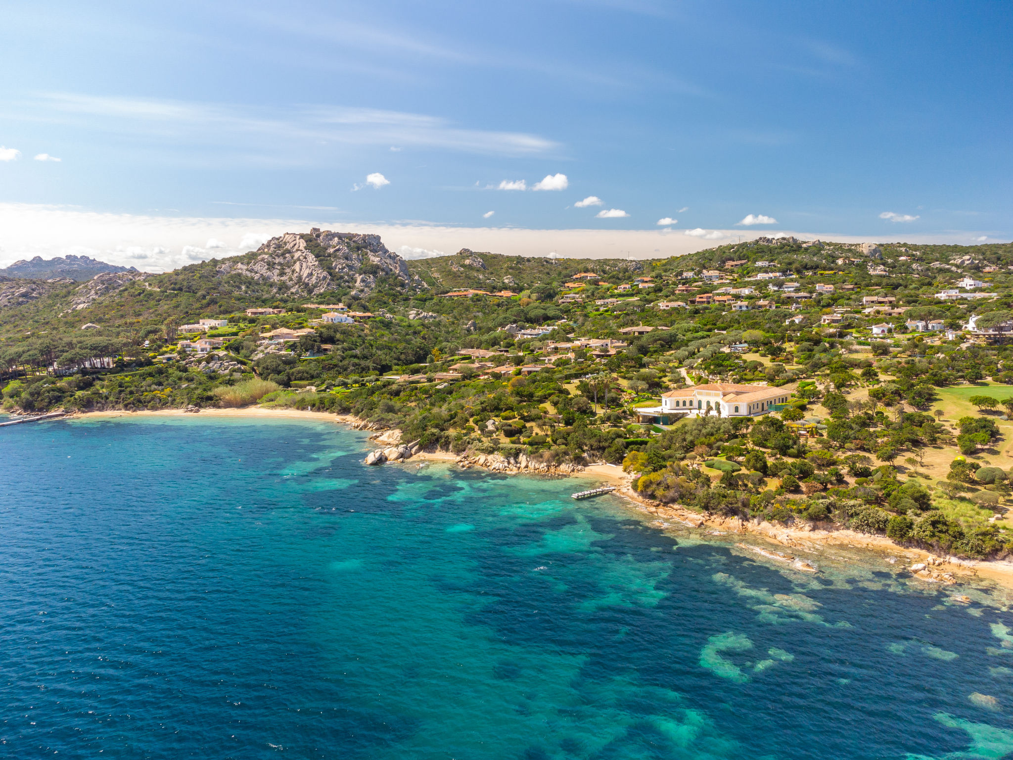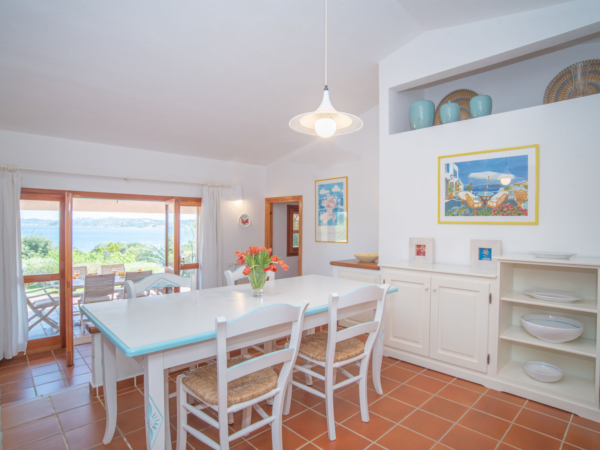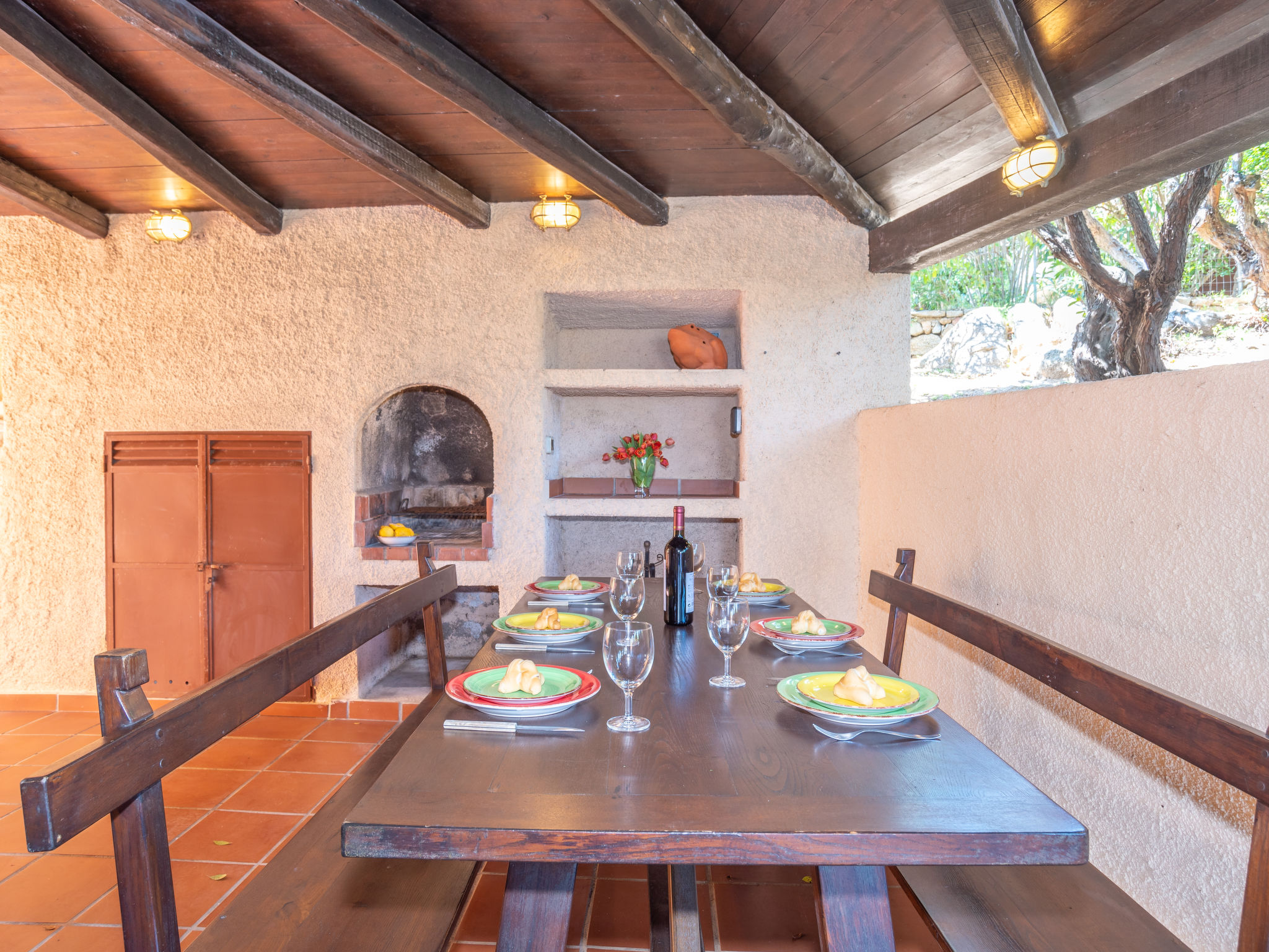 "Mare Blu", 5-Zimmer-Haus 160 m2 auf 2 Stockwerken. Hell, schön eingerichtet: Wohn-/Esszimmer mit offenem Kamin (nur Deko), Esstisch und Sat-TV. Ausgang zur Terrasse. 2 Zimmer, jedes Zimmer mit 1 Doppelbett und Dusche/WC. Küche (Mini-Backofen, Geschirrspüler, 4 Flammen, Toaster, Wasserkocher, Mikrowelle, Tiefkühler). Ausgang zur Terrasse. Sep. WC. Unteres Geschoss: 1 Zimmer mit 1 Doppelbett. 1 Zimmer mit 2 Betten. Dusche/WC. G-Heizung. Grosse Terrasse überdacht, kleine Terrasse. Terrassenmöbel, Gartengrill, Liegestühle (4). Herrliche Sicht auf das Meer und La Maddalena. Zur Verfügung: Waschmaschine, Bügeleisen, Babybett. Bitte beachten: Nichtraucher-Haus. 1 kleines Haustier/Hund erlaubt. Eigener Eingang. IUN: Q2304