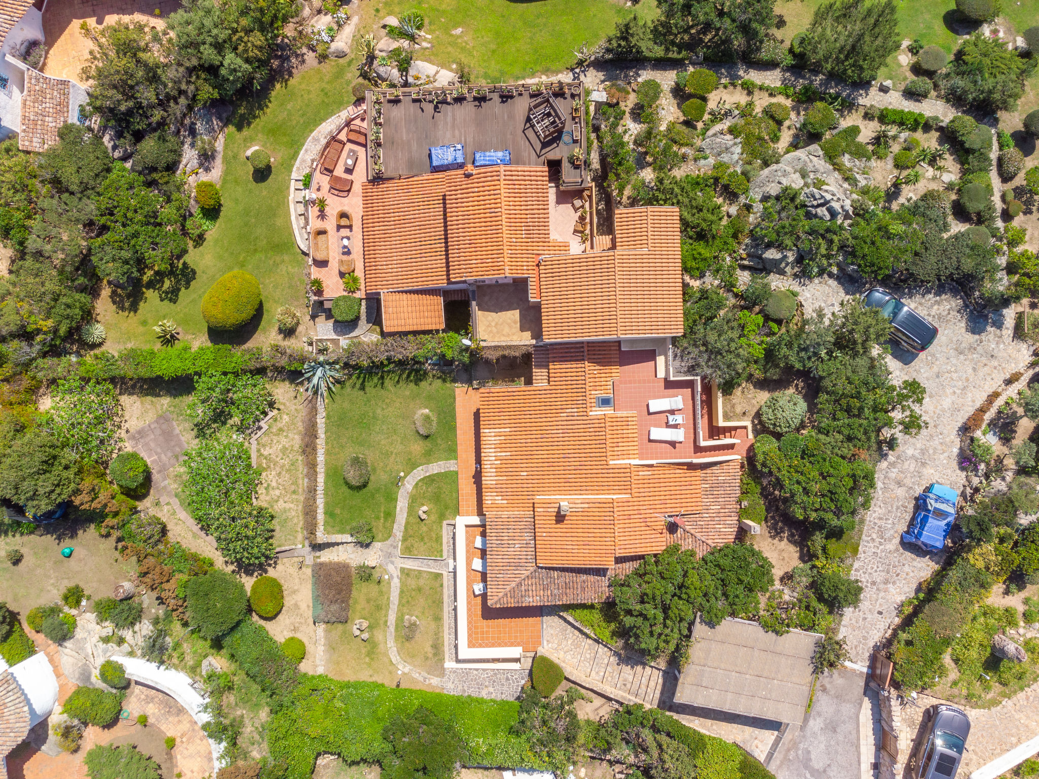 Schönes Haus "Mare Blu", 100 m.ü.M.. 4 km vom Zentrum von Palau, am Ortsrand, 450 m vom Zentrum von Porto Rafael, 30 km vom Zentrum von Porto Cervo, am Hang, im Villenviertel, 550 m vom Meer. Zur Alleinbenutzung: Grundstück 900 m2 (eingezäunt), Terrassengarten mit Rasen und Pflanzen, Obstgarten. Im Hause: Dachterrasse. 20 m Treppenweg (9 Stufen) bis zum Haus. Parkplatz (für 2 Autos, überdacht) auf dem Grundstück. Einkaufsgeschäft 1.2 km, Supermarkt 3 km, Sandstrand 550 m. Golfplatz (18 Loch) 32 km, Tennis 2 km. Bitte beachten: Fahrzeug empfohlen.