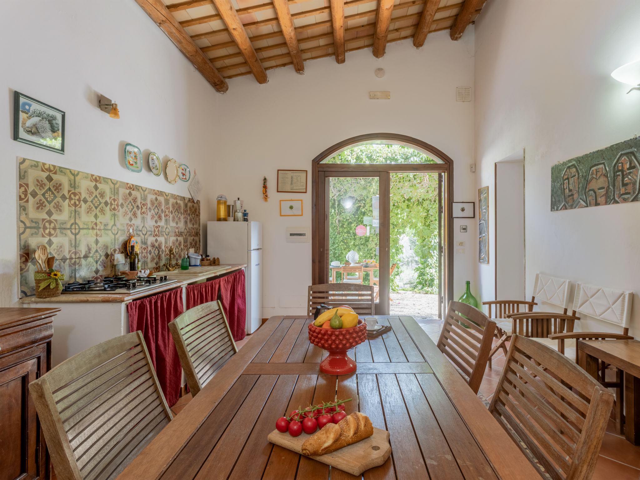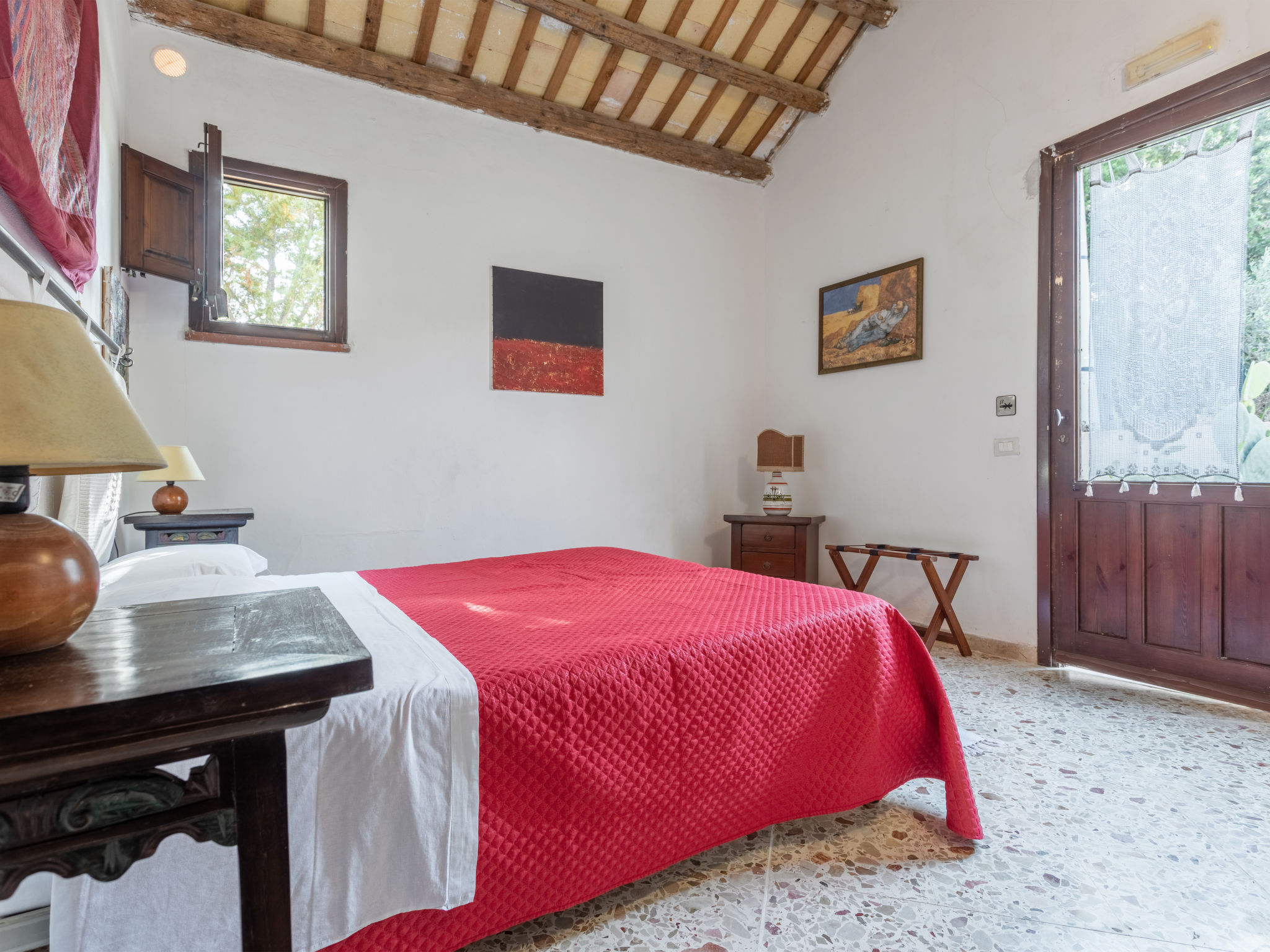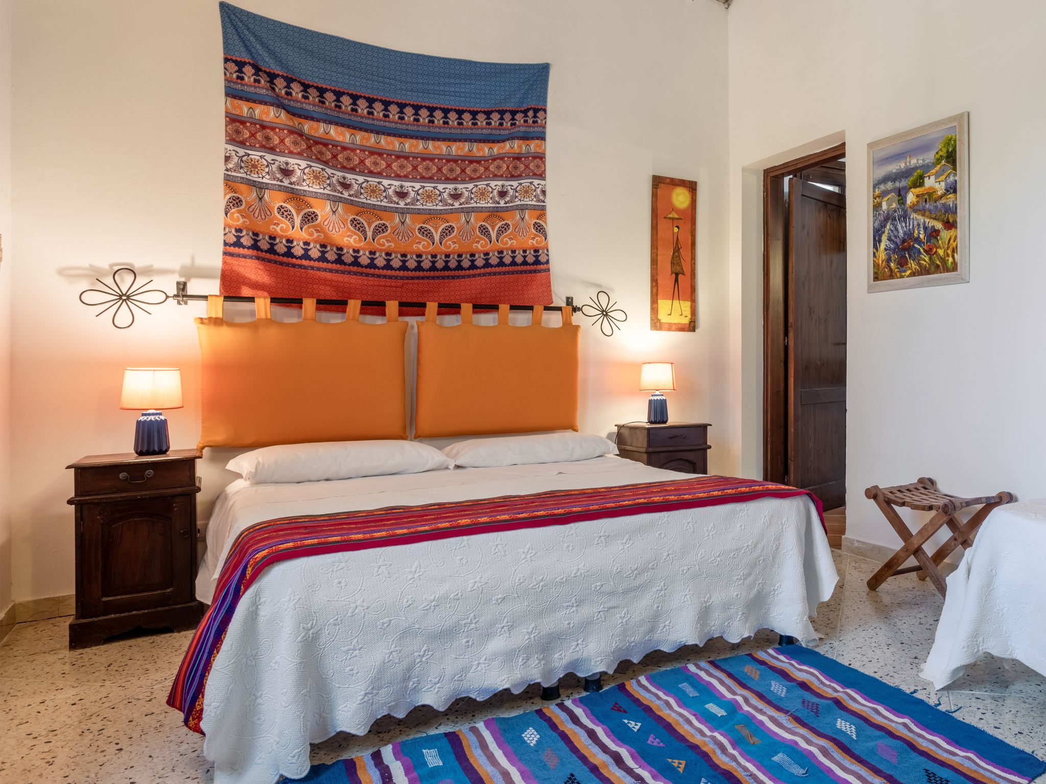 "Mediterraneo", 5-Zimmer-Bauernhaus 180 m2, im Erdgeschoss. Geräumig, zweckmässig und komfortabel eingerichtet: 5 Doppelzimmer, jedes Zimmer mit Dusche/Bidet/WC, TV, Flachbildschirm und Ventilator. Ausgang zur Terrasse. Wohnküche (4 Kochplatten, Tiefkühler) mit Esstisch, Ventilator. Ausgang Pergola. Heizung nur verfügbar von 01.12. bis 31.03. Terrassenmöbel, Gartengrill. Zur Verfügung: Bügeleisen, Haartrockner. Internet (Wireless LAN, gratis). Parkplatz. Maximal 1 Haustier/Hund erlaubt.