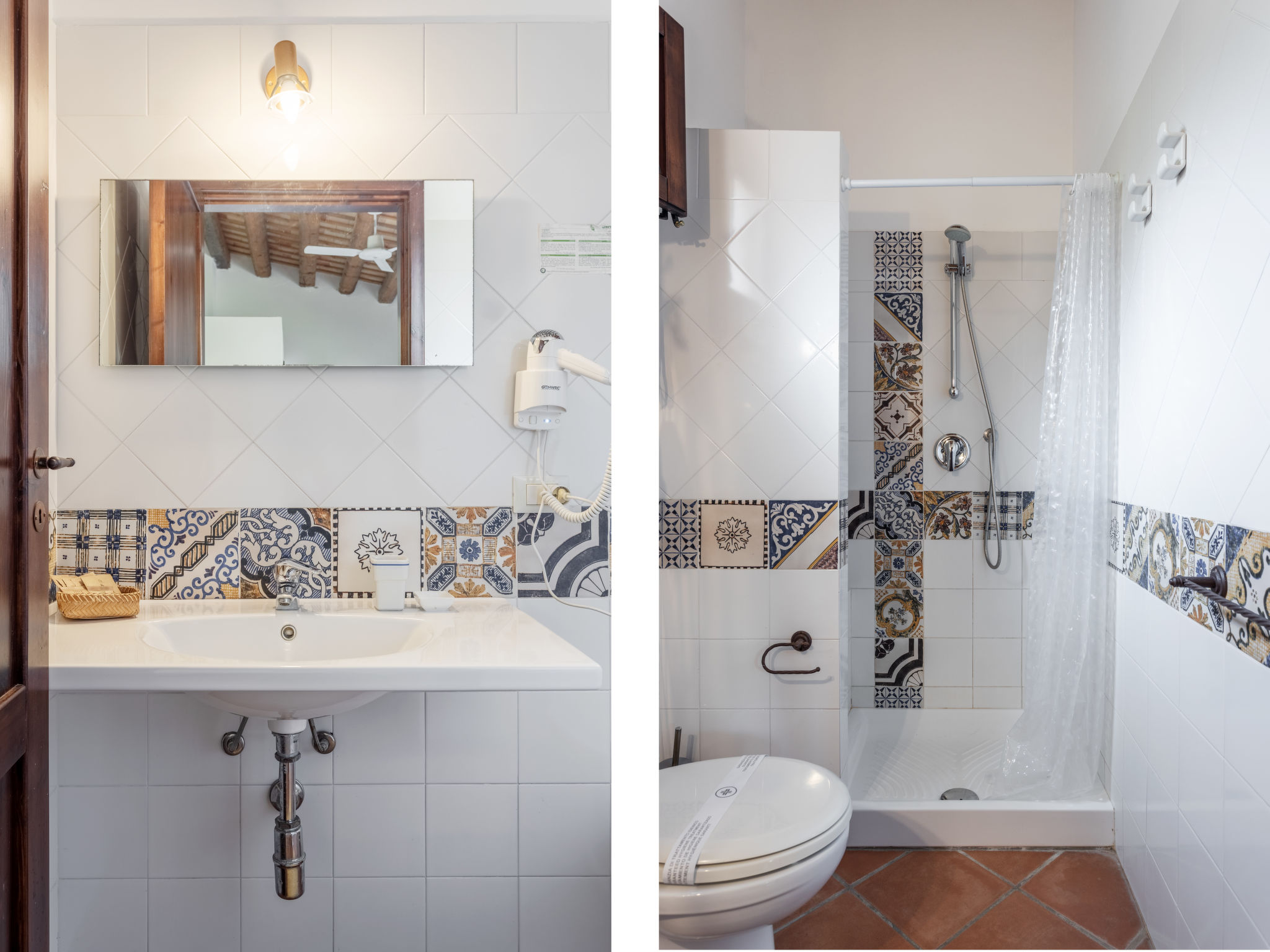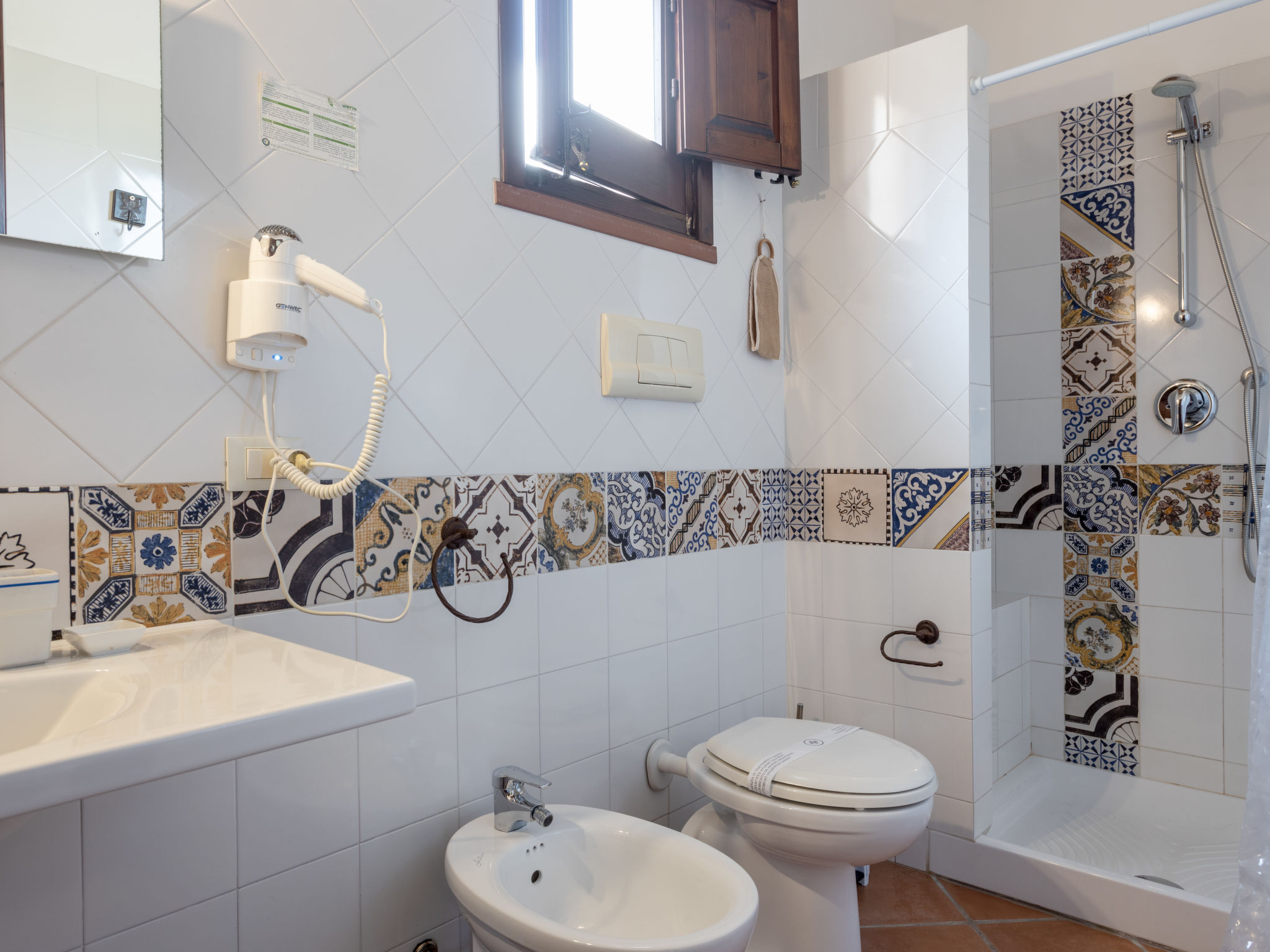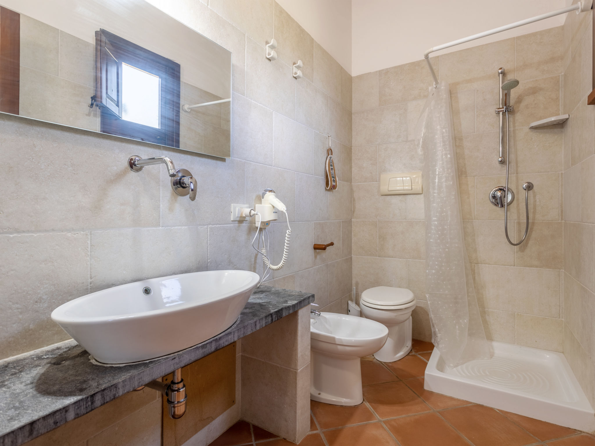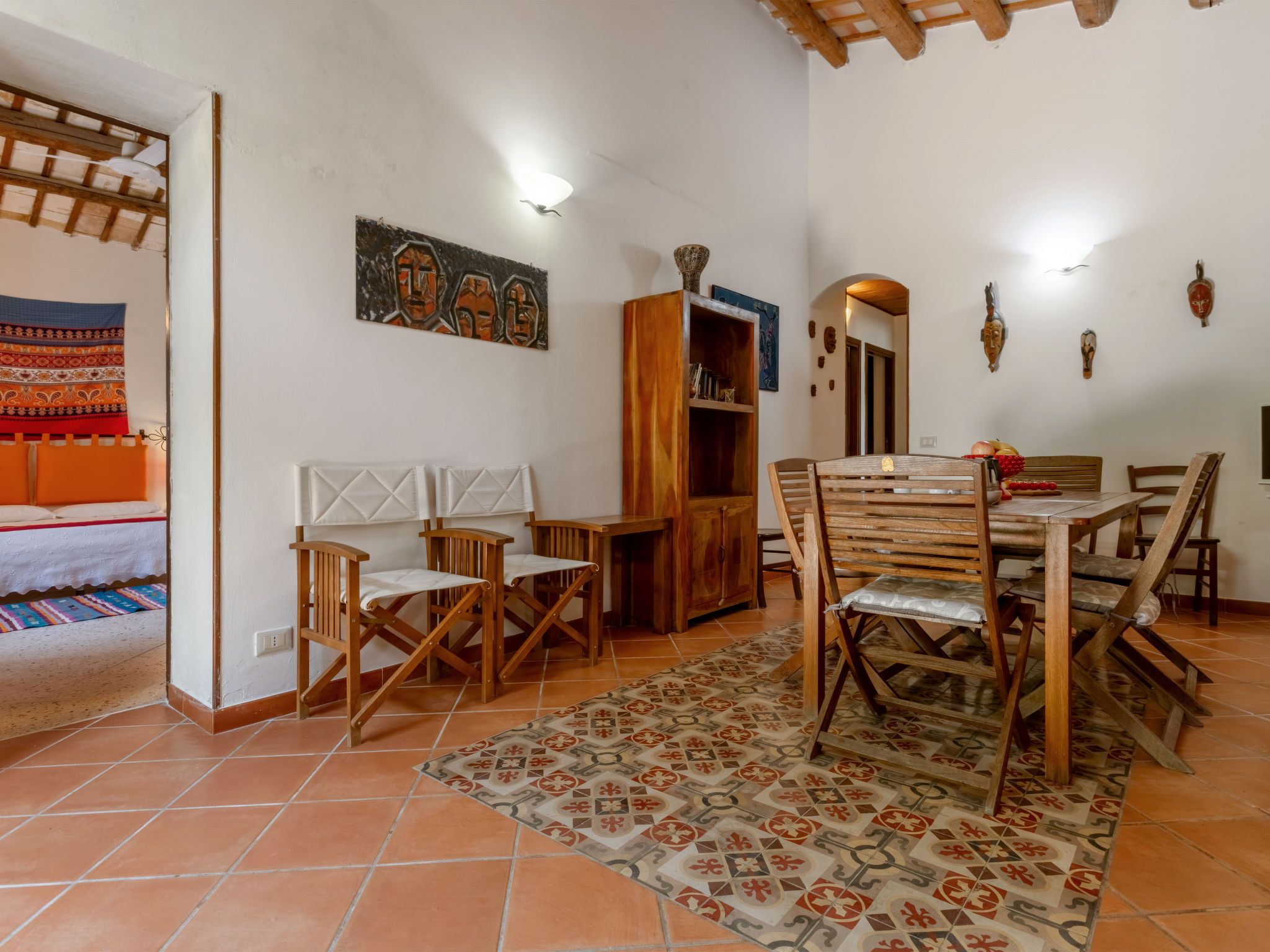 "Mediterraneo", 5-Zimmer-Bauernhaus 180 m2, im Erdgeschoss. Geräumig, zweckmässig und komfortabel eingerichtet: 5 Doppelzimmer, jedes Zimmer mit Dusche/Bidet/WC, TV, Flachbildschirm und Ventilator. Ausgang zur Terrasse. Wohnküche (4 Kochplatten, Tiefkühler) mit Esstisch, Ventilator. Ausgang Pergola. Heizung nur verfügbar von 01.12. bis 31.03. Terrassenmöbel, Gartengrill. Zur Verfügung: Bügeleisen, Haartrockner. Internet (Wireless LAN, gratis). Parkplatz. Maximal 1 Haustier/Hund erlaubt.