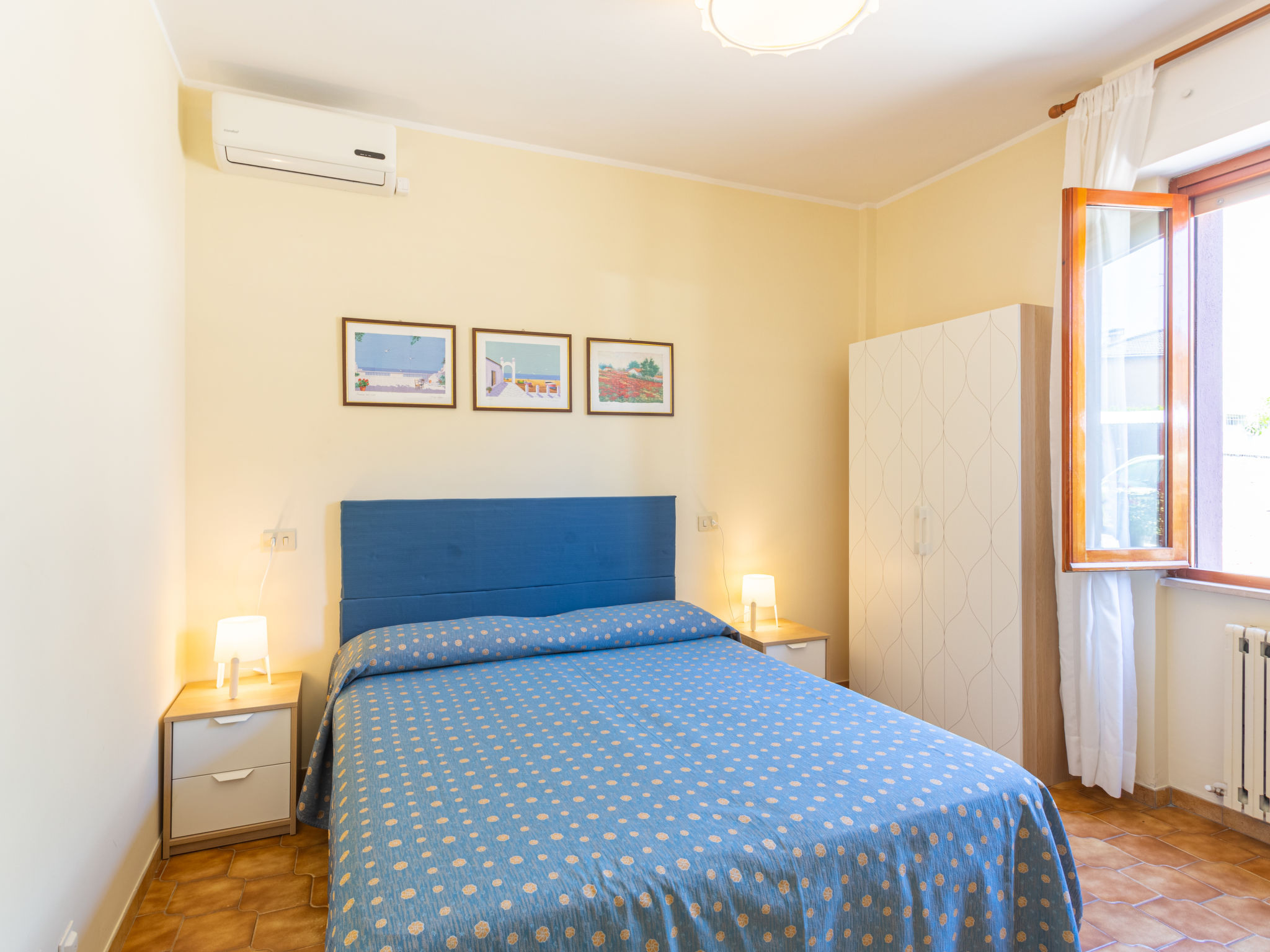 Die familengeführte Hotel-Residenz MARE BLU mit insgesamt 24 Hotelzimmern und einer Dependance mit 2 Ferienwohnungen steht auf einem Grundstück, 100 m vom Meer mit Privatstrand (Straßenüberquerung) entfernt. Ortsmitte von Francavilla al Mare 2 km. Supermarkt und Restaurants ca. 300 m. Pro Wohnung 1 Parkplatz auf dem Grundstück. Weitere Parkmöglichkeiten entlang der Straße beim Haus. Im Hotelbereich: Rezeption (teils deutsch-, teils englischsprachig, durchgehend geöffnet), Café/Bar (30.04.-25.09.), Restaurant (15.06.-30.08., auf Wunsch Frühstück/Halbpension möglich, Buchung und Bezahlung am Ort). Münzwaschmaschine. Die Wohnungen haben jeweils eine geflieste Terrasse (Mobiliar) und geschmackvoll mit neuen Möbeln eingerichtet worden. Fliesenboden. Sat-TV. Internetzugang (WLAN, inklusive). Klimaanlage mit Kühl-/Heizfunktion. Hinweis: Rauchen ist in den Wohnungen nicht gestattet.