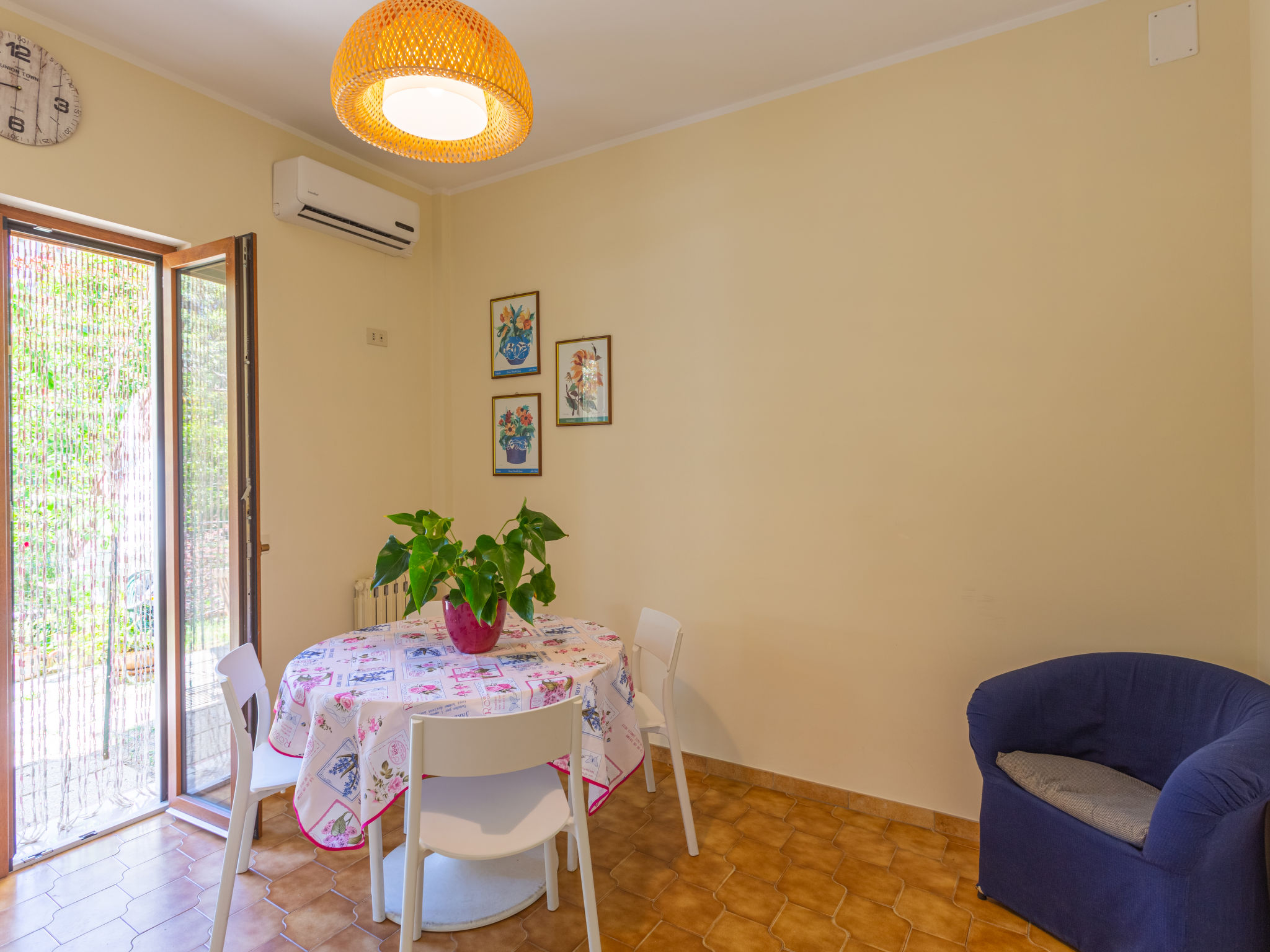 3-Zimmer-Wohnung, Erdgeschoss, ca. 50 m². Separater Zugang. Wohnküche (2 Platten, Mikrowelle, Kühlschrank, Kaffeemaschine, Wasserkocher, Toaster) mit Essplatz, 2 Sesseln und Terrassenausgang. Schlafzimmer mit franz. Bett (1,60 m breit) und Dusche/WC. Zweibettzimmer (Betten zusammenstellbar) mit Dusche/WC.