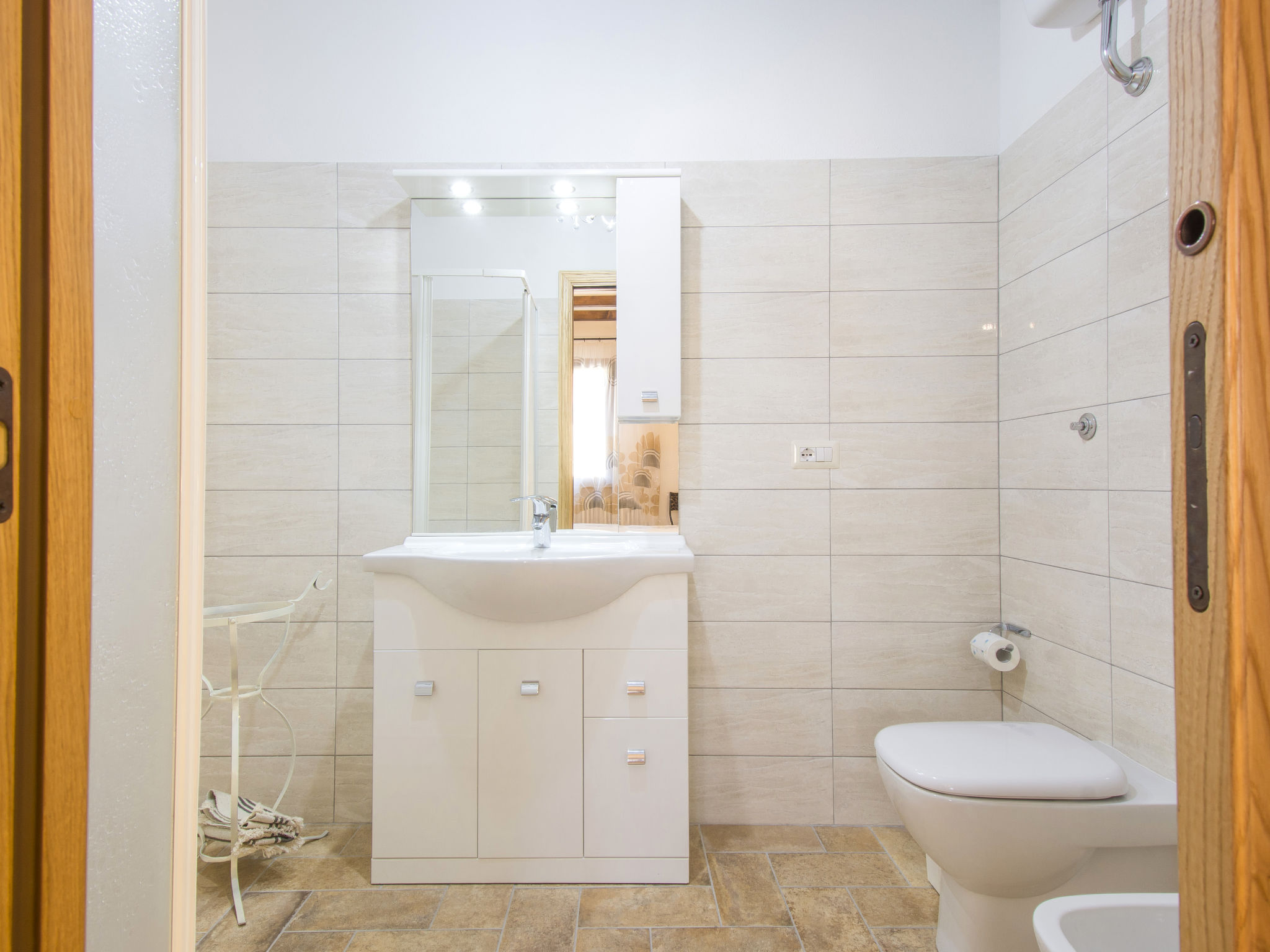 "Podere Sant'Elisa", 4-Zimmer-Wohnung 105 m2 im 1. Stock. Renoviert im Jahre 2017, geschmackvoll eingerichtet: 1 Zimmer mit 1 franz. Bett (160 cm), Dusche/WC. 1 Zimmer mit 1 franz. Bett (160 cm). 1 Zimmer mit 3 Betten (80 cm). Wohnküche (Backofen, Geschirrspüler, 5 Flammen, Toaster, Wasserkocher, Mikrowelle, Tiefkühler, elektrische Kaffeemaschine) mit Esstisch. Dusche/WC. Klimaanlage, Warmluftheizung. Balkon, Terrasse. Terrassenmöbel, Balkonmöbel. Panoramasicht. Zur Verfügung: Bügeleisen, Babybett. Internet (Wireless LAN, extra). Bitte beachten: Nichtraucher-Unterkunft. Maximal 1 Haustier/Hund erlaubt.
