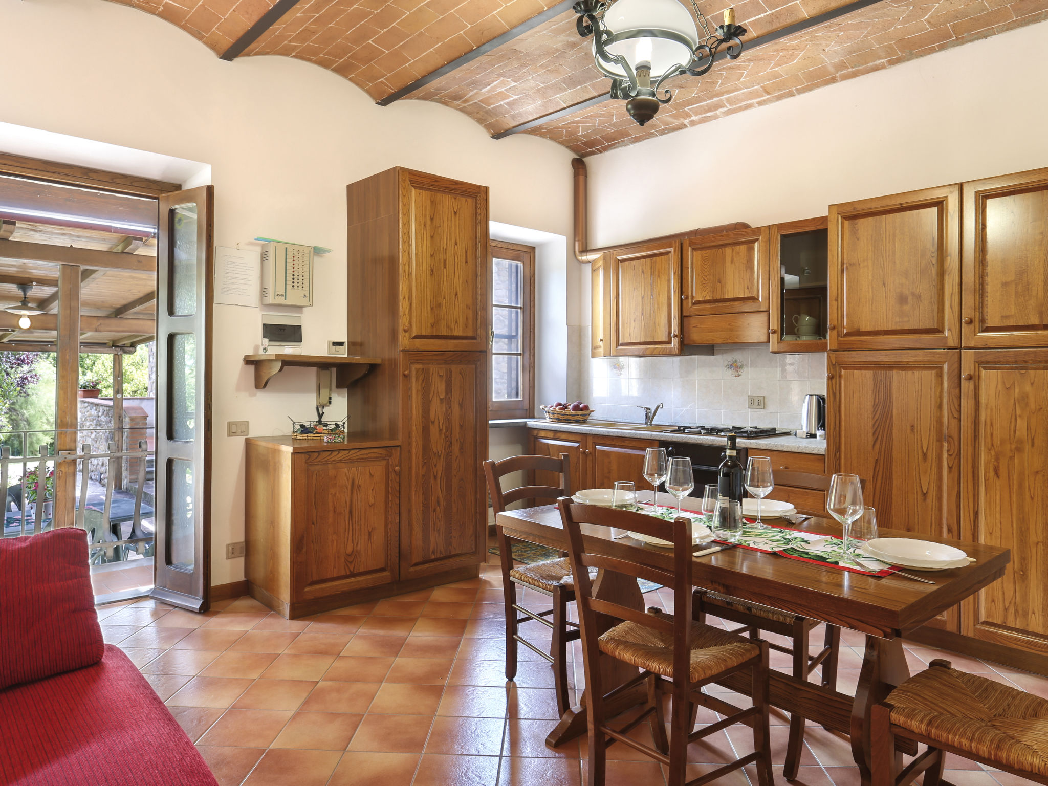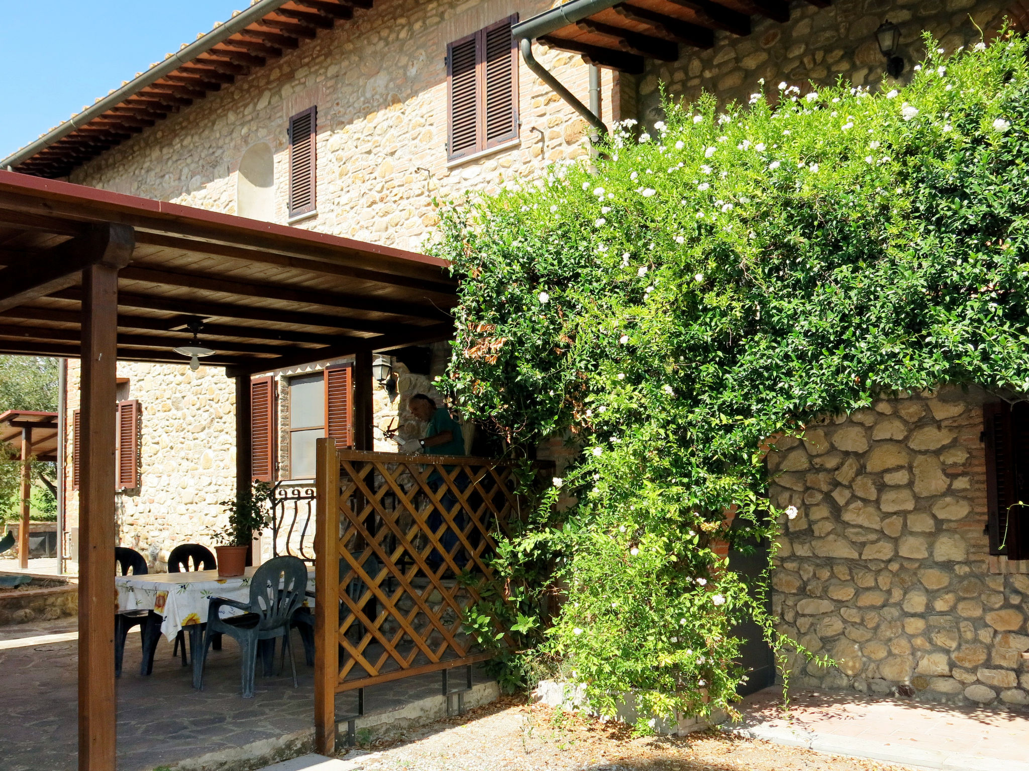 Ferienanlage "La Cerretella", Baujahr 1800. 9 Wohnungen in der Residenz. 6 km vom Zentrum von Terricciola, 5 km vom Zentrum von Laiatico, 45 km vom Zentrum von Pisa, 43 km vom Meer, im Grünen. Zur Mitbenutzung: Grundstück 50 ha mit Bäumen, Wiese, Schwimmbad (16 x 8 m, saisonale Verfügbarkeit: 09.Mai.-03.Okt.). Kinderbecken, Aussendusche, Tennis (extra), Tischtennis, Terrasse, Grill, Kinderspielplatz. 400 m lange Zufahrt (Naturweg). Parkplatz auf dem Grundstück. Einkaufsgeschäft 5 km, Supermarkt 5 km, Sandstrand "Cecina Mare" 43 km. Der Besitzer akzeptiert keine Gruppen.