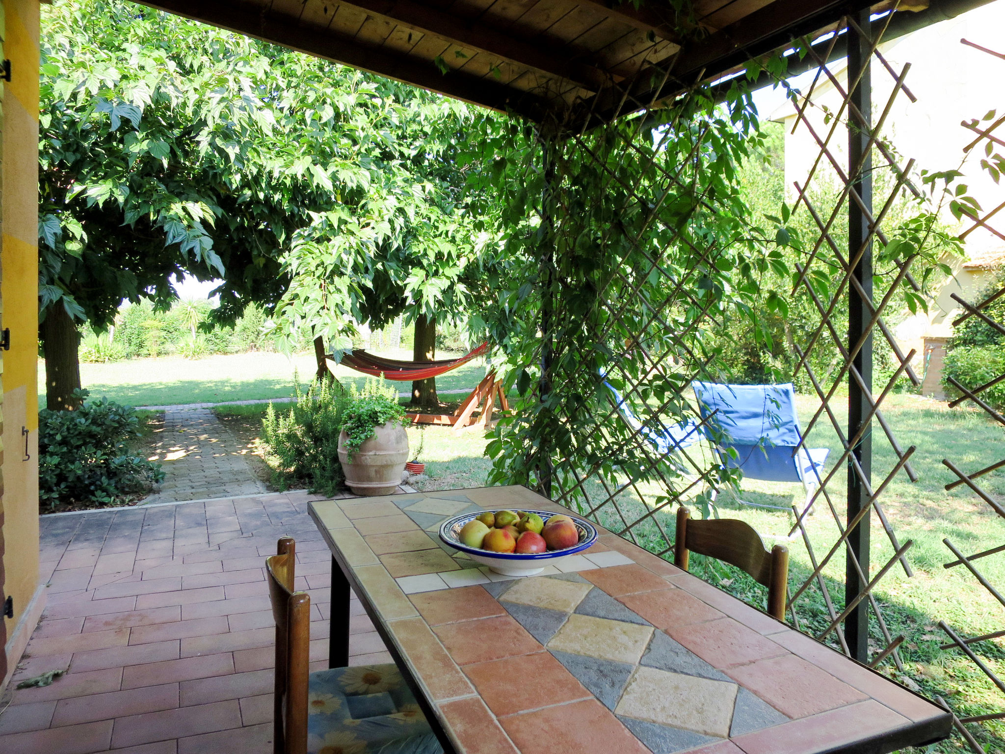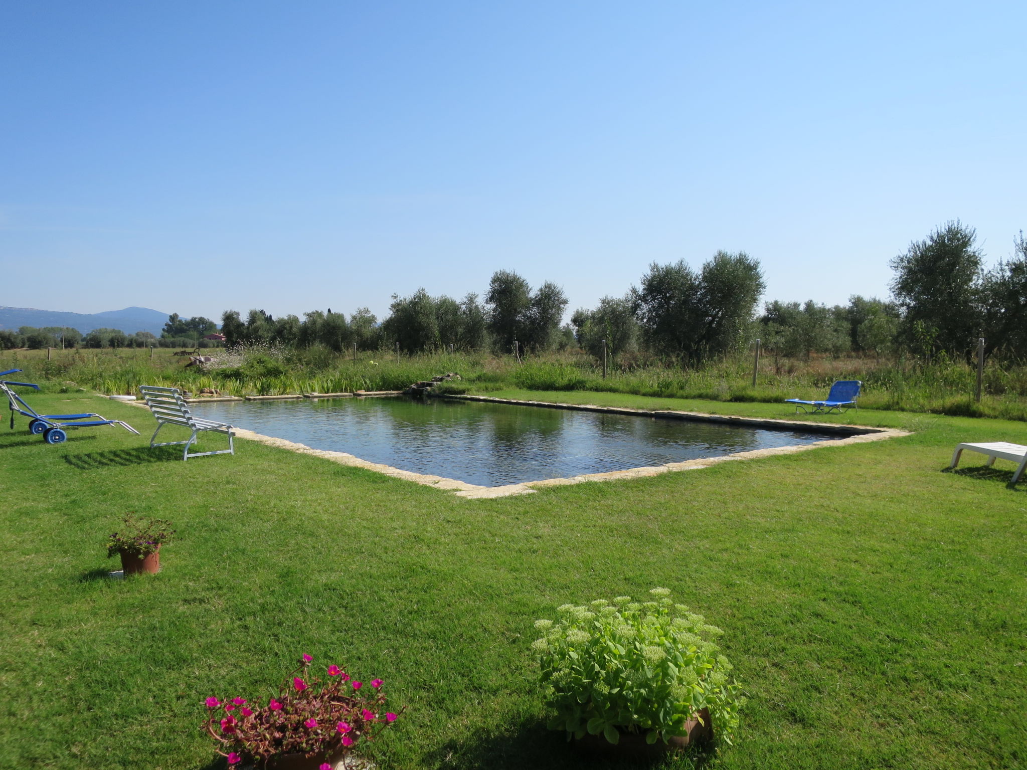 Kleines Bauerngut "Podere Noé". 3 Wohnungen in der Residenz. 7 km vom Zentrum von Ribolla, 24 km vom Zentrum von Grosseto, 16 km vom Zentrum von Roccastrada, alleinstehende Lage, 30 km vom Meer, im Grünen. Zur Mitbenutzung: Grundstück 2'500 m2 (eingezäunt), Garten mit Pflanzen und Bäumen, Liegewiese, Naturteich, Schwimmbad (14 x 7 m, 50 - 150 cm tief, saisonale Verfügbarkeit: 01.Jan.-31.Dez.). Grill. Im Hause: Waschmaschine (zur Mitbenutzung). Parkplatz (überdacht) auf dem Grundstück. Einkaufsgeschäft 7 km, Supermarkt 7 km, Sandstrand "Castiglione della Pescaia" 30 km. Golfplatz (18 Loch) 25 km. Nahe gelegene Sehenswürdigkeiten: Montemassi 10 km, Castiglione della Pescaia 30 km. Ab Hof Verkauf von bäuerlichen Produkten. Bitte beachten: Der Besitzer wohnt auf dem gleichen Grundstück. Der Pool ist ein Naturteich, bestehend aus einem Badeabschnittund einem ca. 7 x 7 m großen Regenerierungsabschnitt mit Pflanzen. Umzäunte Liegewiese mit Liegestühlen. Direktverkauf biologischer Produkte wie Olivenöl und Früchten aus eigener Herstellung (je nach Saison).