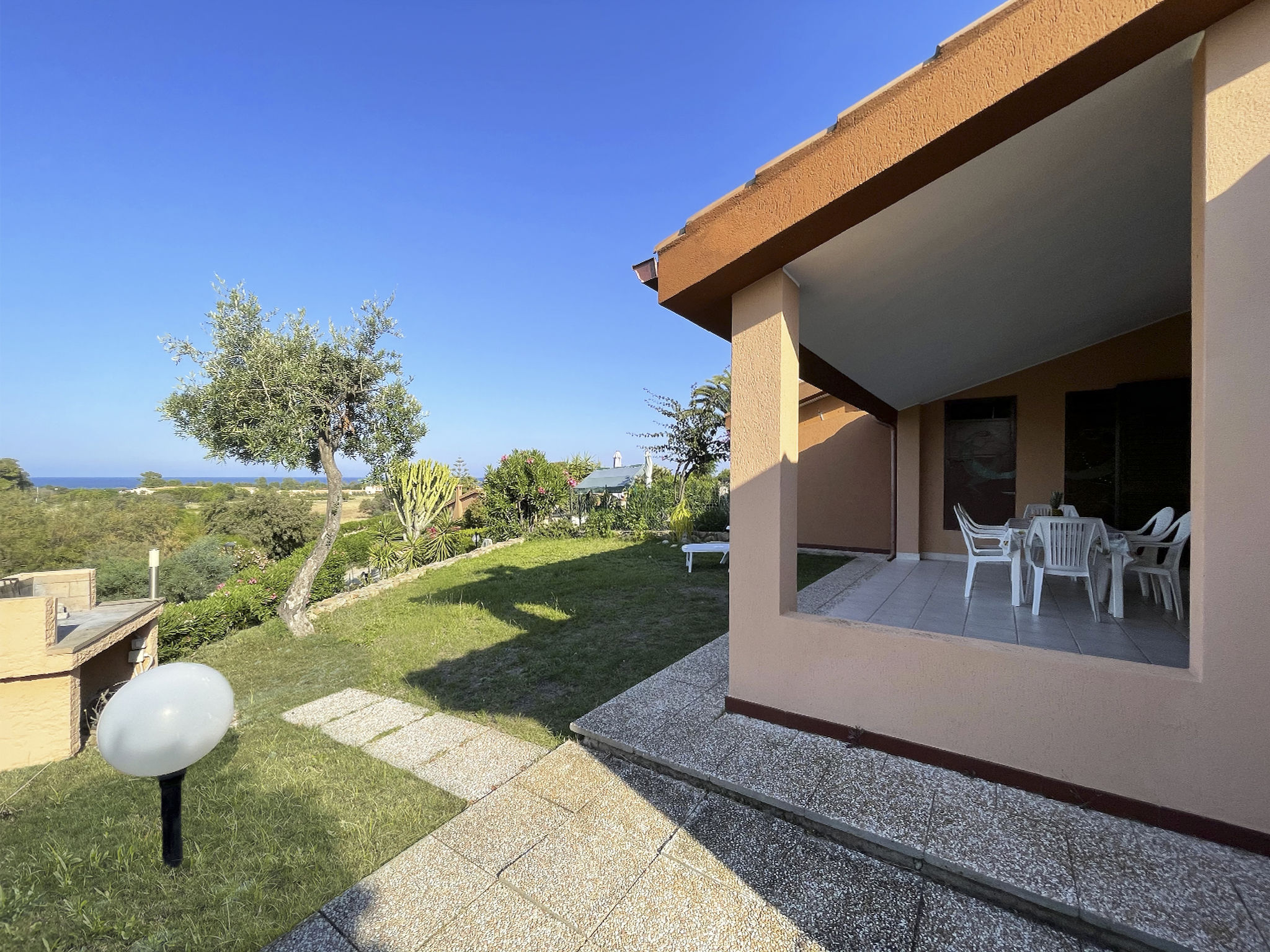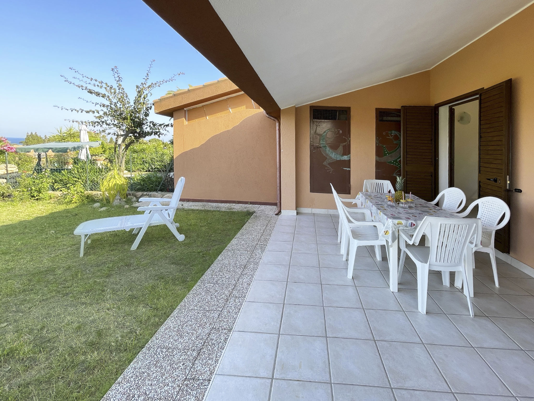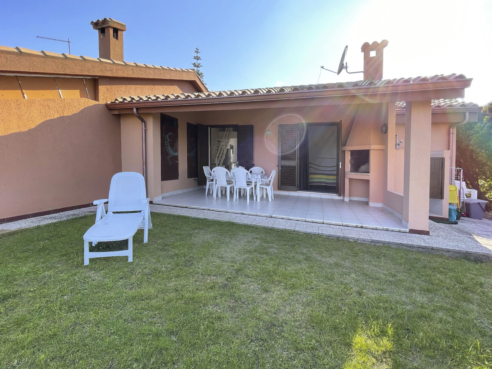 Feriensiedlung "Rei Marina". Im Ort, ruhige, sonnige Lage, 700 m vom Meer. Zur Alleinbenutzung: Garten 35 m2. Aussendusche, Parkplatz. Einkaufsgeschäft, Supermarkt, Restaurant, Bar 350 m, Sandstrand 700 m.
