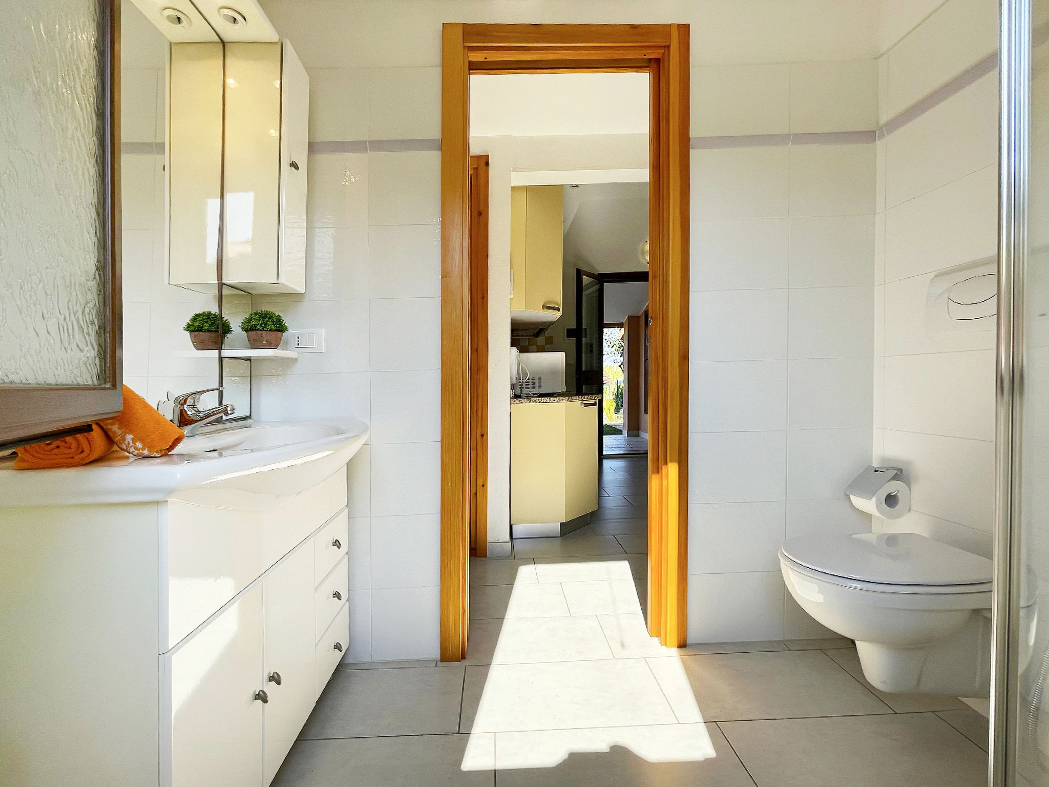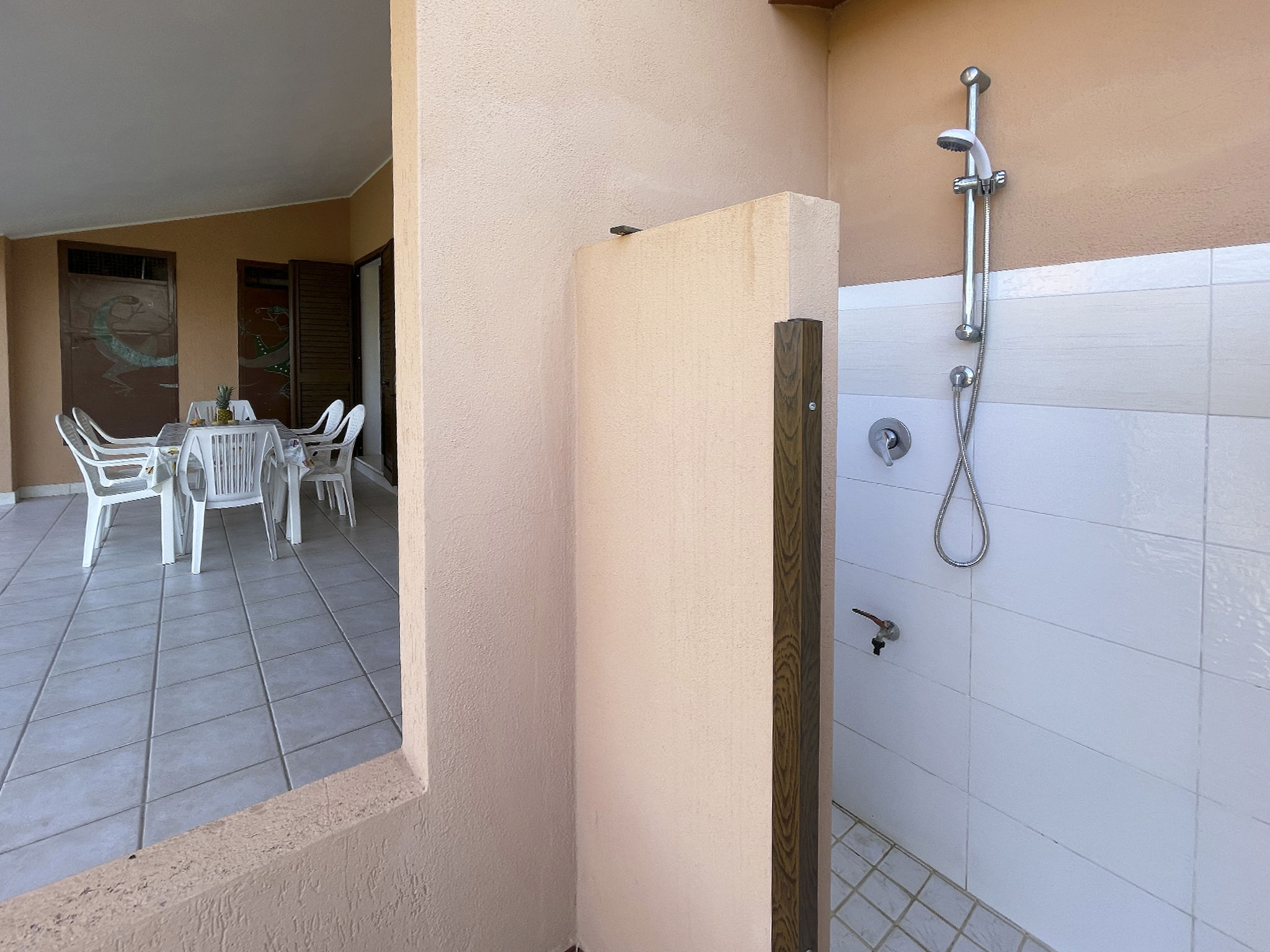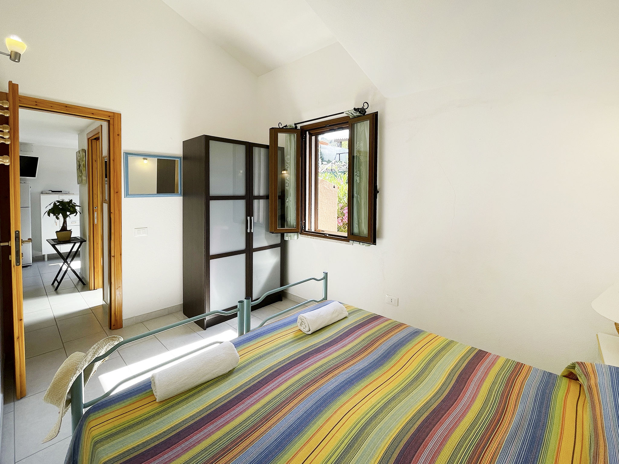 Feriensiedlung "Rei Marina". Im Ort, ruhige, sonnige Lage, 700 m vom Meer. Zur Alleinbenutzung: Garten 35 m2. Aussendusche, Parkplatz. Einkaufsgeschäft, Supermarkt, Restaurant, Bar 350 m, Sandstrand 700 m.