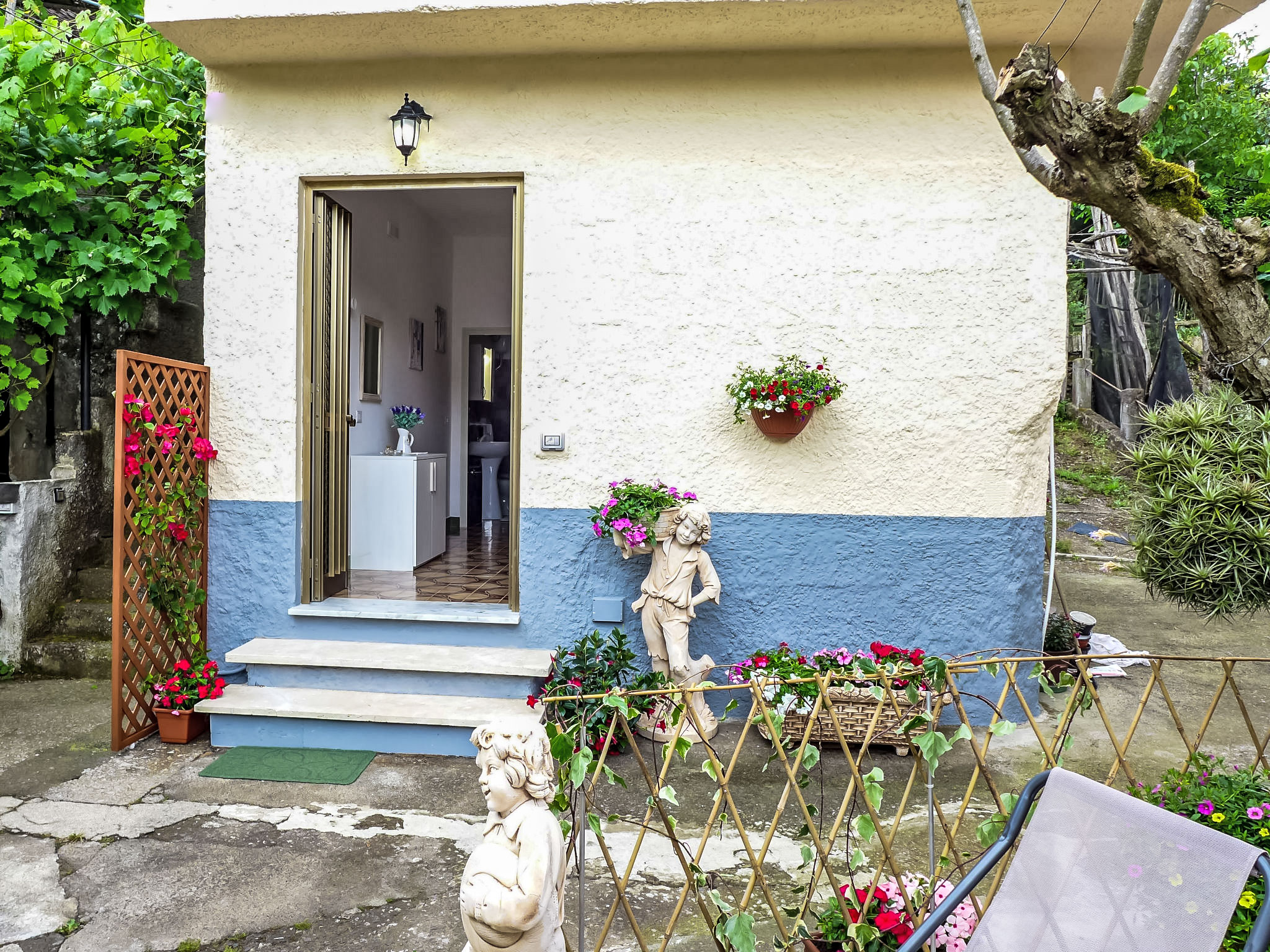 "Il Piccolo Nocelleto", 1-Zimmer-Haus 30 m2, im Erdgeschoss. Vollständig renoviert im Jahre 2018, einfach und zweckmässig eingerichtet: 1 Doppelzimmer mit Klimaanlage und Warmluftheizung. Ausgang zum Gartensitzplatz. Kleine Küche (2 Kochplatten, Mikrowelle, elektrische Kaffeemaschine) mit kleinem Esstisch. Dusche/Bidet/WC. Klimaanlage, Warmluftheizung (extra). Heizung nur verfügbar von 01.11. bis 31.03. Kleiner Gartensitzplatz 10 m2. Terrassenmöbel, Gartengrill, Liegestühle (2). Zur Verfügung: Haartrockner. Internet (Wireless LAN, gratis). Parkplatz (1 Auto) beim Haus. Bitte beachten: Kühlschrank ohne Gefrierfach. 1 kleines Haustier/Hund erlaubt.