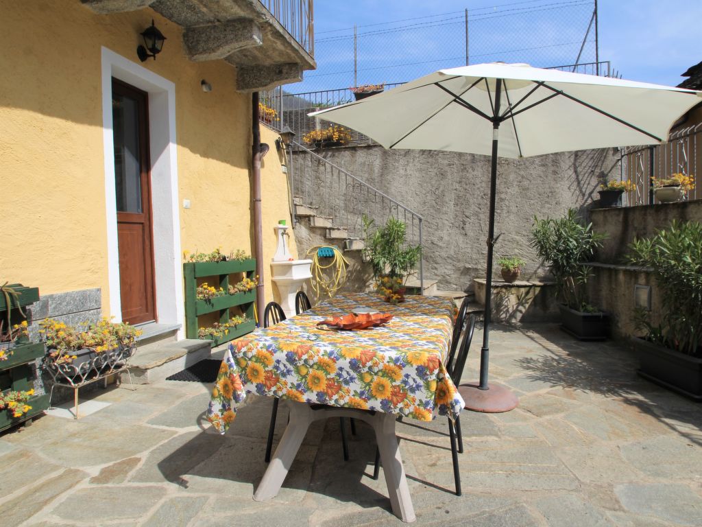 Zweifamilienhaus "Rosetta", auf 2 Stockwerken, einseitig angebaut. Im Ortsteil Bracchio, 1.3 km vom Zentrum von Mergozzo, 10 km vom Zentrum von Verbania, am Hang, 1.3 km vom See. Zur Mitbenutzung: Grundstück, Hof. 80 m lange schmale Zufahrt bis zum Grundstück. Öffentliche Parkplätze 200 m. Einkaufsgeschäft 1.3 km, Supermarkt 6 km, Grasstrand "Lago di Mergozzo" 1.3 km. Golfplatz (18 Loch) 6 km. Bitte beachten: Be- und Entladen am Ferienhaus möglich.