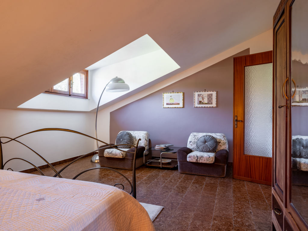 "Ca' D'Gnese (CTZ201)", 3-Zimmer-Wohnung 70 m2, im Dachgeschoss. Hell, renoviert im Jahre 2019, geschmackvoll eingerichtet: abgeschrägtes Wohn-/Esszimmer mit Esstisch und TV. 1 abgeschrägtes Zimmer mit 1 franz. Bett (180 cm). 1 abgeschrägtes Zimmer mit 2 Betten. Ausgang zum Balkon. Offene Küche (Backofen, 4 Flammen, Toaster, Wasserkocher, Tiefkühler, elektrische Kaffeemaschine). Dusche/WC. Ölheizung, Klimaanlage. Kleiner Balkon, Gartensitzplatz. Balkonmöbel. Zur Verfügung: Internet (Wireless LAN, gratis). Bitte beachten: Nichtraucher-Unterkunft. CIR: 00502200006