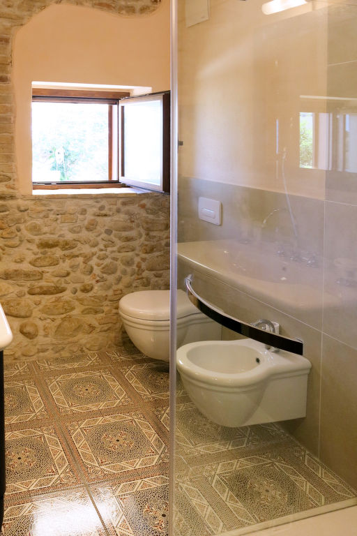 Sehr schöner, rustikaler, komfortabler Landsitz "Serrani", renoviert im Jahre 2018, umgeben von Wiesen und Feldern. 2 Häuser in der Residenz. 4 Wohnungen in der Residenz. 8 km vom Zentrum von Roseto degli Abruzzi, 13 km vom Zentrum von Giulianova, 17 km vom Zentrum von Pineto, alleinstehende, sonnige Lage am Hang, 6 km vom Meer, im Grünen. Zur Mitbenutzung: naturbelassenes Grundstück 5 ha, schöner Terrassengarten, 5'000 m2 (nicht eingezäunt) mit Pflanzen und Bäumen, Obstgarten, Liegewiese, Aufstellpool (10 x 5 m, 130 cm tief, saisonale Verfügbarkeit: 04.Jun.-03.Okt.). Sitzplatz, Laube, Pergola, Gartenmöbel, Grill. In der Anlage: Sprudelbad (alles inkl.), Waschmaschine (zur Mitbenutzung). 100 m lange holprige Zufahrt bis zum Haus. Treppenweg bis zum Haus. Parkplatz auf dem Grundstück. Einkaufsgeschäft 1 km, Supermarkt 8 km, Bahnstation "Roseto degli Abruzzi" 8 km, Sandstrand 6 km. Ab Hof Verkauf von bäuerlichen Produkten. Bitte beachten: In diesem Haus sind weitere Ferienwohnungen mietbar.