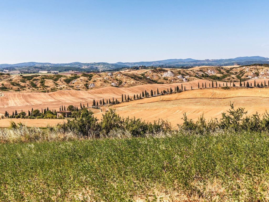 Sehr alte Feriensiedlung, umgeben von Bäumen und Feldern. 25 Wohnungen im Ferienhaus. 3 km vom Zentrum von Asciano, 30 km vom Zentrum von Siena, 100 km vom Zentrum von Firenze, erhöhte Lage auf einem Hügel. Zur Mitbenutzung: Park 18'000 m2, Schwimmbad (20 x 8 m, 70 - 160 cm tief, saisonale Verfügbarkeit: 01.Jun.-20.Sep.). Heizung vor Ort zu zahlen (01.11.-15.04.), Heizung nur verfügbar von 01.11. bis 15.04.. Parkplatz (für 2 Autos) beim Haus. Supermarkt 3 km, Restaurant 3 km, Bar 3 km, Bahnstation "Asciano" 3 km, Thermalbad "Rapolano Terme" 12 km. Nahe gelegene Sehenswürdigkeiten: Abbazia di Monte Oliveto 7 km, Crete Senesi 1 km, Pienza 35 km, Siena 30 km, Firenze 106 km, Montalcino 30 km. Bitte beachten: Fahrzeug empfohlen. Geeignet für Familien. Die Schlüsselübergabe findet bei der Agentur Il Casolare in Asciano statt, 3 km. Ein zweites Schwimmbad (6 x 5 m, 140 cm tief, geöffnet vom 01.06 bis zum 20.09.) Steht zur gemeinsamen Nutzung zur Verfügung.
