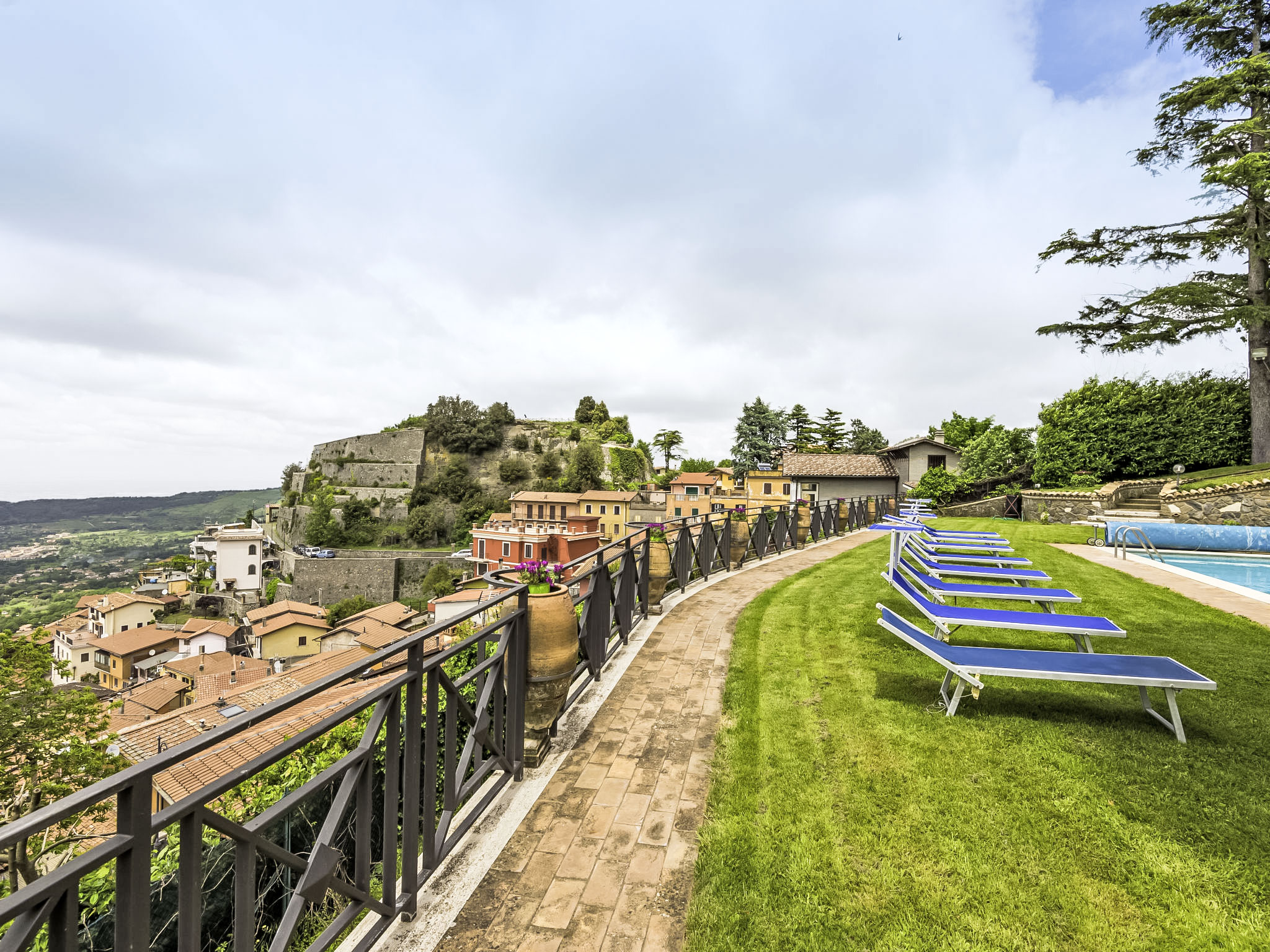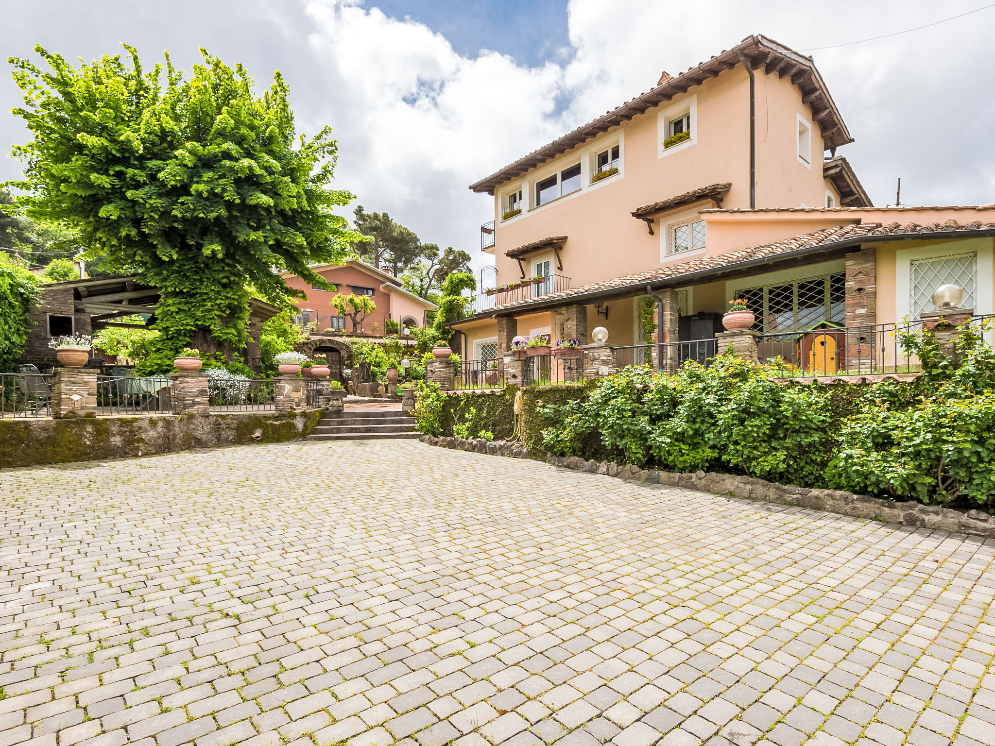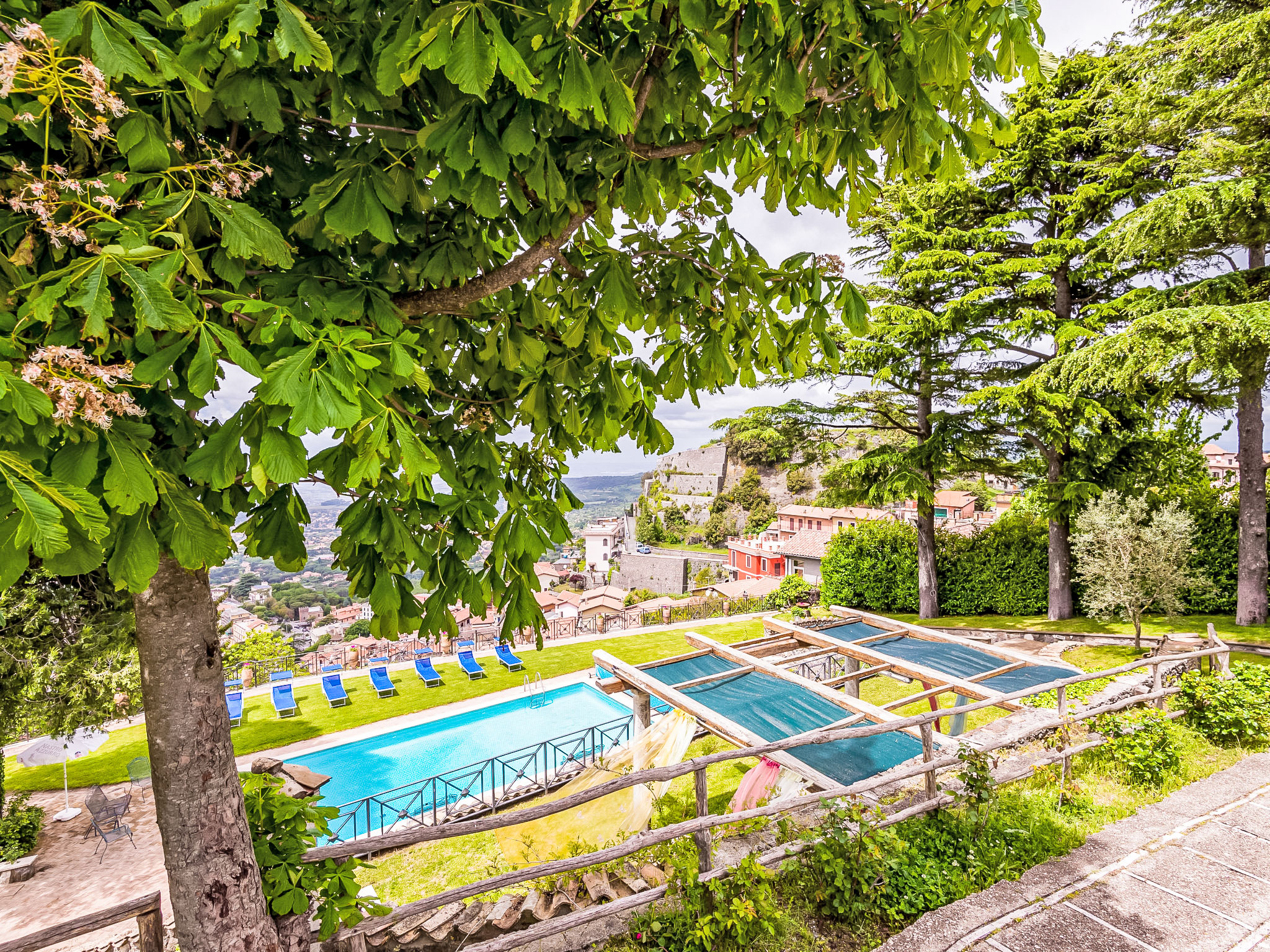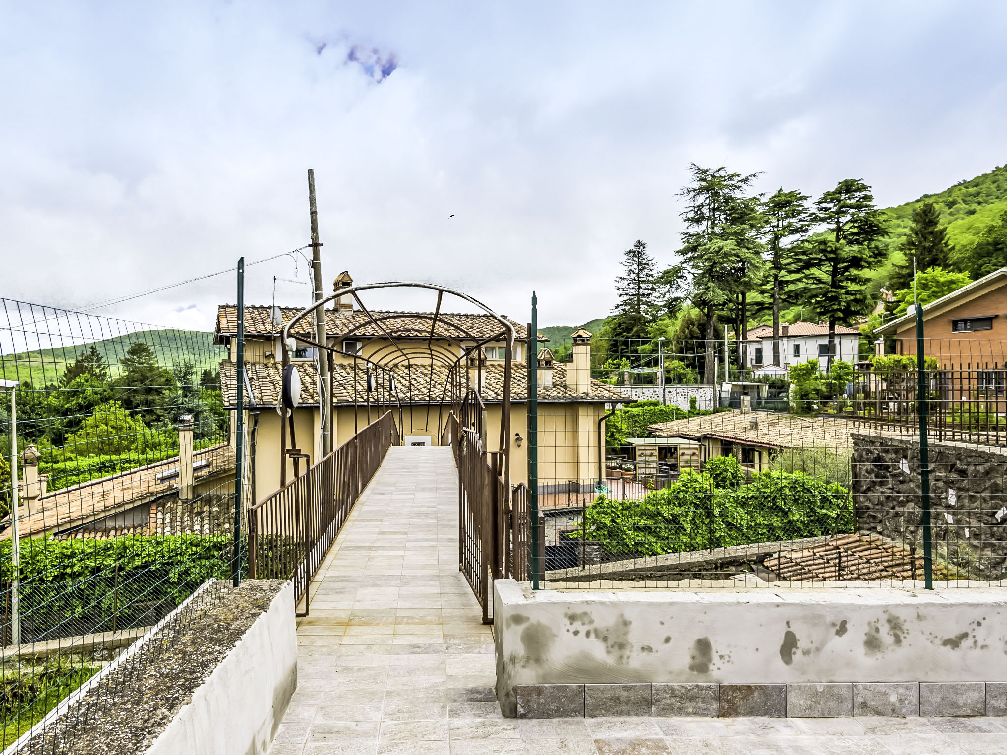 Zugang zum Pool und dem privaten Garten vom Balkon und über einen Fußweg über eine kleine Straße schöne, alleinstehende Villa "Vista da Rocca di Papa", auf 3 Stockwerken. Im Ort, 600 m vom Zentrum von Rocca Di Papa, ruhige, sonnige, erhöhte Lage im Villenviertel, 25 km vom Meer. Zur Alleinbenutzung: grosser Garten 4'000 m2 (eingezäunt) mit Rasen und Blumen, Teich, Schwimmbad (12 x 6 m, 110 - 220 cm tief, 15.05.-30.09.) mit Rollladenabdeckung. WC im Poolbereich, Poolhaus, Sitzplatz, Laube (10 m2), Terrasse, Gartenmöbel, Grill, Parkplatz (für 3 Autos) beim Haus. Lebensmittelgeschäft 600 m, Supermarkt 800 m, Restaurant 700 m, Bar 300 m. Nahe gelegene Sehenswürdigkeiten: Roma 30 km, Castel Gandolfo 8 km, Anzio 40 km, Lido di Ostia 40 km, Rainbow magic Land 30 km. Bekannte Seen in der Umgebung sind gut erreichbar: Lago di Albano 8 km, Lago di Nemi 11 km. Bitte beachten: Fahrzeug empfohlen. Jugendgruppen nur auf Anfrage. Der Besitzer akzeptiert keine Jugendgruppen. Der Besitzer wohnt auf dem gleichen Grundstück.