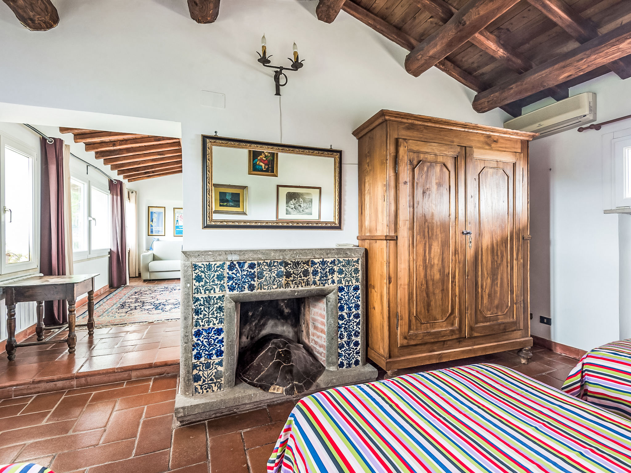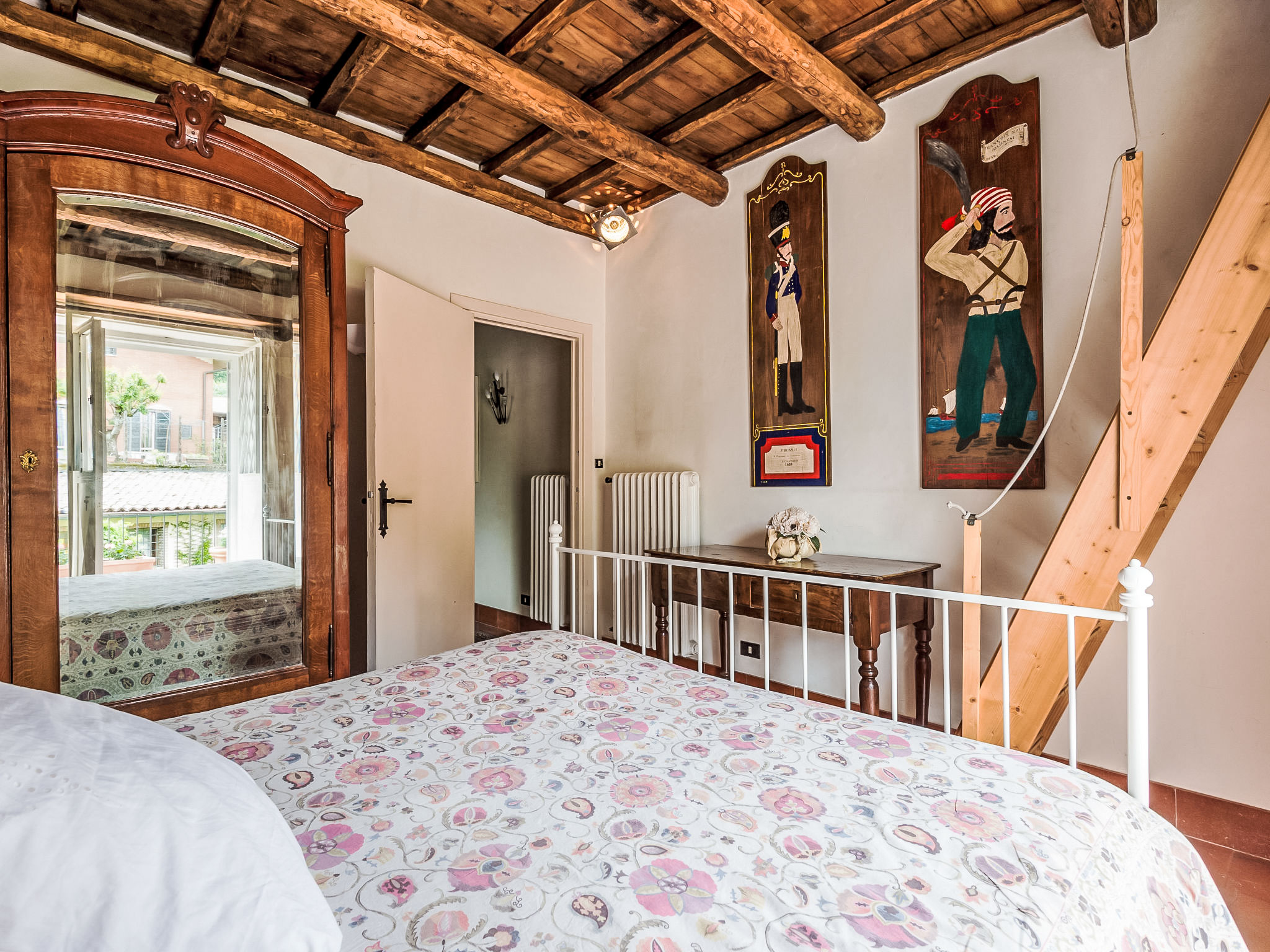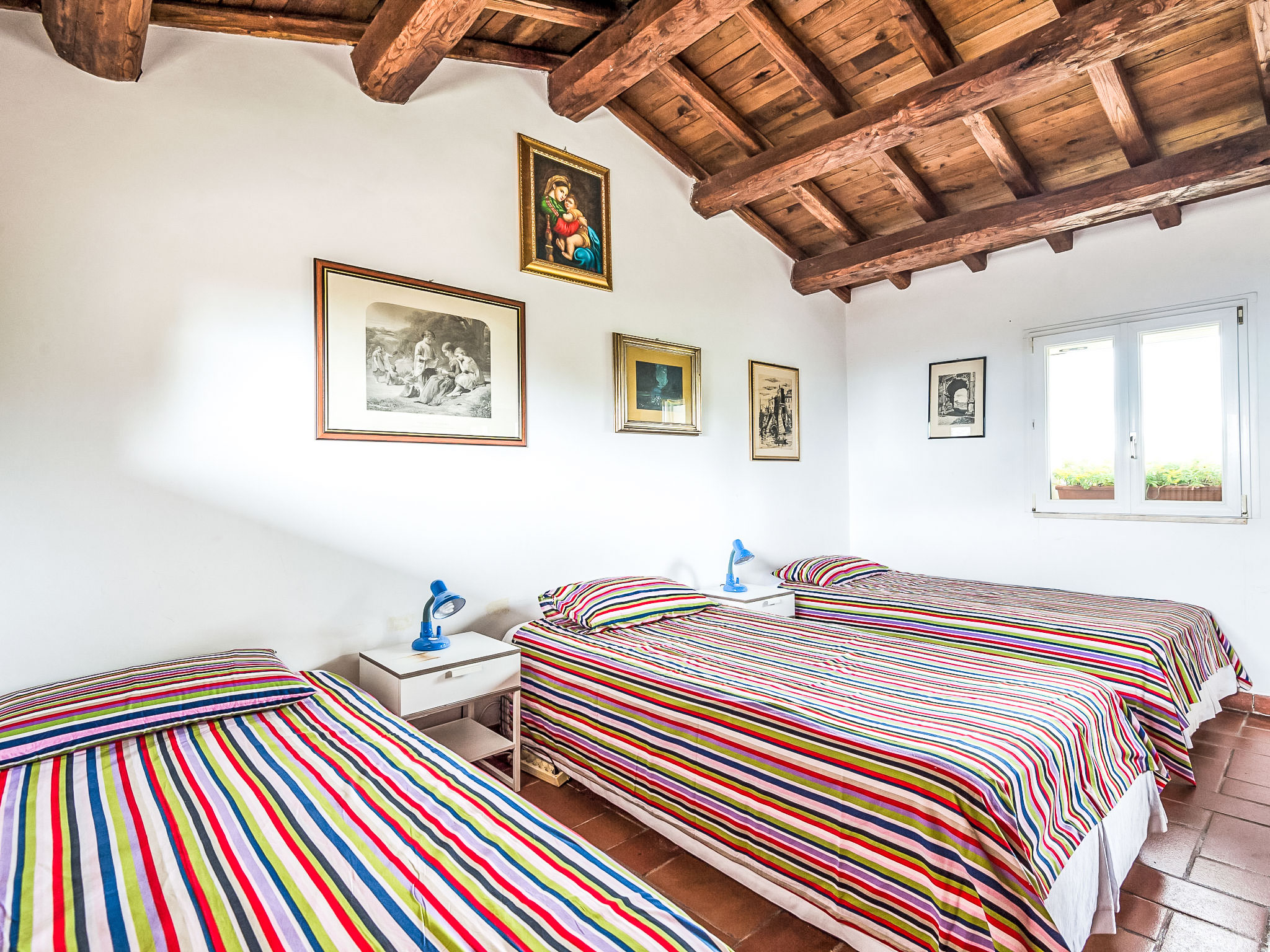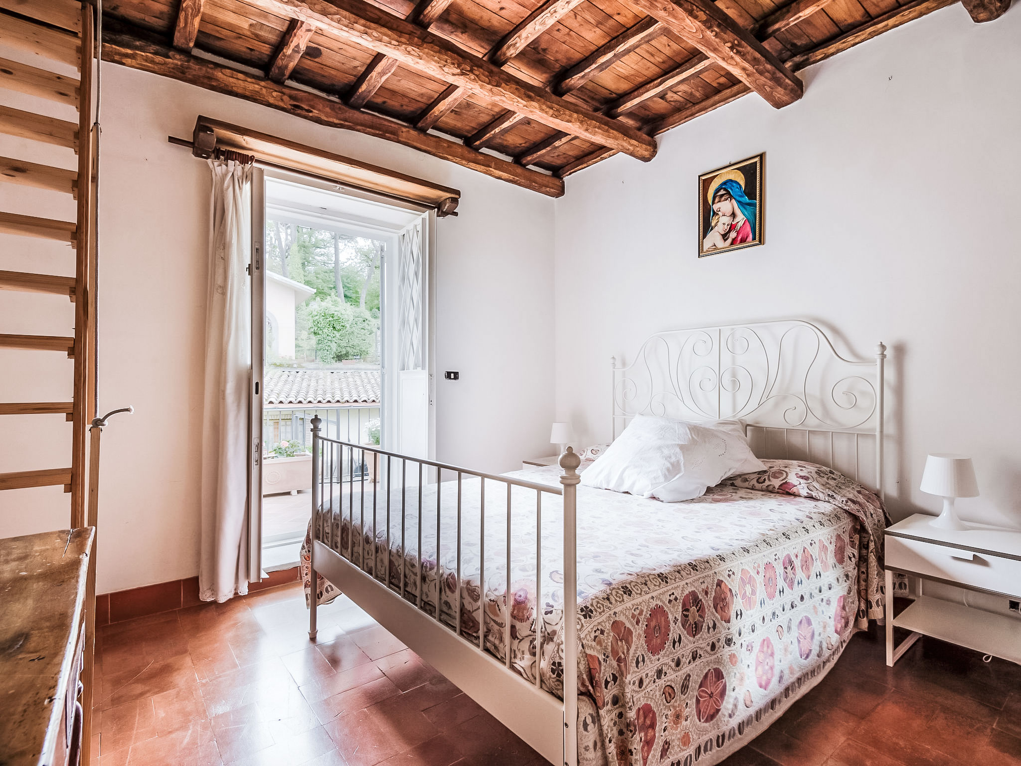 Zugang zum Pool und dem privaten Garten vom Balkon und über einen Fußweg über eine kleine Straße schöne, alleinstehende Villa "Vista da Rocca di Papa", auf 3 Stockwerken. Im Ort, 600 m vom Zentrum von Rocca Di Papa, ruhige, sonnige, erhöhte Lage im Villenviertel, 25 km vom Meer. Zur Alleinbenutzung: grosser Garten 4'000 m2 (eingezäunt) mit Rasen und Blumen, Teich, Schwimmbad (12 x 6 m, 110 - 220 cm tief, 15.05.-30.09.) mit Rollladenabdeckung. WC im Poolbereich, Poolhaus, Sitzplatz, Laube (10 m2), Terrasse, Gartenmöbel, Grill, Parkplatz (für 3 Autos) beim Haus. Lebensmittelgeschäft 600 m, Supermarkt 800 m, Restaurant 700 m, Bar 300 m. Nahe gelegene Sehenswürdigkeiten: Roma 30 km, Castel Gandolfo 8 km, Anzio 40 km, Lido di Ostia 40 km, Rainbow magic Land 30 km. Bekannte Seen in der Umgebung sind gut erreichbar: Lago di Albano 8 km, Lago di Nemi 11 km. Bitte beachten: Fahrzeug empfohlen. Jugendgruppen nur auf Anfrage. Der Besitzer akzeptiert keine Jugendgruppen. Der Besitzer wohnt auf dem gleichen Grundstück.