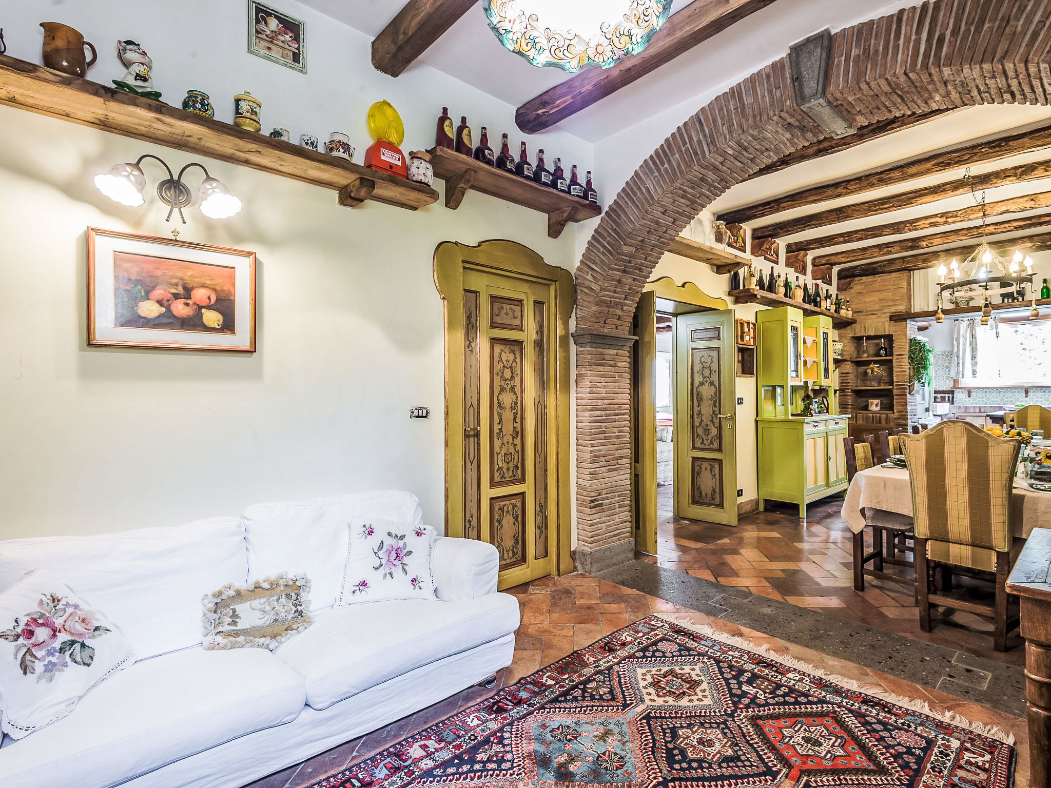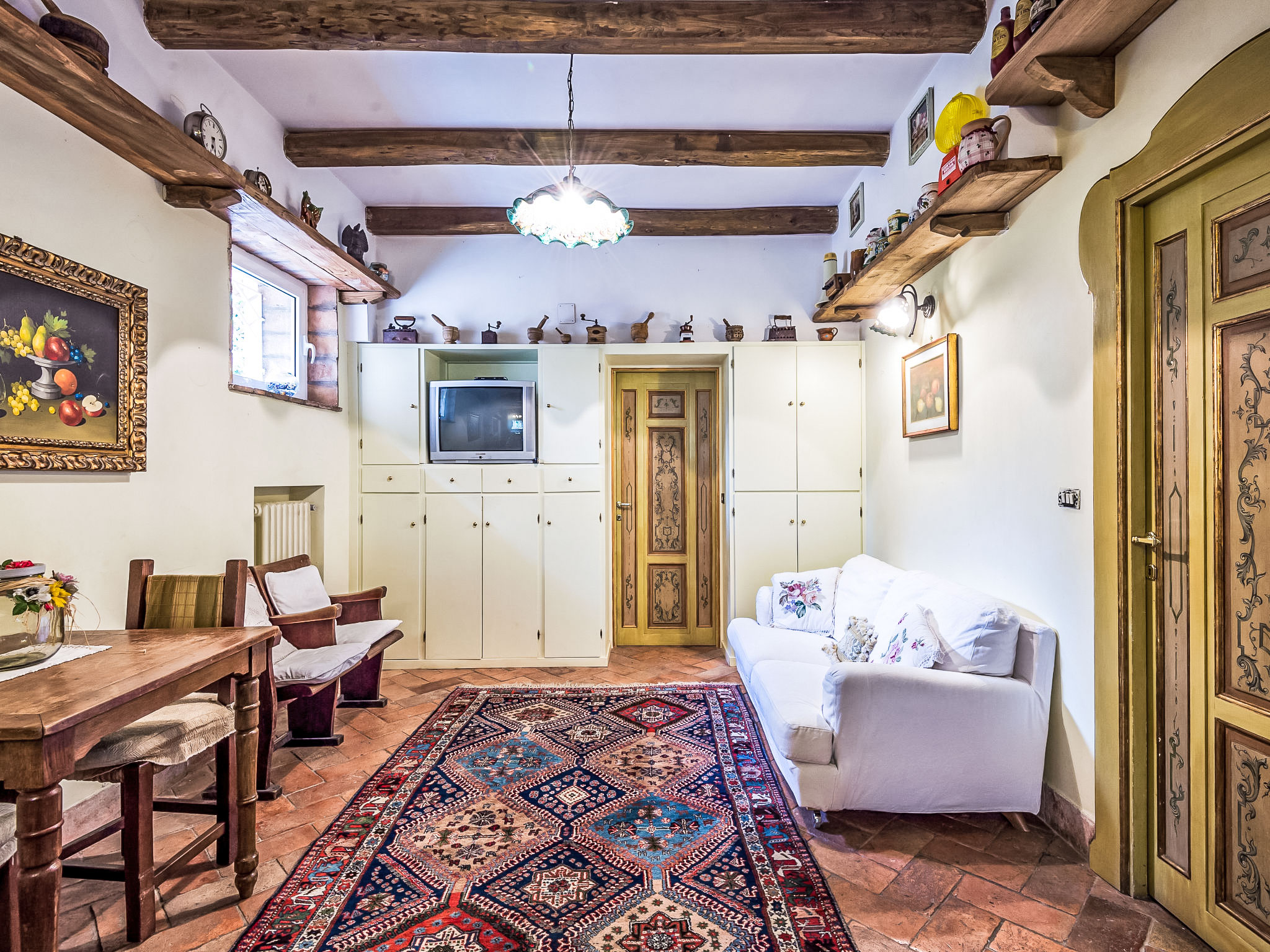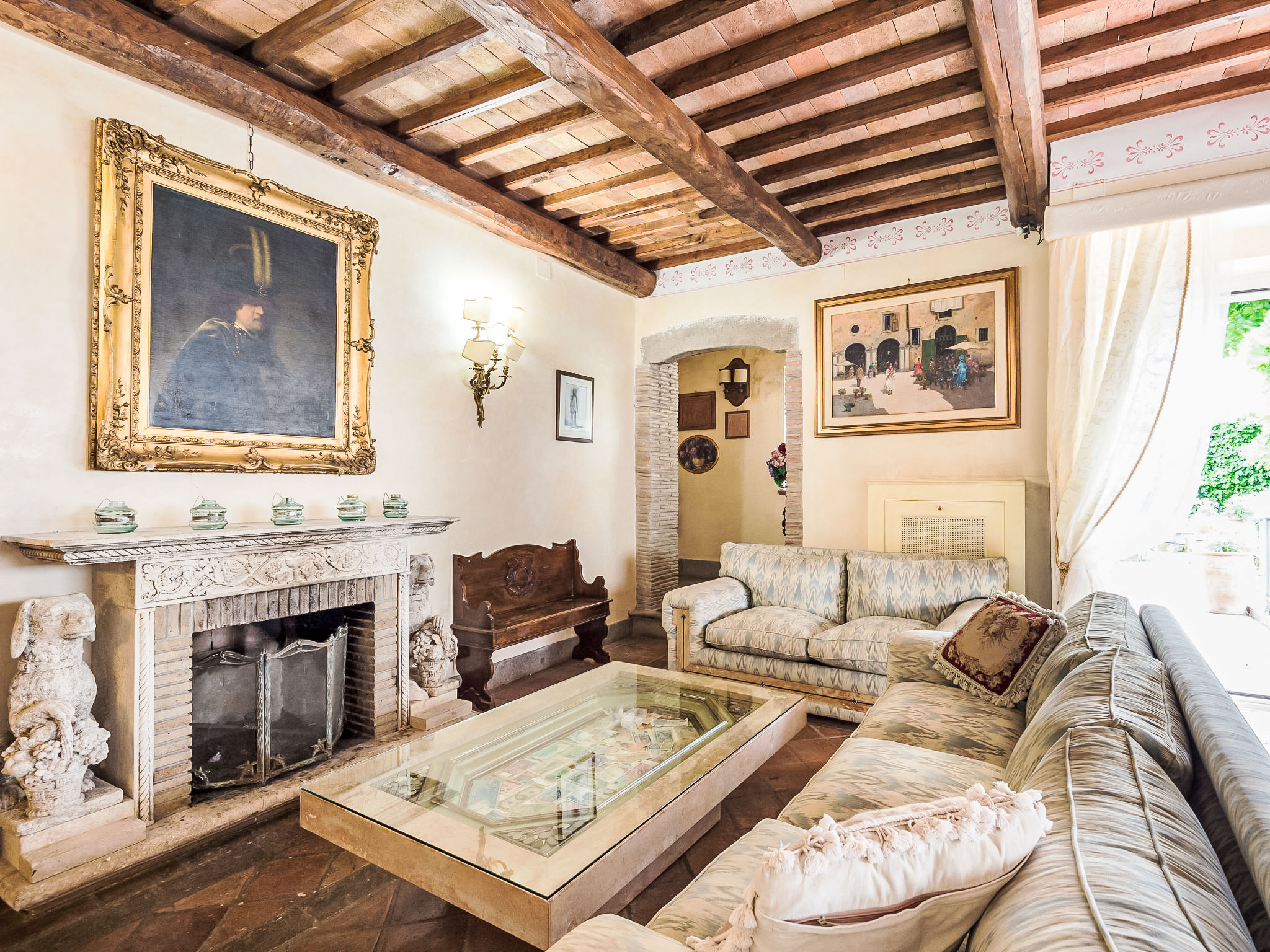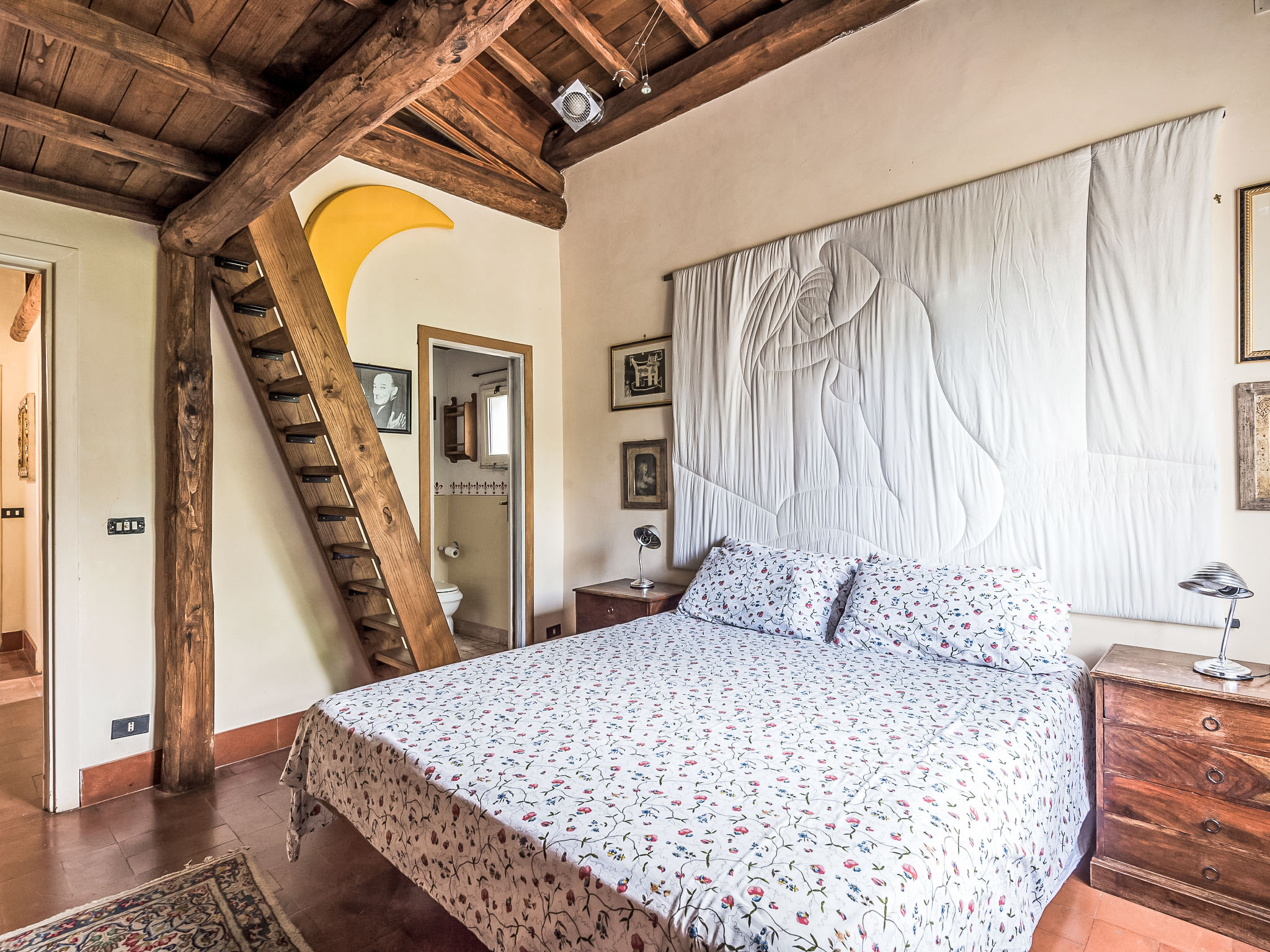 Zugang zum Pool und dem privaten Garten vom Balkon und über einen Fußweg über eine kleine Straße schöne, alleinstehende Villa "Vista da Rocca di Papa", auf 3 Stockwerken. Im Ort, 600 m vom Zentrum von Rocca Di Papa, ruhige, sonnige, erhöhte Lage im Villenviertel, 25 km vom Meer. Zur Alleinbenutzung: grosser Garten 4'000 m2 (eingezäunt) mit Rasen und Blumen, Teich, Schwimmbad (12 x 6 m, 110 - 220 cm tief, 15.05.-30.09.) mit Rollladenabdeckung. WC im Poolbereich, Poolhaus, Sitzplatz, Laube (10 m2), Terrasse, Gartenmöbel, Grill, Parkplatz (für 3 Autos) beim Haus. Lebensmittelgeschäft 600 m, Supermarkt 800 m, Restaurant 700 m, Bar 300 m. Nahe gelegene Sehenswürdigkeiten: Roma 30 km, Castel Gandolfo 8 km, Anzio 40 km, Lido di Ostia 40 km, Rainbow magic Land 30 km. Bekannte Seen in der Umgebung sind gut erreichbar: Lago di Albano 8 km, Lago di Nemi 11 km. Bitte beachten: Fahrzeug empfohlen. Jugendgruppen nur auf Anfrage. Der Besitzer akzeptiert keine Jugendgruppen. Der Besitzer wohnt auf dem gleichen Grundstück.