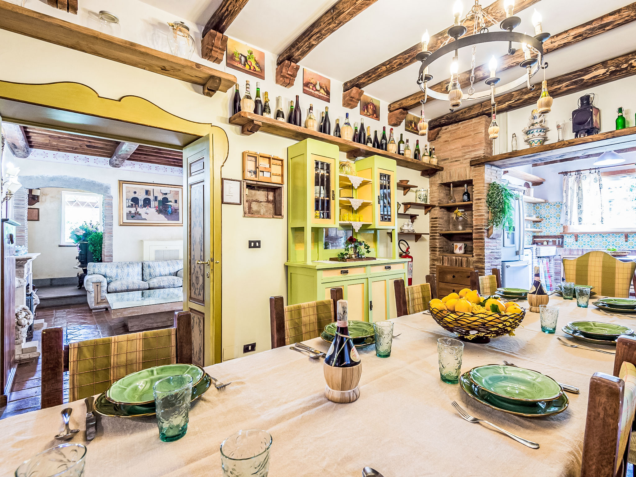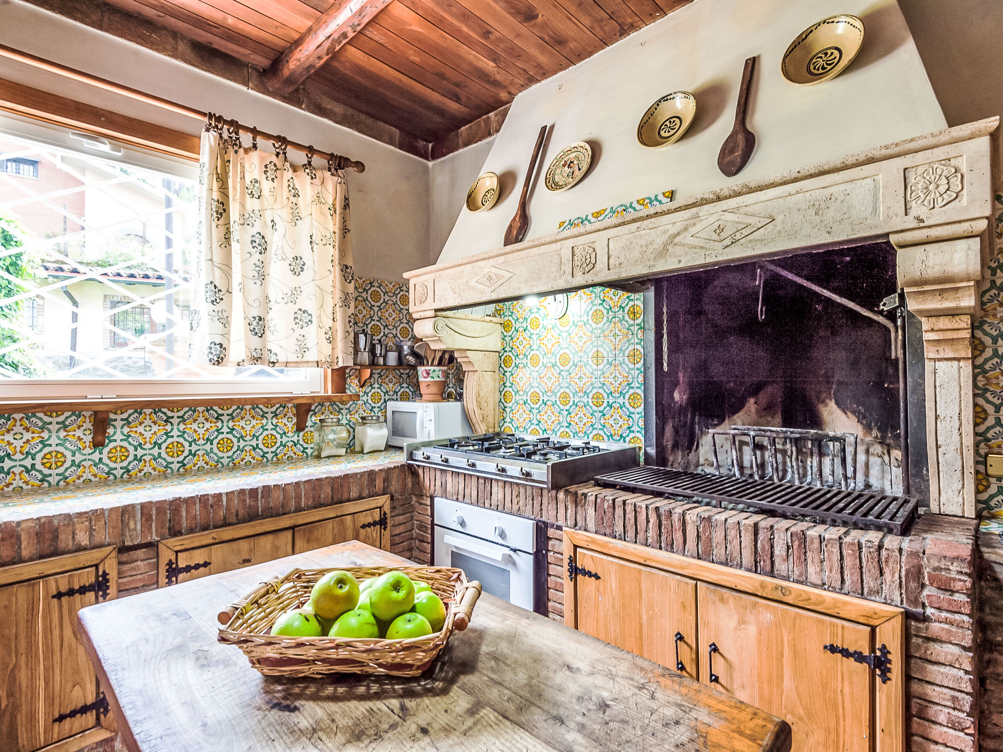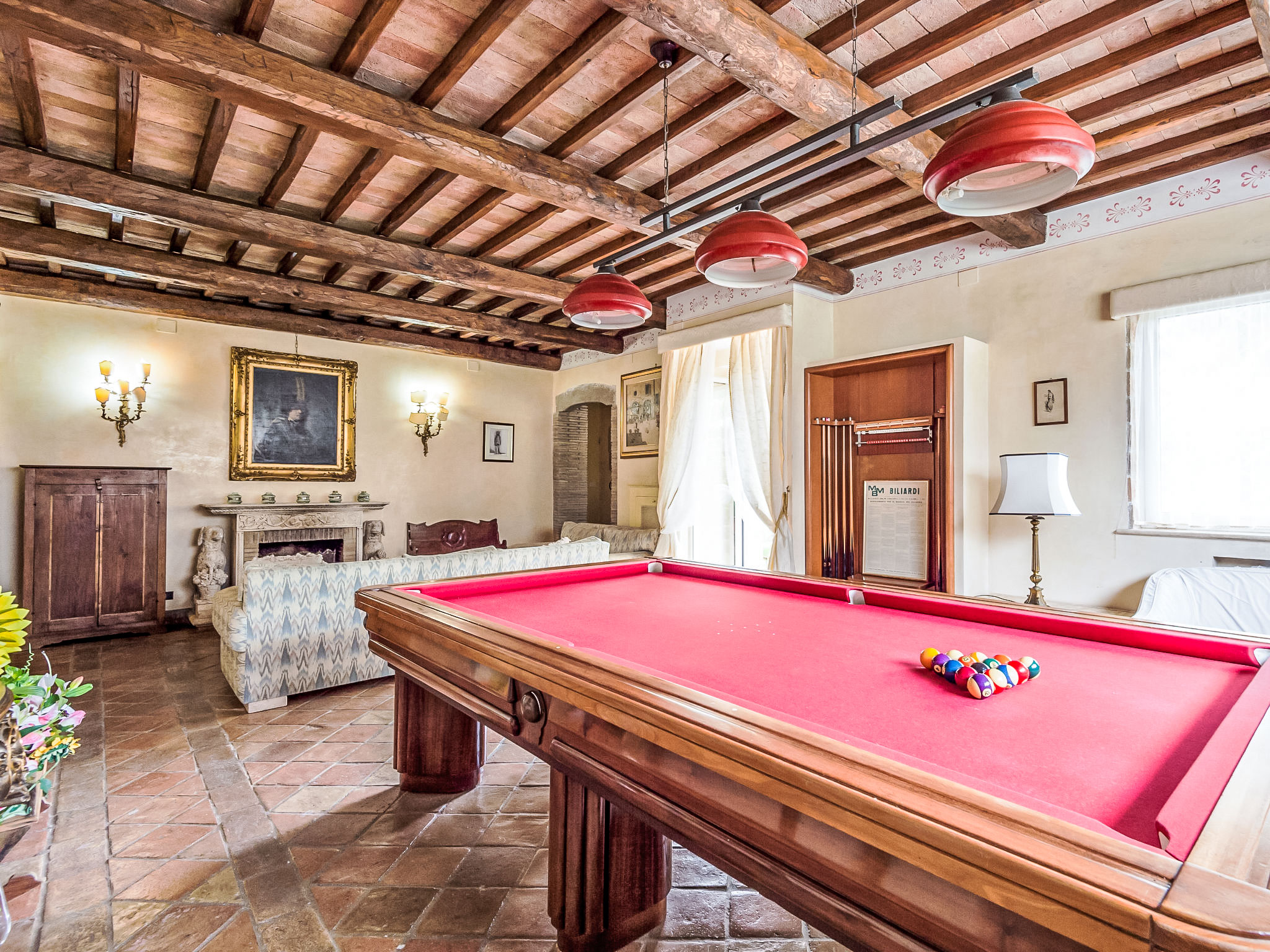 6-Zimmer-Villa 420 m2 auf 3 Stockwerken. Sehr komfortabel und geschmackvoll eingerichtet: Wohnzimmer mit offenem Kamin. Billardzimmer. Esszimmer. Grosse, offene Küche 30 m2 (5 Kochplatten, Backofen, Geschirrspüler, Mikrowelle, Tiefkühler) mit offenem Kamin, Esstisch und TV. Sep. WC. Obergeschoss: 1 Doppelzimmer mit Dusche/Bidet/WC. Ausgang zum Balkon. 1 grosses Zimmer mit 1 Doppelbett und Bad/Dusche/Bidet/WC. Ausgang zum Balkon. 1 Doppelzimmer. (geländerlose Treppe) abgeschrägte, offene Galerie mit 1 Bett. Dusche/Bidet/WC. 2. Obergeschoss: 1 grosses Zimmer mit Panoramafenster mit 3 Betten und Klimaanlage. Dusche/WC. Sehr schöne Panoramasicht auf das Tal. Zur Verfügung: Waschmaschine. Internet (Wireless LAN, gratis). 9199