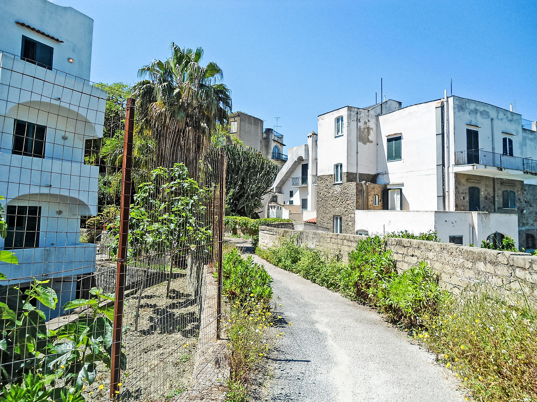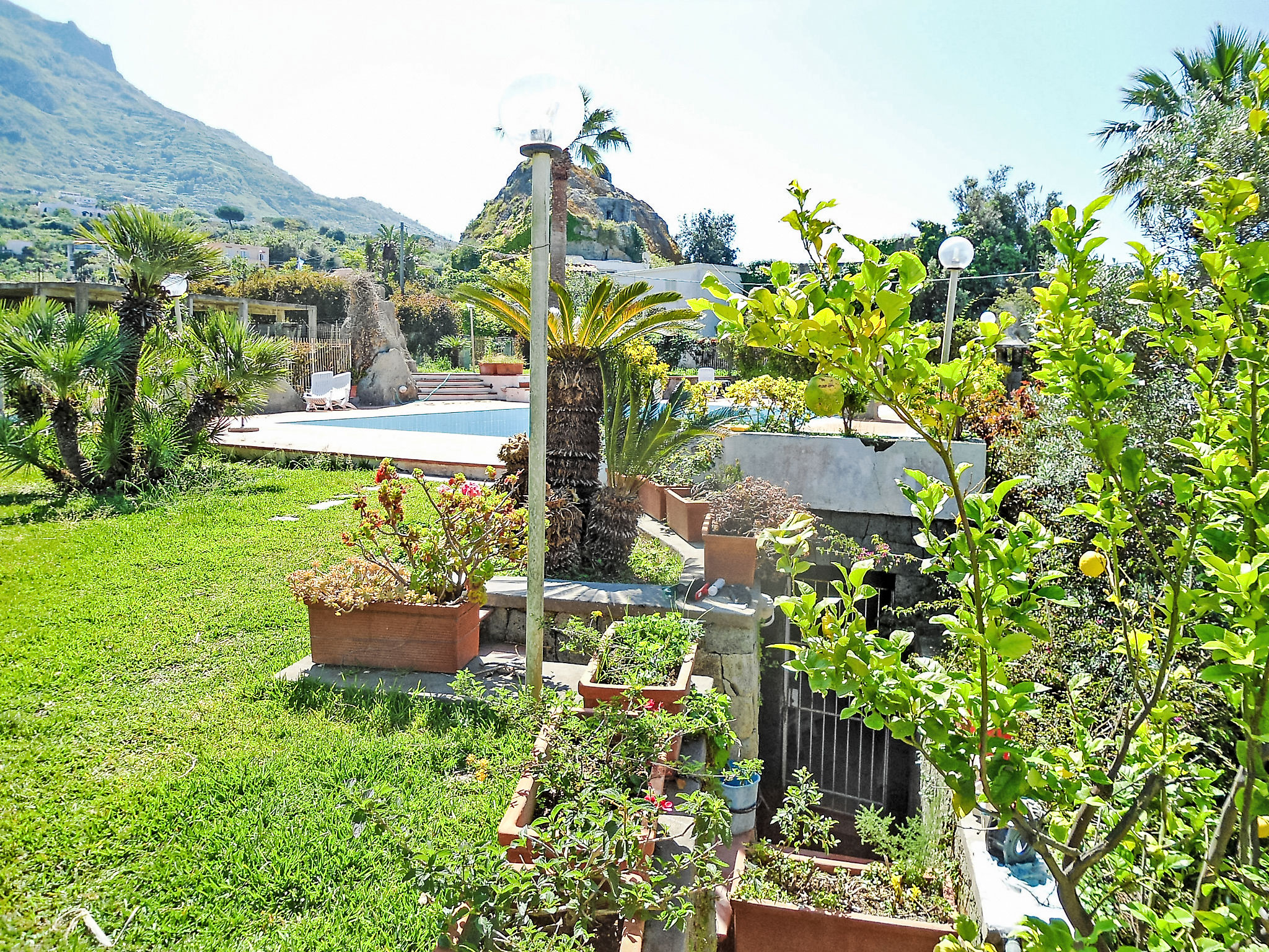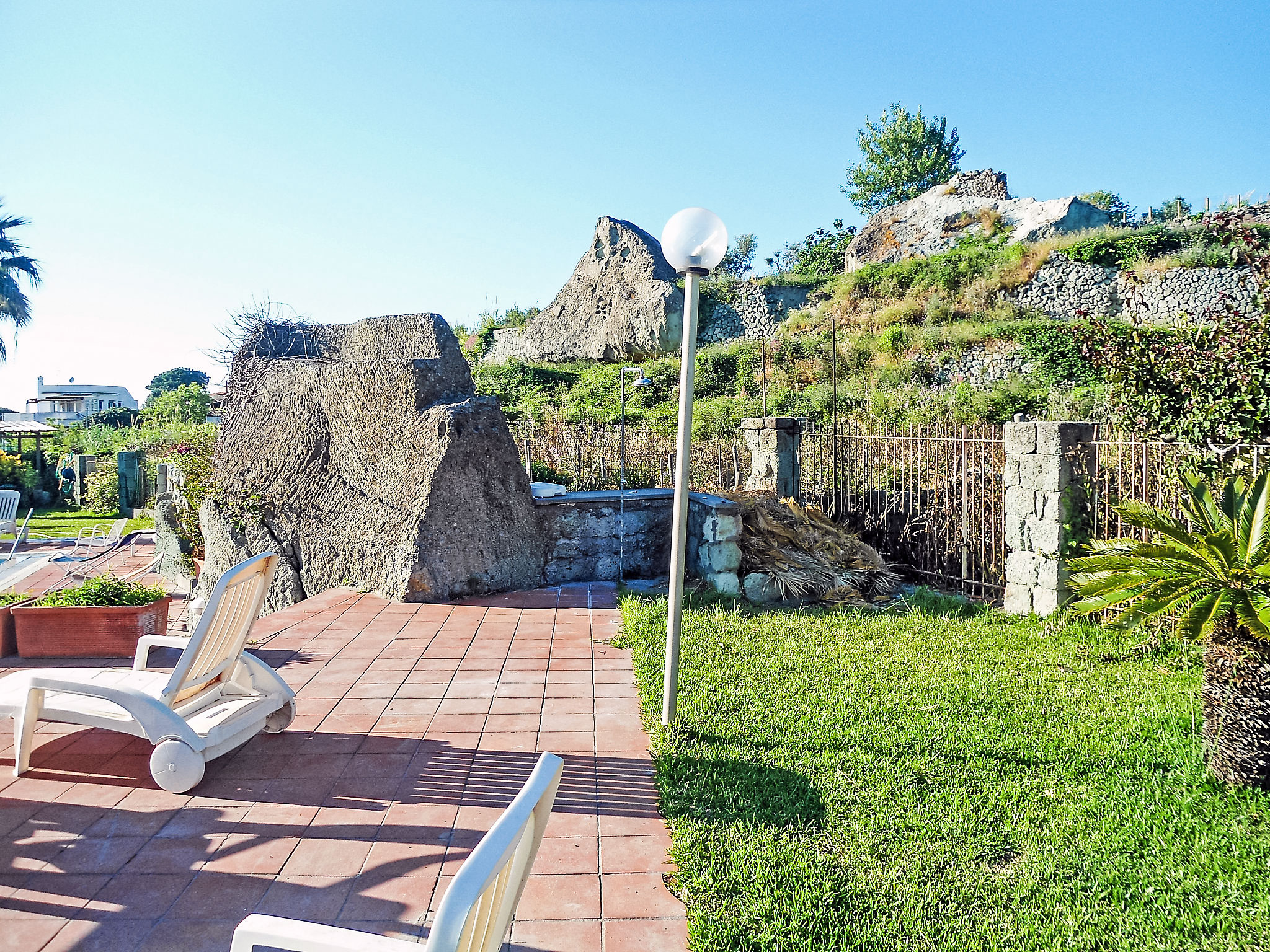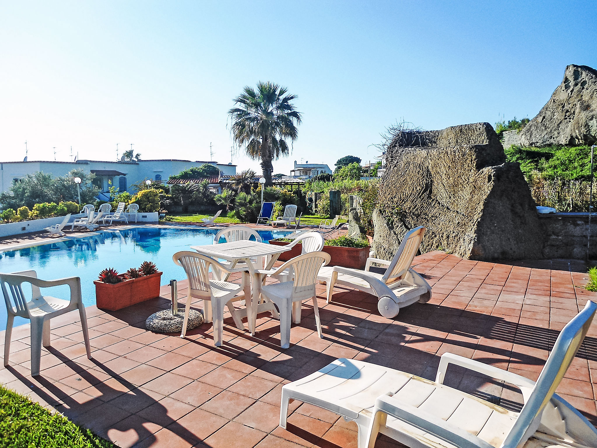 Forio: Schöne Feriensiedlung "La Roccia", umgeben von Bäumen und Wiesen. Im Ortsteil Cuotto, 1 km vom Zentrum von Forio, sonnige Lage in einem Wohnquartier, exzellente Lage: Absolut zentral und dennoch ruhig, 750 m vom Meer, 750 m vom Strand. Zur Mitbenutzung: Park (eingezäunt), grosser Garten (eingezäunt) Pflanzen und Blumen, Schwimmbad eingezäunt (5 x 7 m, saisonale Verfügbarkeit: 01.Jun.-15.Sep.). Aussendusche, Gartenmöbel. Im Hause: Wireless LAN. Wohnungsreinigung möglich (extra). Abholservice vom Flughafen (extra). 100 m lange schmale Zufahrt bis zum Haus. Öffentliche Parkplätze auf der Strasse extra. Supermarkt, Restaurant 200 m, Fähre "Forio" 3 km, Sandstrand "Cetara" 750 m, Kieselstrand 1 km, Thermalbad "Poseidon" 1 km. Nahe gelegene Sehenswürdigkeiten: Ischia 5 km, Napoli, Sorrento, Amalfi, Positano, Capri. Bitte beachten: Auto nicht empfehlenswert. Das Foto ist nur ein Hausbeispiel. Alle Häuser/Wohnungen sind individuell eingerichtet.