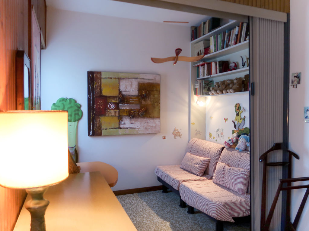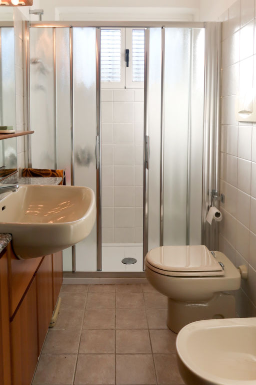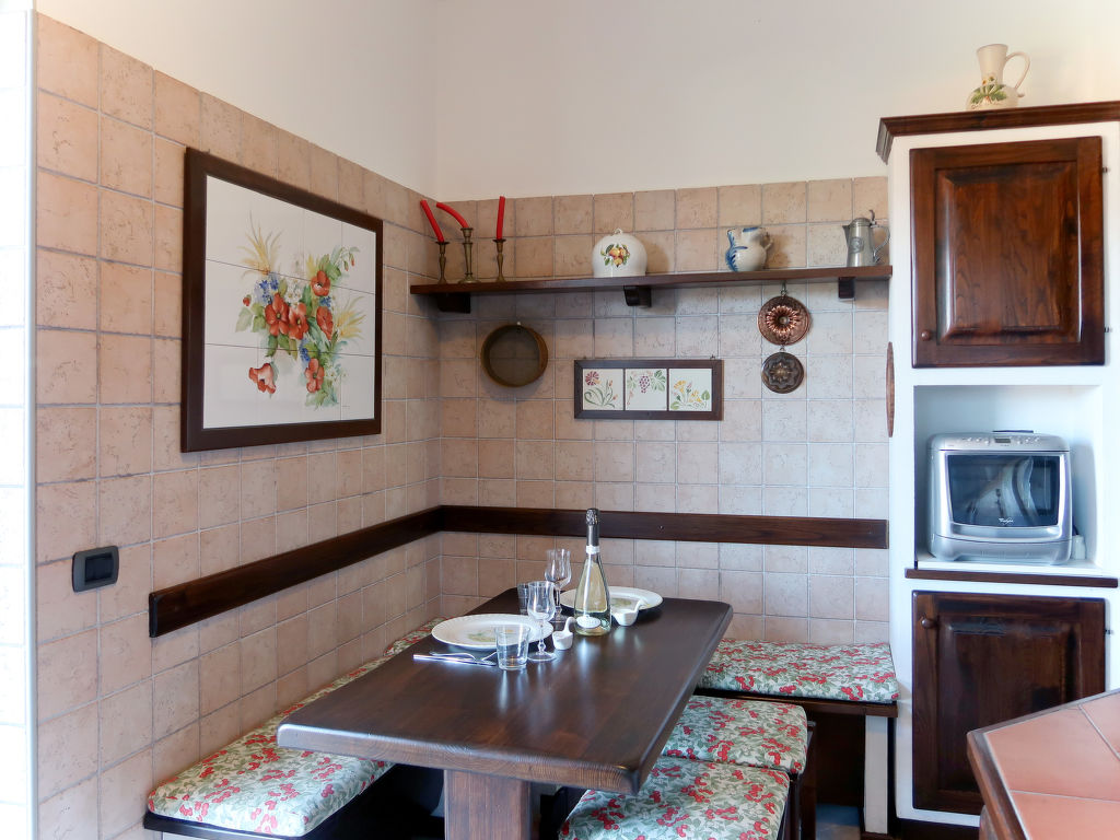 3-Zimmer-Haus, 2 Etagen, ca. 90 m². Zugang über Außentreppe in die 1. Etage: Wohnraum mit Sitzgruppe und Balkonausgang. Eine Stufe erhöht, durch offenen Rundbogen optisch abgeteiltes Esszimmer mit Balkonausgang. Küche (4 Flammen, Mini-Backofen, Geschirrspüler, Kühlschrank, Kaffeemaschine, Toaster) mit Essplatz für 4 Personen und Balkonausgang. 2 Schlafzimmer, jeweils mit franz. Bett (1,60 m breit), eines davon mit durch Falttür abgeteilter Bettcouch. Dusche/WC. Erdgeschoss: Dusche/WC (nur von außen zugänglich). CIR: 012045-CNI-00031