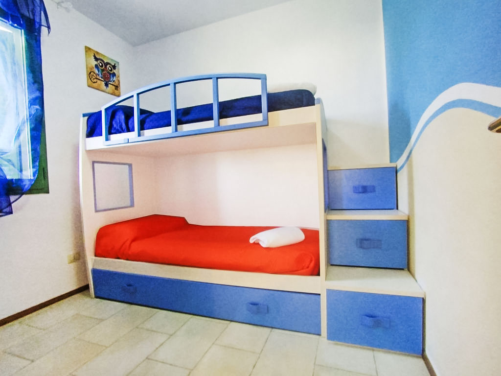 3-Zimmer-Reihenhaus 85 m2 auf 2 Stockwerken. Einfach und zweckmässig eingerichtet: Eingang. Obergeschoss: Wohn-/Esszimmer mit 1 Doppeldiwanbett und TV. Ausgang zur Terrasse. 1 Doppelzimmer. 1 Zimmer mit 1 x 2 Etagenbetten. Kochnische (4 Kochplatten, Backofen, Tiefkühler). Dusche/Bidet/WC. Terrassenmöbel. Sicht auf das Meer. Parkplatz. 1 Haustier/Hund erlaubt. LE07503191000003391