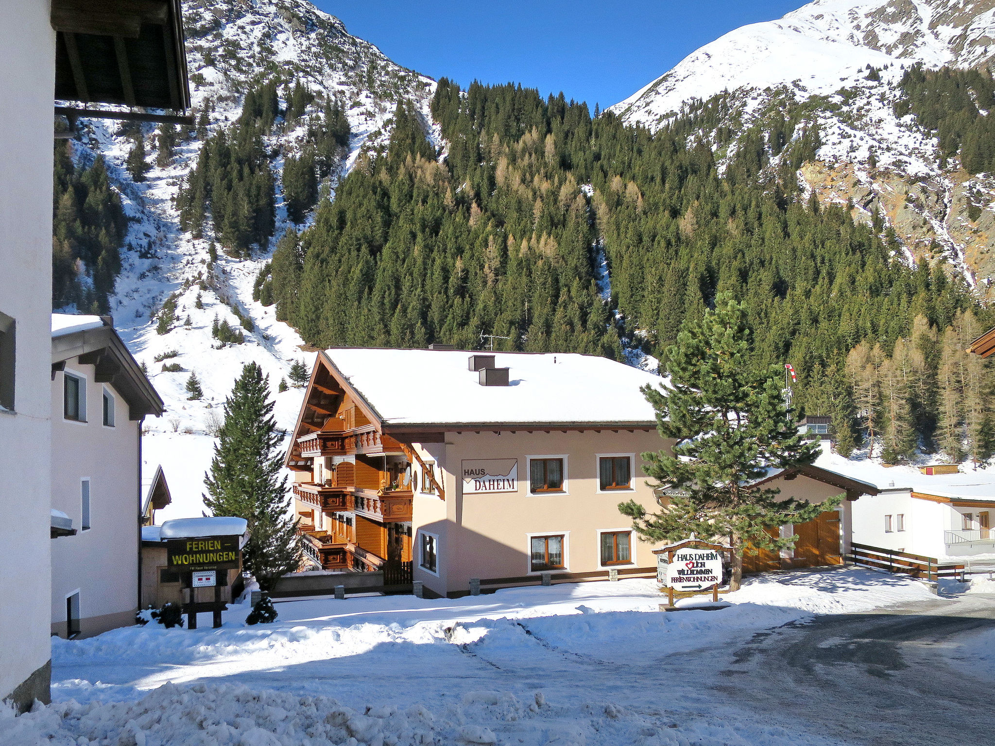 Kinderfreundliches Appartementhaus "Daheim". 6 Wohnungen im Ferienhaus. Im Ortsteil Plangeross, 9.5 km vom Zentrum von St. Leonhard im Pitztal, 27 km vom Zentrum von Wenns, 38 km vom Zentrum von Imst. Zur Mitbenutzung: Grundstück, Wiese. Gartenmöbel, Grill. Im Hause: Sauna (extra). Trampolin, Einstellraum für Fahrräder, Skiraum. Parkplatz auf dem Grundstück. Einkaufsgeschäft 2 km, Bahnstation "Bahnhof Ötztal" 44 km, Freibad 27 km. Bergbahn 3 km, Gondelbahn 2 km, Skibushaltestelle 150 m, Skischule 2 km, Langlaufloipe 50 m. Bekannte Skigebiete sind gut erreichbar: Rifflsee 2 km, Pitztaler Gletscher 9 km. Bitte beachten: Gratis Skibus. Der Besitzer wohnt im selben Haus.