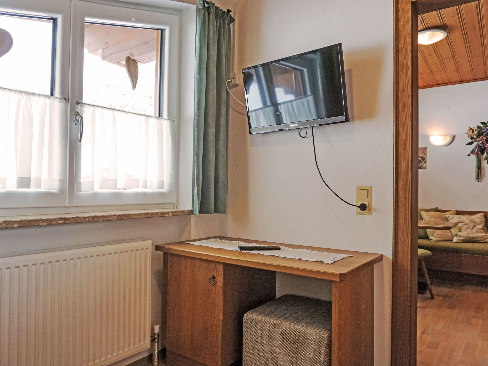 "Daheim – Talblick (PZT384)", 2-Zimmer-Wohnung 22 m2 im 3. Stock. Rustikal und gemütlich eingerichtet: Wohn-/Schlafzimmer mit 1 Diwanbett, Sat-TV und Radio. 1 kleines Doppelzimmer, ohne Fenster. Wohnküche (2 Kochplatten, Toaster, Wasserkocher, Mikrowelle, elektrische Kaffeemaschine) mit Essecke. Dusche/WC. Zur Verfügung: Kinderhochstuhl, Babybett. Internet (Wireless LAN, gratis). Bitte beachten: Nichtraucher-Unterkunft. Maximal 1 Haustier/Hund erlaubt. Bei Belegung mit weniger Personen als der maximalen Personenzahl stehen nicht alle Wohneinheiten zur Verfügung.