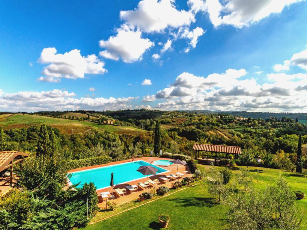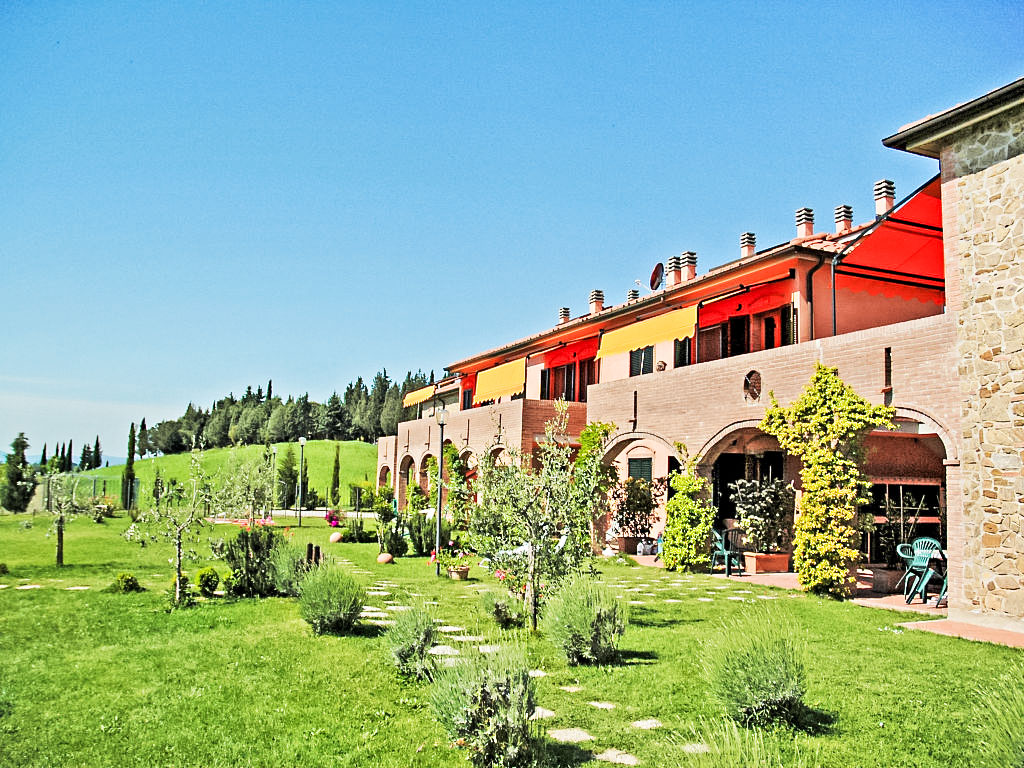 8 km von Montaione: Die Residenz I Calanchi liegt im Herzen der Toskana zwischen Florenz, Siena, Pisa, San Gimignano und Volterra und an Hügellage am Ortsrand von Sughera (Montaione). Umgeben von hohen Zypressen, Wiesen, Getreidefeldern, Olivenhainen und dem mediterranen Wald ist es ideal gelegen für alle, die Erholung suchen und Liebhaber von Meer, Bergen und Kunststädten sind. Die Feriensiedlung bietet insgesamt 16 separate Wohnungen an, wovon 13 in unserem Angebot sind. Den Gästen steht eine ausgestattete Laube zur Verfügung, um im Freien zu frühstücken. Mountain-Bike-Vermietung an Ort. Für Fahrrad- und Wander-Begeisterte gibt es ein weitverzweigtes Wegnetz. Zahlreiche Restaurants in der Gegend. Residenz "I Calanchi", 341 m.ü.M.. 25 km vom Zentrum von S. Gimignano, Certaldo, 30 km vom Zentrum von Volterra, 50 km vom Zentrum von Firenze, Pisa. Zur Mitbenutzung: Garten, Schwimmbad (16 x 8 m, 150 - 150 cm tief, saisonale Verfügbarkeit: 09.Apr.-15.Okt.). Kinderbecken, Aussendusche, Tischtennis, Boccia, Volleyballfeld, Terrasse, Gartenmöbel, Grill. Im Hause: Empfang, Internetzugang (alles inkl.), Waschmaschine (extra), Heizung vor Ort zu zahlen (01.11.-15.04.), Heizung nur verfügbar von 01.11. bis 15.04.. Brötchenservice auf Anfrage (extra). Parkplatz beim Haus. Lebensmittelgeschäft 3 km, Supermarkt 8 km, Restaurant 3 km, Bar 3 km, Bahnstation "Castelfiorentino" 15 km. Golfplatz 10 km, Reitstall 2 km. Nahe gelegene Sehenswürdigkeiten: Pisa 57 km, Volterra 35 km, Firenze 62 km, Lucca 57 km, Siena 67 km, San Gimignano 25 km.