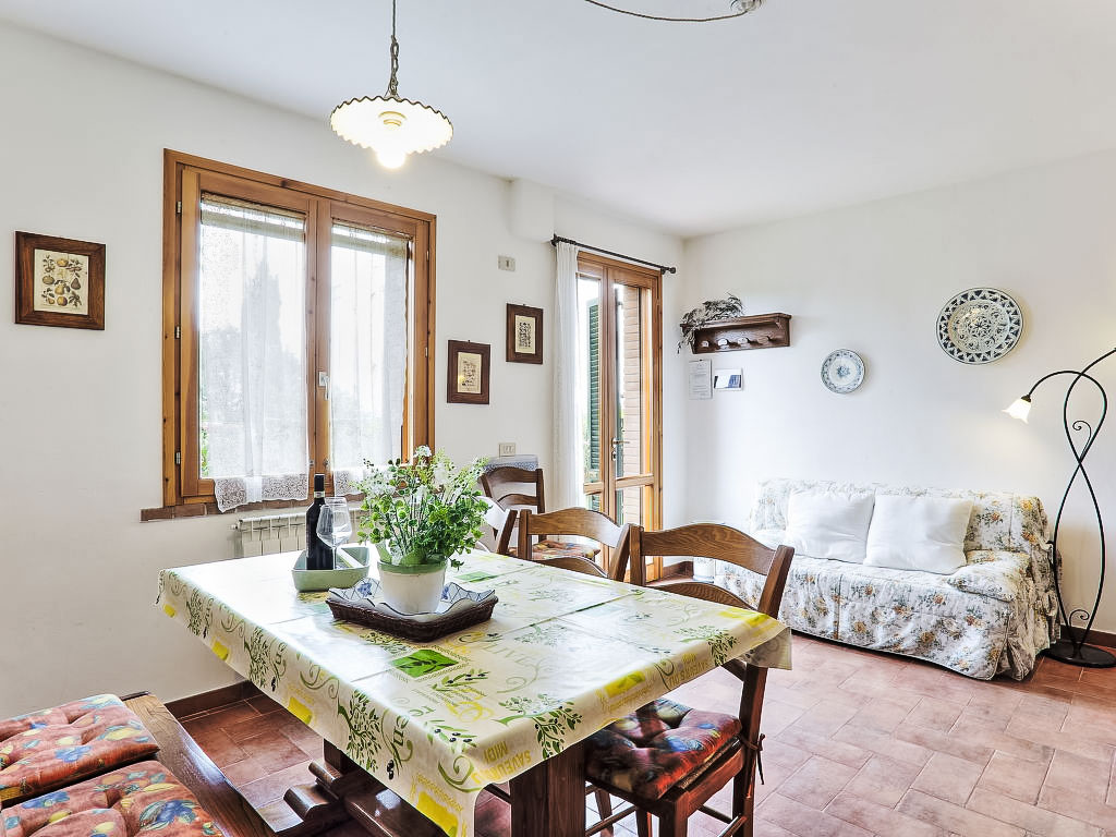 8 km von Montaione: Die Residenz I Calanchi liegt im Herzen der Toskana zwischen Florenz, Siena, Pisa, San Gimignano und Volterra und an Hügellage am Ortsrand von Sughera (Montaione). Umgeben von hohen Zypressen, Wiesen, Getreidefeldern, Olivenhainen und dem mediterranen Wald ist es ideal gelegen für alle, die Erholung suchen und Liebhaber von Meer, Bergen und Kunststädten sind. Die Feriensiedlung bietet insgesamt 16 separate Wohnungen an, wovon 13 in unserem Angebot sind. Den Gästen steht eine ausgestattete Laube zur Verfügung, um im Freien zu frühstücken. Mountain-Bike-Vermietung an Ort. Für Fahrrad- und Wander-Begeisterte gibt es ein weitverzweigtes Wegnetz. Zahlreiche Restaurants in der Gegend. Residenz "I Calanchi", 341 m.ü.M.. 25 km vom Zentrum von S. Gimignano, Certaldo, 30 km vom Zentrum von Volterra, 50 km vom Zentrum von Firenze, Pisa. Zur Mitbenutzung: Garten, Schwimmbad (16 x 8 m, 150 - 150 cm tief, saisonale Verfügbarkeit: 09.Apr.-15.Okt.). Kinderbecken, Aussendusche, Tischtennis, Boccia, Volleyballfeld, Terrasse, Gartenmöbel, Grill. Im Hause: Empfang, Internetzugang (alles inkl.), Waschmaschine (extra), Heizung vor Ort zu zahlen (01.11.-15.04.), Heizung nur verfügbar von 01.11. bis 15.04.. Brötchenservice auf Anfrage (extra). Parkplatz beim Haus. Lebensmittelgeschäft 3 km, Supermarkt 8 km, Restaurant 3 km, Bar 3 km, Bahnstation "Castelfiorentino" 15 km. Golfplatz 10 km, Reitstall 2 km. Nahe gelegene Sehenswürdigkeiten: Pisa 57 km, Volterra 35 km, Firenze 62 km, Lucca 57 km, Siena 67 km, San Gimignano 25 km.