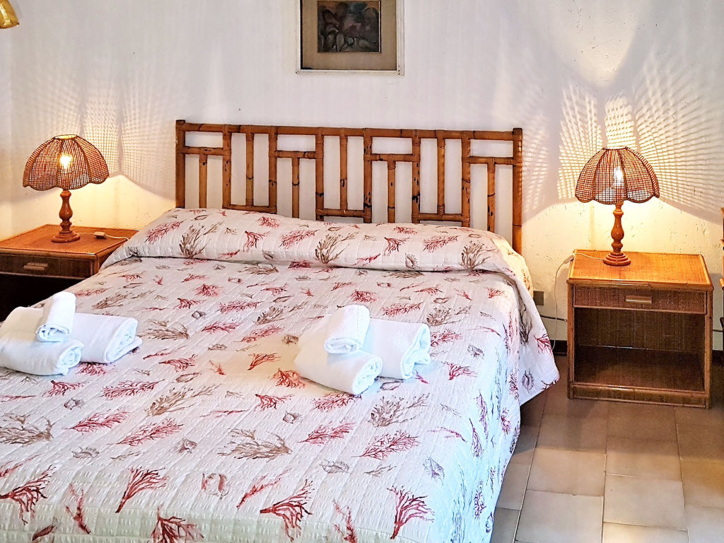 "Baia de Bahas (GMA152)", 3-Zimmer-Wohnung 46 bis 54 m2. Zweckmässig eingerichtet: Wohn-/Schlafzimmer mit 2 Schlafmöglichkeiten, Esstisch und TV. 1 Zimmer mit 1 Doppelbett. 1 Zimmer mit 2 Schlafmöglichkeiten. Kleine Kochnische (1 Kochplatte, 2 Flammen). Dusche/WC. Keine Heizmöglichkeit. Balkon oder Terrasse. Balkonmöbel. Zur Verfügung: Babybett bis 2 Jahre. 1 Haustier/Hund erlaubt.