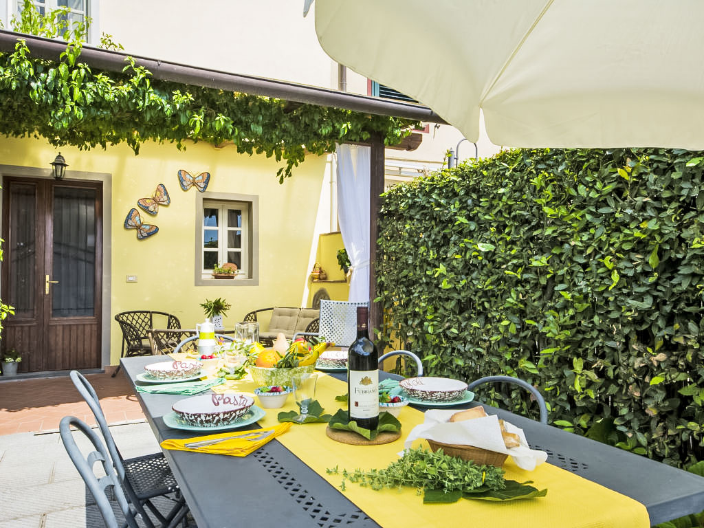 Kinderfreundliches, gemütliches, rustikales Reihenhaus "Casa di Nena", 300 m.ü.M.. Mietobjekt bestehend aus Haupt- und Nebengebäude, im Weiler Salapreti, 3 km vom Zentrum von Camaiore, 11 km vom Zentrum von Viareggio, ruhige, sonnige, erhöhte Lage auf einem Hügel, 11 km vom Meer. Zur Alleinbenutzung: Garten 18 m2 (eingezäunt) mit Rasen, Schwimmbad (8 x 4 m, 150 cm tief, 30.04.-01.10.). Terrasse (12 m2), Gartenmöbel, Grill. Im Hause: Waschmaschine, Heizung vor Ort zu zahlen, Heizung nur verfügbar von 01.11. bis 15.04.. Parkplatz (für 3 Autos) beim Haus. Lebensmittelgeschäft 4 km, Supermarkt 3 km, Restaurant 3 km, Sandstrand 11 km. Nahe gelegene Sehenswürdigkeiten: Lucca 28 km, Pisa 48 km, Firenze 109 km. Bitte beachten: Fahrzeug empfohlen.