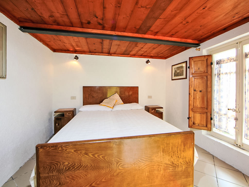 "Casa di Nena", 5-Zimmer-Haus 80 m2 auf 2 Stockwerken. Schön und gemütlich eingerichtet: Wohn-/Esszimmer mit offenem Kamin, Essecke und TV. Ausgang zur Terrasse. 1 Doppelzimmer. Offene Küche (4 Kochplatten, Backofen, Mikrowelle, Tiefkühler). Sep. WC. Obergeschoss: 2 Doppelzimmer. 1 Zimmer mit 1 Bett. Bad/Bidet/WC. Garten 18 m2, Laube 12 m2. Terrassenmöbel, Gartengrill. Fernsicht auf das Tal. Zur Verfügung: Waschmaschine.