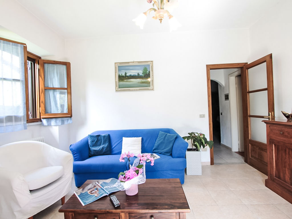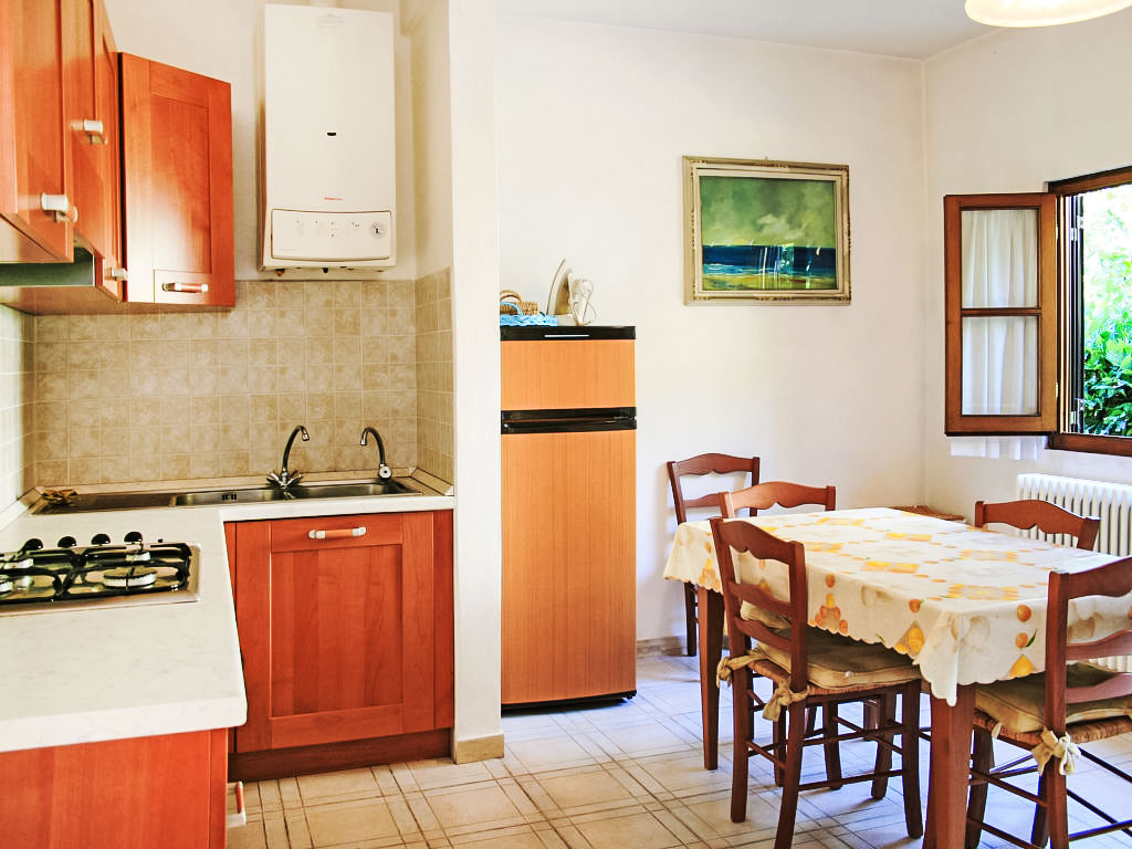 "Eliana", 3-Zimmer-Villa 70 m2, im Erdgeschoss. Objekt geeignet für 2 Erwachsene + 2 Kinder. Einfach und zweckmässig eingerichtet: Wohnzimmer mit TV, Flachbildschirm und DVD. Ausgang zum Garten. 1 Doppelzimmer mit Klimaanlage. 1 Zimmer mit 2 Betten und Klimaanlage. Küche (4 Kochplatten, Backofen, Geschirrspüler, Mikrowelle, Tiefkühler) mit Esstisch. Dusche/Bidet/WC. Heizung (extra). Terrassenmöbel. Zur Verfügung: Waschmaschine, Safe, Bügeleisen, Haartrockner. Internet (Wireless LAN, gratis). Die Betten sind bei Ankunft bezogen.