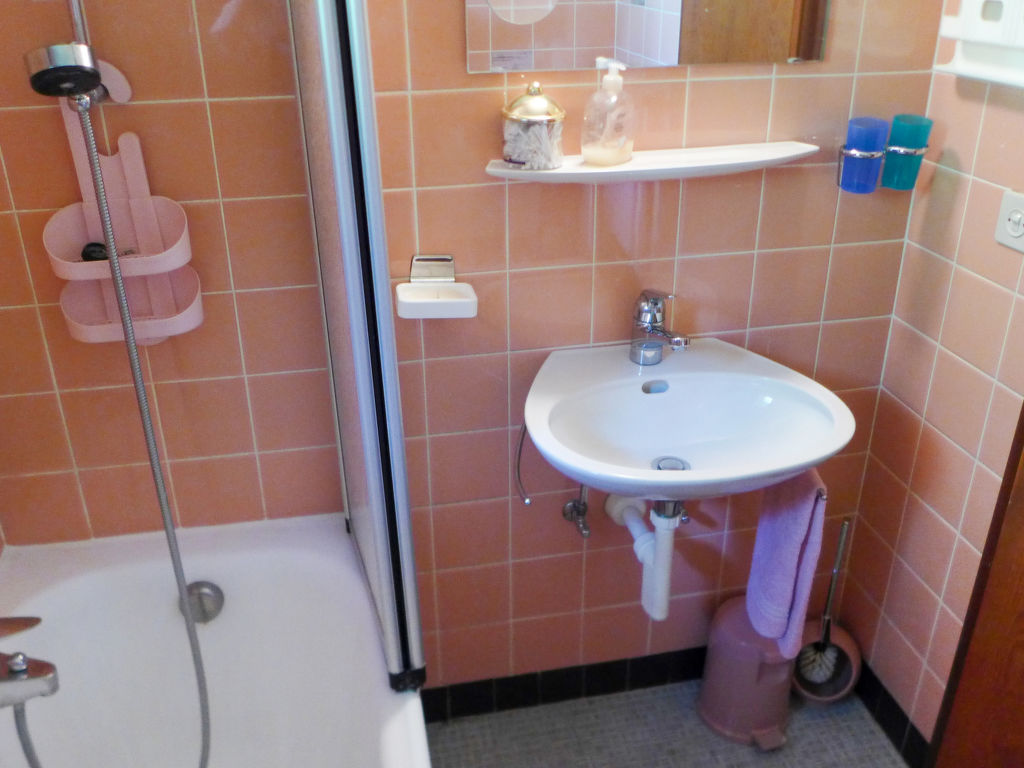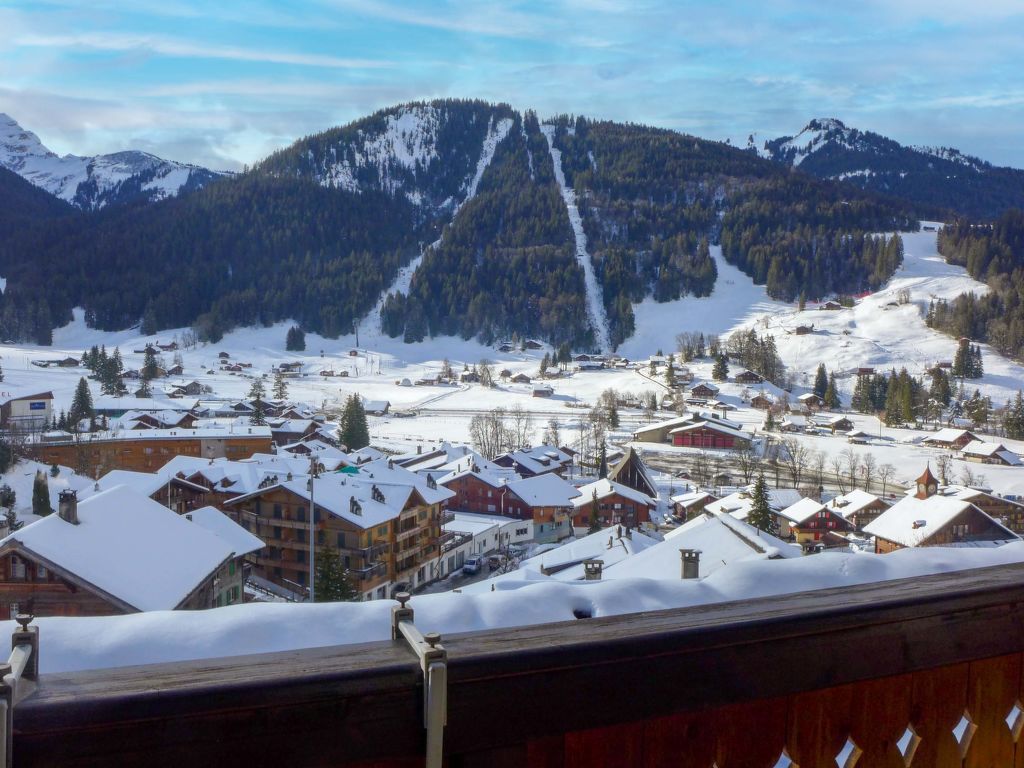"Bel Air", 3-Zimmer-Wohnung 75 m2 auf 2 Stockwerken. Objekt geeignet für 2 Erwachsene + 2 Kinder. Zweckmässig und gemütlich eingerichtet: Wohn-/Esszimmer mit TV. Ausgang zum Balkon. Kochnische (3 Kochplatten, Backofen, Toaster, Wasserkocher, Mikrowelle, elektrische Kaffeemaschine, Racletteofen, Fondue Set (Käse)). Sep. WC. Obergeschoss: 1 Zimmer mit 2 Betten (90 cm, Länge 200 cm). 1 Kinderzimmer mit 1 x 2 Etagenbetten (90 cm, Länge 200 cm). Bad/WC. Teppichboden. Balkon 5 m2. Balkonmöbel, Liegestühle (2). Herrliche Sicht auf die Berge, die Skipiste, die Landschaft und die Ortschaft. Zur Verfügung: Babybett bis 2 Jahre. Internet (Wireless LAN). Garage Nr. 6. Bitte beachten: Nichtraucher-Unterkunft. Maximal 1 Haustier/Hund erlaubt.