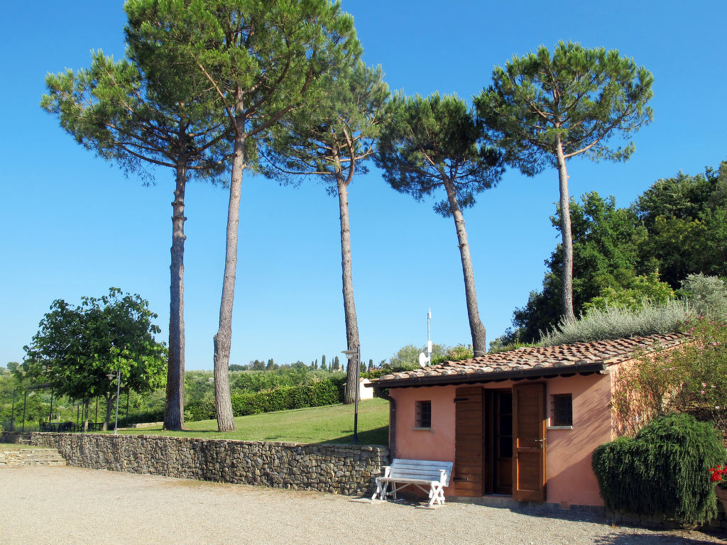 Landsitz "Francigena", umgeben von Bäumen und Feldern. 9 Wohnungen in der Residenz. 6 km vom Zentrum von Castelfiorentino, 3 km vom Zentrum von Castelnuovo d'Elsa, 30 km vom Zentrum von San Gimignano, 100 km vom Meer. Zur Mitbenutzung: Grundstück 20'000 m2, Garten mit Rasen und Bäumen, Schwimmbad (15 x 9 m, 100 - 140 cm tief, saisonale Verfügbarkeit: 01.Apr.-31.Okt.). Aussendusche, Terrasse, Gartenmöbel, Grill. Im Hause: Waschmaschine, Wäschetrockner (zur Mitbenutzung, extra). Parkplatz (für 12 Autos, überdacht) auf dem Grundstück. Einkaufsgeschäft 3 km, Supermarkt 6 km, Bahnstation "Castelfiorentino" 6 km, Sandstrand "Cecina Mare" 100 km. Bitte beachten: Fahrzeug empfohlen.