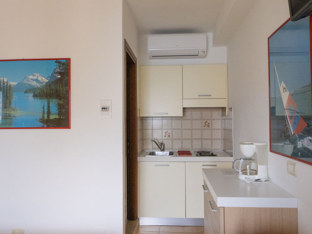 "Studio", 1-Zimmer-Wohnung 18 m2, im Erdgeschoss. Zweckmässig eingerichtet: Wohn-/Schlafzimmer mit 1 Doppelbett, Esstisch und Sat-TV. Offene Küche (2 Kochplatten, elektrische Kaffeemaschine). Dusche/WC. G-Heizung. Terrasse. Terrassenmöbel. Sicht auf den See. Zur Verfügung: Babybett (extra), Haartrockner. Internet (Wireless LAN, gratis). Bitte beachten: Nichtraucher-Unterkunft.