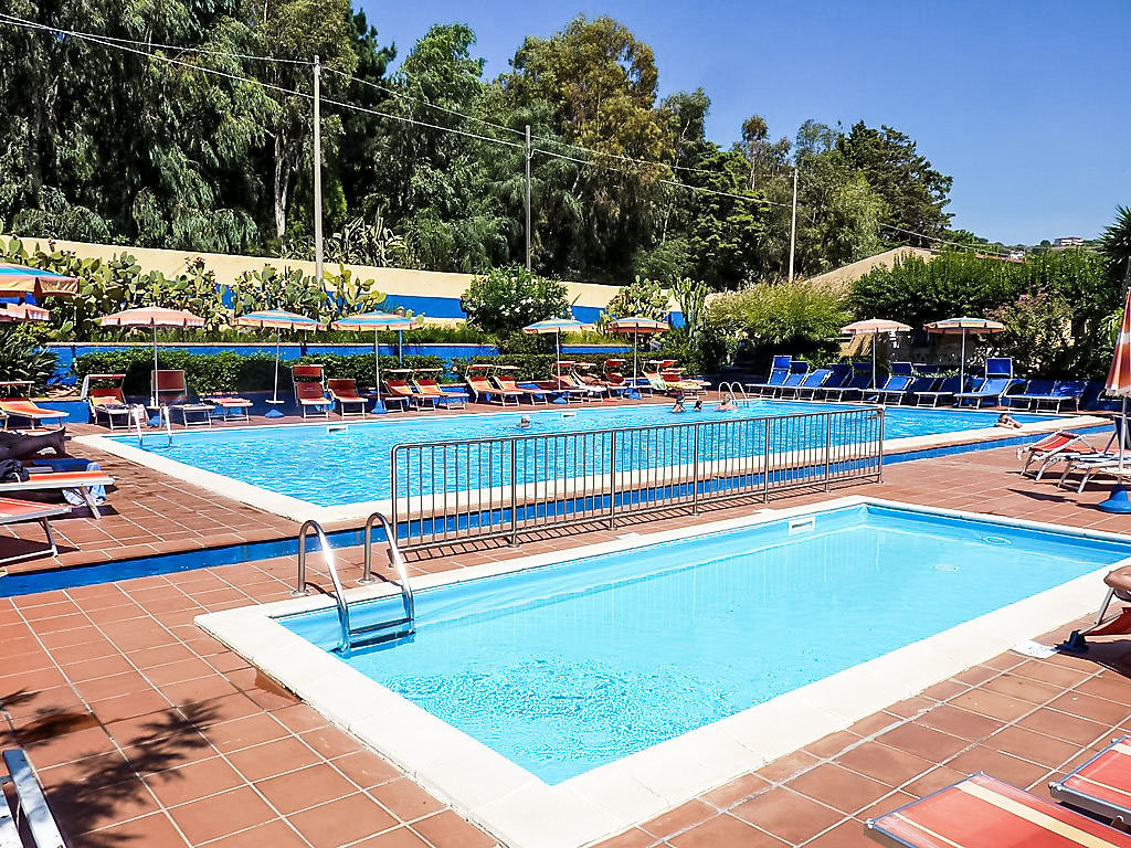 San Nicolò di Ricadi 9 km von Tropea: Gemütliches, einfaches Feriendorf "Esmeraldo". 60 Wohnungen in der Residenz. Im Bezirk Contrada Grotticelle, sonnige Lage, 350 m vom Meer, 350 m vom Strand, direkter Zugang zum Strand. Zur Mitbenutzung: Garten Pflanzen und Bäumen, Schwimmbad (18 x 9 m, 100 - 140 cm tief, saisonale Verfügbarkeit: 01.Mai.-07.Nov. Öffnungszeiten Schwimmbad: 09:30-13:30 und 14:30-19:00). Dusche/WC im Poolbereich, Kinderbecken, Aussendusche, Tennis, Tischtennis. In der Anlage: Empfang, Restaurant, Bar, Frühstücksraum, Aufenthaltsraum mit TV, Wireless LAN (alles extra), Fahrradverleih. Wäschewechsel (zusätzlich extra). Handtuchwechsel (zusätzlich extra). Wohnungsreinigung möglich (extra). Frühstück Vollpension Halbpension auf Anfrage (extra). Abholservice vom Flughafen (extra). Parkplatz. Einkaufsgeschäft, Lebensmittelgeschäft 200 m, Supermarkt 2 km, Restaurant, Bar 300 m, Bushaltestelle "Grotticelle / Stella Marina" 10 m, Bahnstation "Ricadi" 2 km, Sandstrand "Grotticelle" 350 m. Nahe gelegene Sehenswürdigkeiten: Tropea 9 km. Bitte beachten: kein Fahrstuhl vorhanden. Animation in der Saison. Geeignet für Familien. Es kann auf Anfrage ein Transfer ab Flughafen zum Ferienobjekt organisiert werden. Be- und Entladen am Ferienhaus möglich. Das Foto ist nur ein Hausbeispiel. In diesem Haus sind weitere Ferienwohnungen mietbar. In dieser Anlage zusätzlich mietbar: 60 Häuser. Die Mietobjekte können sich in Wohnfläche, Raumaufteilung, Ausstattung und Einrichtung unterscheiden.