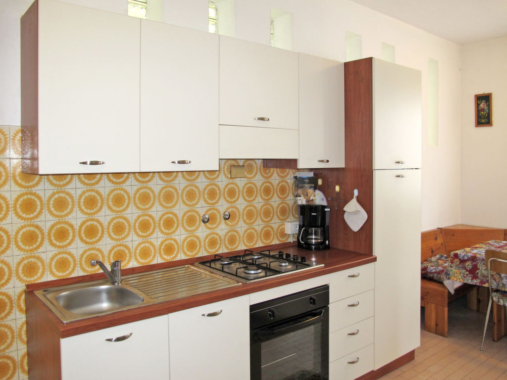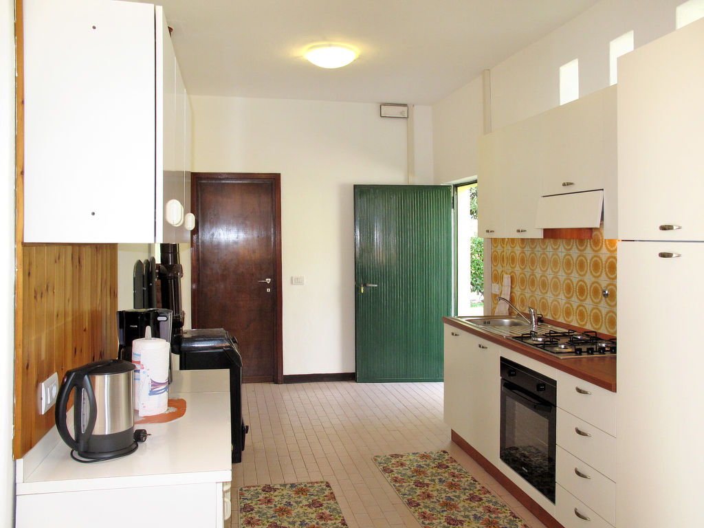 3-Zimmer-Haus 'Limone', ca. 55 m². Wohnraum mit Sitzgruppe und Terrassenausgang, zum Wohnraum offene Küche (4 Flammen, Backofen, Kühlschrank, Kaffeemaschine, Wasserkocher, Toaster) mit Essplatz (Eckbank) und Holzofen. Doppelzimmer. Zweibettzimmer (Betten zusammenstellbar). Dusche/WC. CIR: 013216-CAM-00004